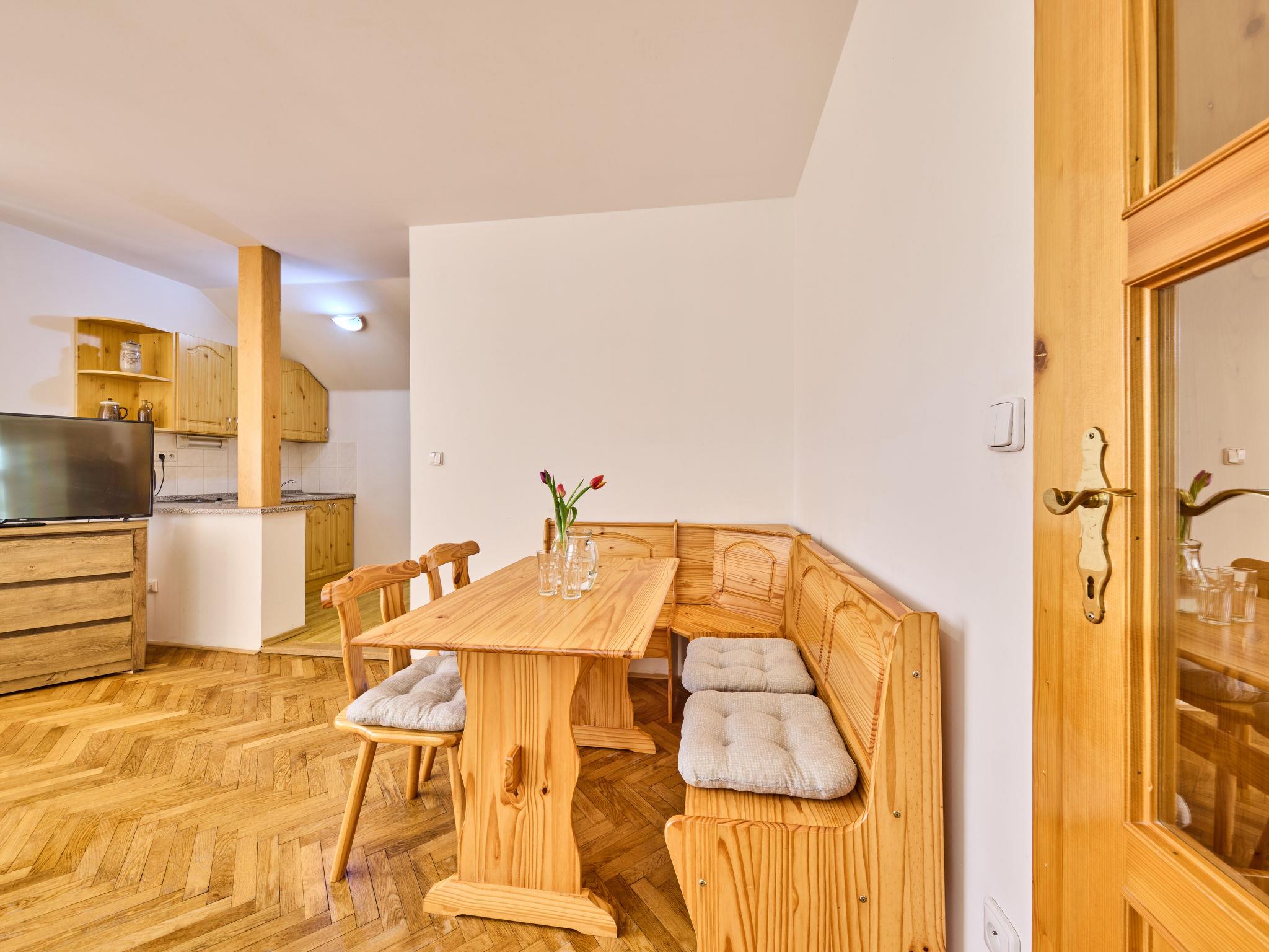 Cosy, rustic residence "Villa Belvedere", detached. 10 apartments in the residence. In the resort, 200 m from the centre, in a sunny position, 500 m from the skiing area. In the house: central heating system. Linen change (suppl. charge extra). Towel change (suppl. charge extra). Room cleaning on request (extra). Parking at the house, public parking extra. Grocery 300 m, restaurant 50 m, bus stop "Janské Lázne - Lesní dum" 300 m, railway station "Svoboda nad Úpou" 3.3 km, park "Farmapark Muchomurka" 1 km, outdoor swimming pool 7 km, indoor swimming pool 400 m. Tennis 1 km, minigolf 400 m, cycle lane 100 m, cable car 600 m, ski lift 300 m, chair lift 500 m, gondola lift 600 m, slopes 300 m, ski rental 300 m, ski school 400 m, children's ski school 300 m, sled run 700 m, cross country ski track. Nearby attractions: Lanovka na Cernou horu 600 m, Janské Lázne Spa, Stezka korunami stromu 1 km, bobová dráha 5 km, Pec pod Snežkou, Relaxpark, bobová dráha 11 km, Vrchlabí 10 km, Trutnov 12 km, Malá Úpa 15 km, Zoo Dvur Králové, Adršpach 35, Karpacz 40 km. Well-known ski regions can easily be reached: SkiResort CERNÁ HORA - PEC, Mladé Buky 5 km, Horní Malá Úpa 16 km, Špindleruv Mlýn 30 km. Hiking paths: krkonošské naucné stezky. Please note: no lift.