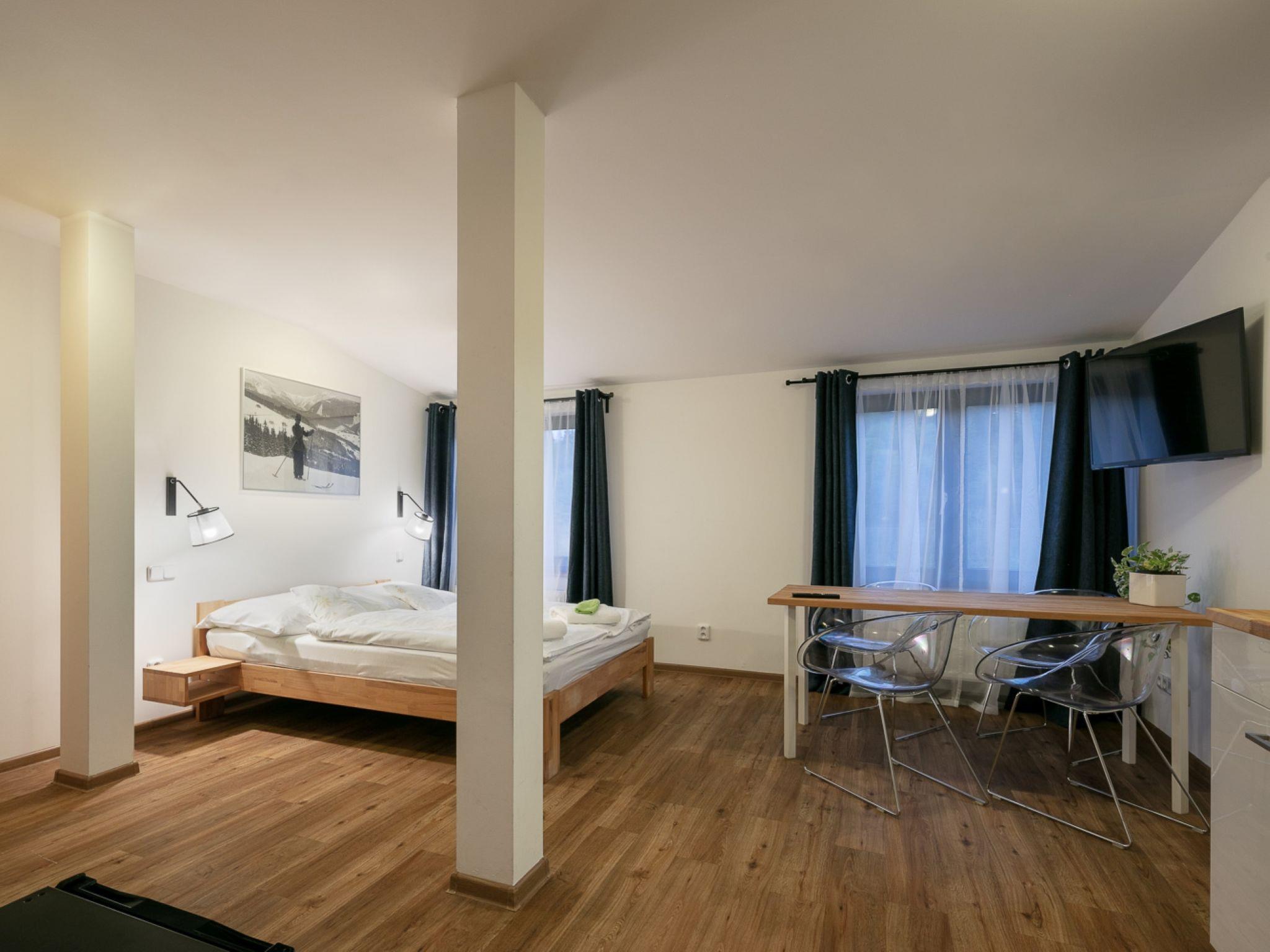 Comfortable aparthotel "U Kabinky", detached. In the resort, 500 m from the centre, in a sunny position, 100 m from the skiing area. In the house: storage room for skis, central heating system. Linen change (suppl. charge extra). Towel change (suppl. charge extra). Room cleaning on request (extra). Breakfast on request (extra). Public parking extra. Grocery 300 m, restaurant 50 m, bus stop "Janské Lázne - Lanovka" 300 m, railway station "Svoboda nad Úpou" 3.8 km, park "Farmapark Muchomurka" 1 km, outdoor swimming pool 7 km, indoor swimming pool 300 m. Golf course (18 hole) 7.5 km, tennis 1 km, minigolf 4.5 km, walking paths from the house, cycle lane, chair lift, gondola lift, slopes, ski rental, ski school, children's ski school, sled run 100 m, cross country ski track 300 m. Nearby attractions: Lanovka na Cernou horu 100 m, Janské Lázne Spa, Stezka korunami stromu 700 m, bobová dráha 5 km, Pec pod Snežkou, Relaxpark, bobová dráha 15 km, Vrchlabí 10 km, Trutnov 12 km, Malá Úpa 20 km, Zoo Dvur Králové, Adršpach 35, Karpacz 40 km. Well-known ski regions can easily be reached: SkiResort CERNÁ HORA - PEC, Mladé Buky 5 km, Horní Malá Úpa 16 km, Špindleruv Mlýn 30 km. Hiking paths: krkonošské naucné stezky.