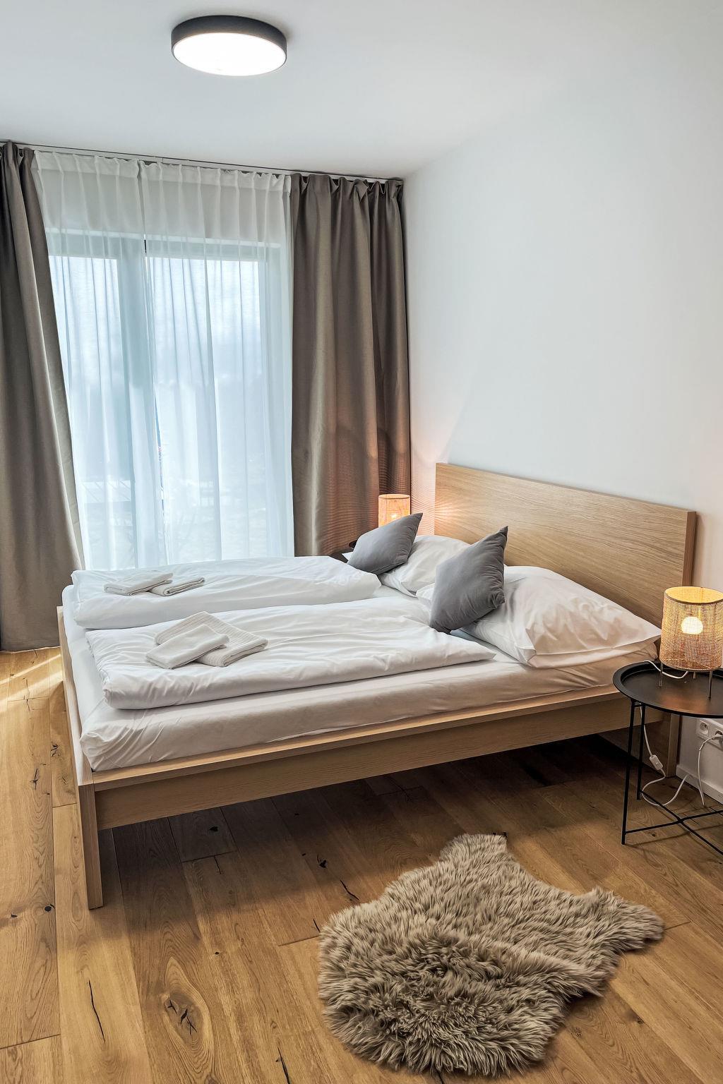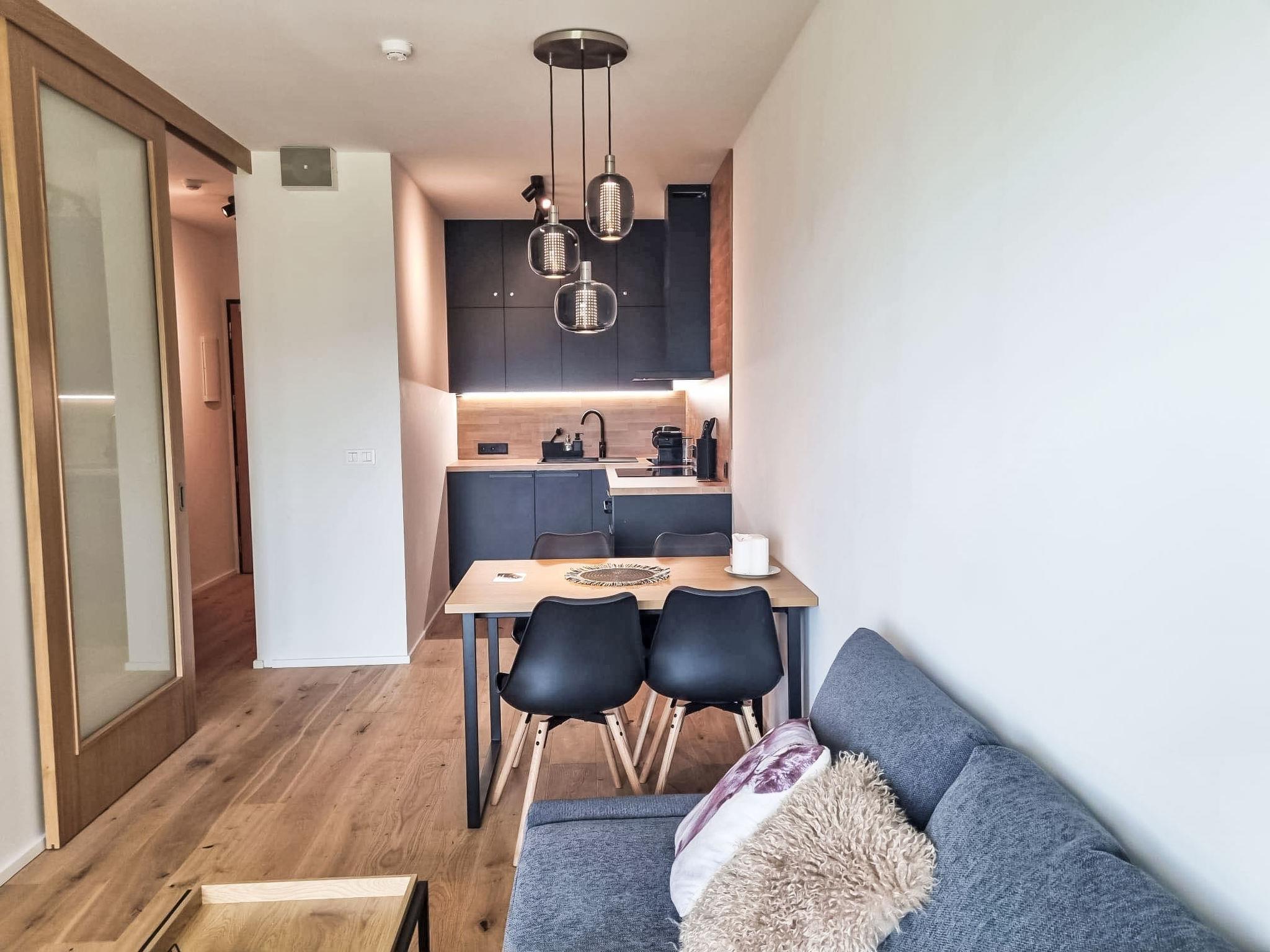 "Ski&Bike Siréna", 2-room apartment. Spacious: living room with 1 double sofabed and TV. 1 room with 1 double bed. Kitchenette (oven, dishwasher, 4 ceramic glass hob hotplates, toaster, kettle, microwave, freezer, electric coffee machine) with dining table. Shower/WC. Terrace. Terrace furniture. Beautiful view of the countryside. Facilities: Internet (WiFi, free). Parking space n 4. Please note: suitable for families. Non-smokers only.