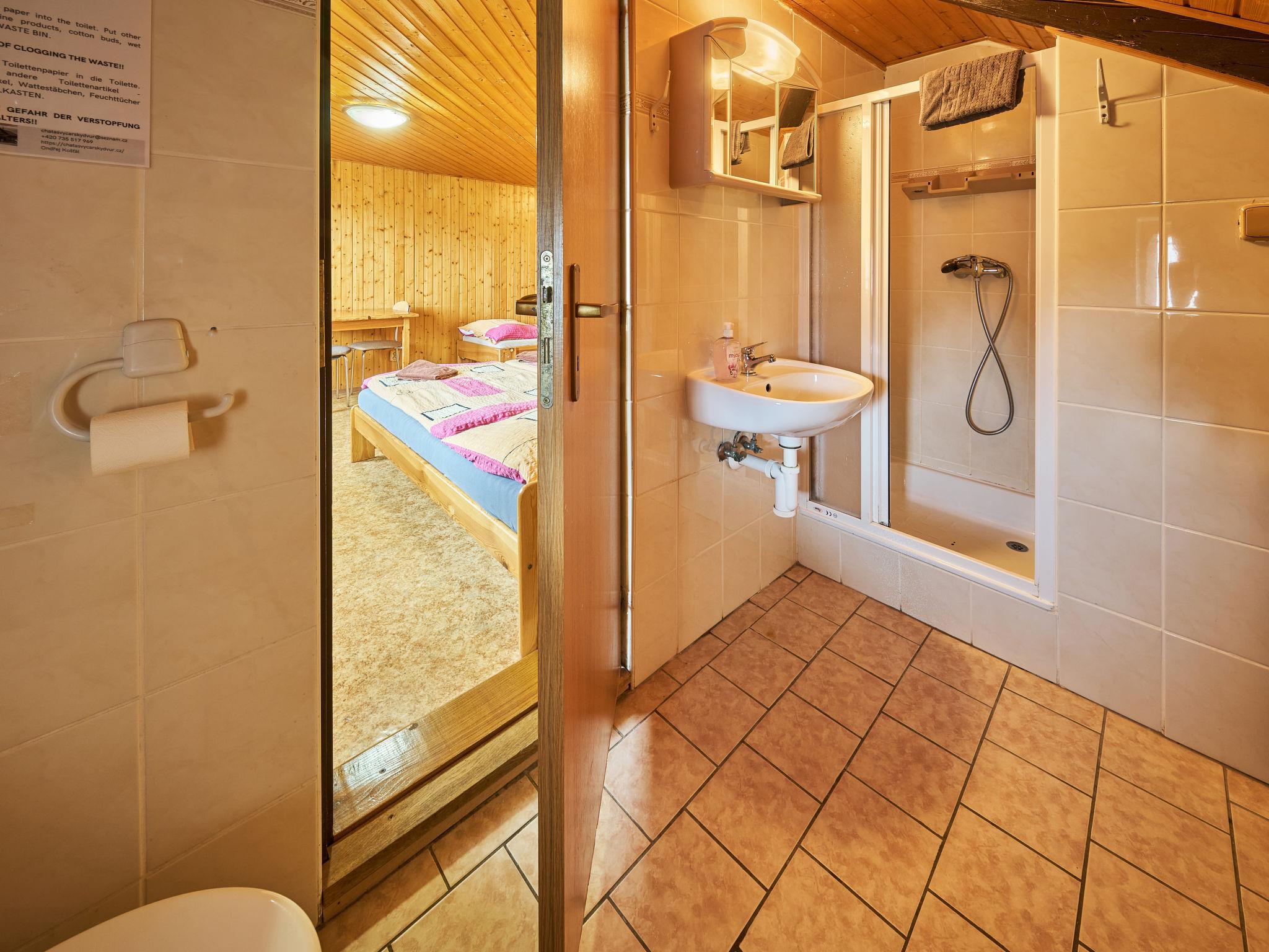 9-room cottage 384 m2 on 2 levels. 2 rooms, each room with 2 beds and 2 x 1 bunk beds, shower/WC. 1 room with 2 x 2 bunk beds, 1 double bed and shower/WC. Playroom with dining table, satellite TV and heating stove with Scandinavian wood stove. Kitchen (oven, dishwasher, 4 ceramic glass hob hotplates, kettle, microwave). Upper floor: 2 rooms, each room with 2 double beds and shower/WC. 1 room with 1 x 1 bunk beds, 1 double bed and shower/WC. 1 room with 1 x 1 bunk beds, 1 double bed and shower/WC. 2 rooms, each room with 2 beds and 2 x 1 bunk beds, kitchen corner and shower/WC. Beautiful view of the mountains. Facilities: Internet (WiFi, free). Please note: non-smokers only. Maximum 1 pet/ dog allowed. Smoke alarm, fire extinguisher.