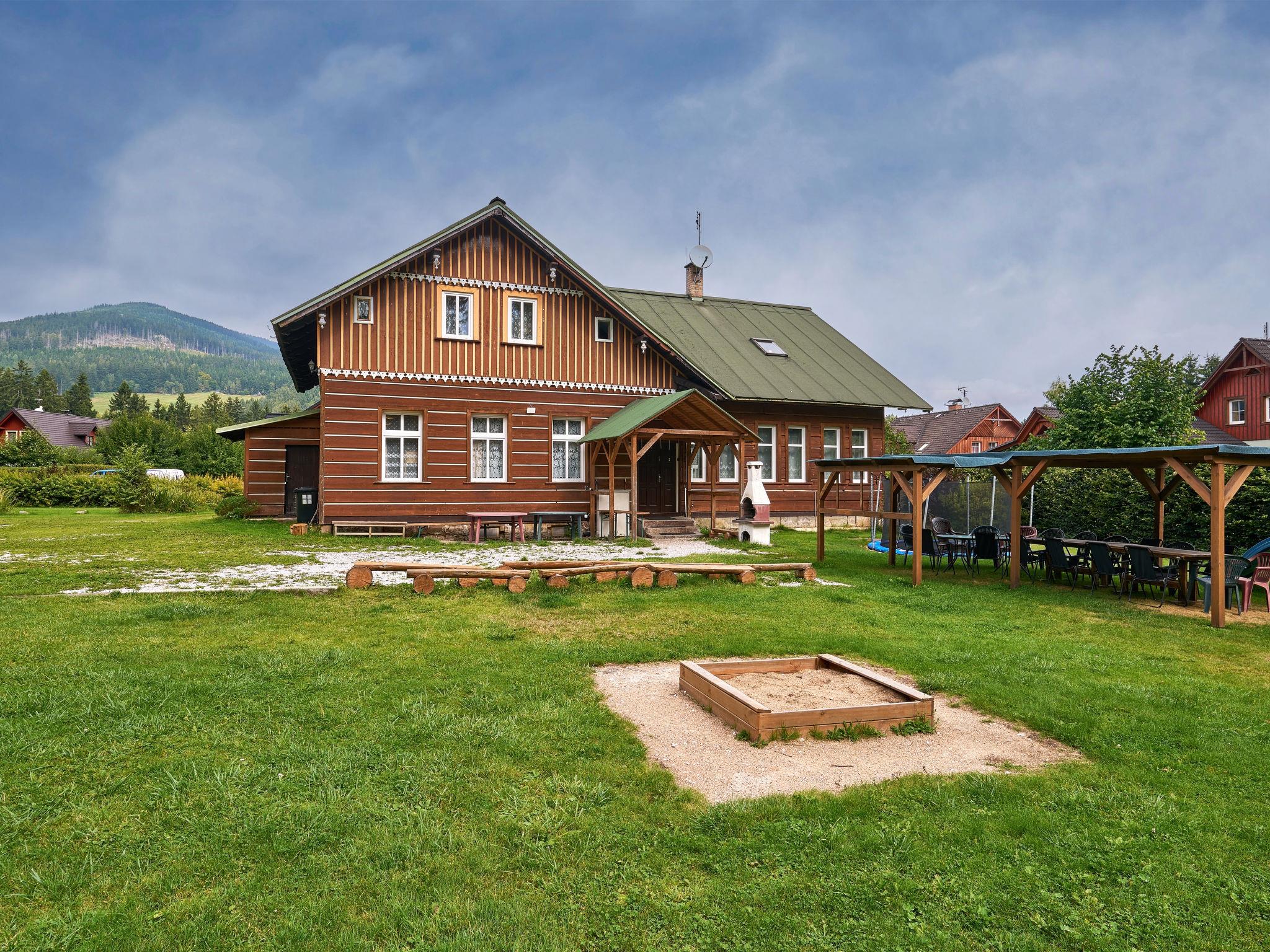 Comfortable cottage "Švýcarský dvur Lodge", 2 storeys, detached from the 19th century. In the resort 800 m from the centre of Janské Lázne, in a quiet position, 200 m from the skiing area. Private: large garden 3'000 m2 with lawn. Patio, garden furniture, barbecue, children's playground (slide, swing). In the complex: trampoline, central heating system. Parking at the house. Grocery 1.2 km, supermarket 2 km, restaurant 1 km, café 1 km, bus stop "Janské Lázne, Lesní dum" 700 m, railway station "Svoboda nad Úpou" 2.8 km, outdoor swimming pool 1 km, indoor swimming pool 1 km, thermal baths "Janské Lázne" 1 km. Golf course (18 hole) 8 km, tennis 800 m, minigolf 2.5 km, riding stable 2 km, walking paths from the house 20 m, cycle lane 700 m, ski lift 900 m, gondola lift 1.7 km, slopes 200 m, ski rental 600 m, ski bus stop 50 m, ski school, sled run 800 m, cross country ski track 2.5 km, children's playground 200 m. Nearby attractions: Aquacentrum, Janské Lázne Spa 1 km, Stezka korunami stromu Janské Lázne 3 km, RelaxPark Pec, lanovka Snežka 15 km, zámek Vrchlabí, Aquacentrum Vrchlabí 18 km, Špindleruv Mlýn, Zoo Safari Dvur Králové 33 km, Adršpašské skály 42 km. Well-known ski regions can easily be reached: Janské Lázne - Koštálka 1.5 km, Cerná hora - Pec 1900 m, Mladé Buky 7 km, Horní Malá Úpa 20 km, Špindleruv Mlýn 34 km. Well-known lakes can easily be reached: Dolce Trutnov 18 km. Hiking paths: krkonošské naucné stezky.