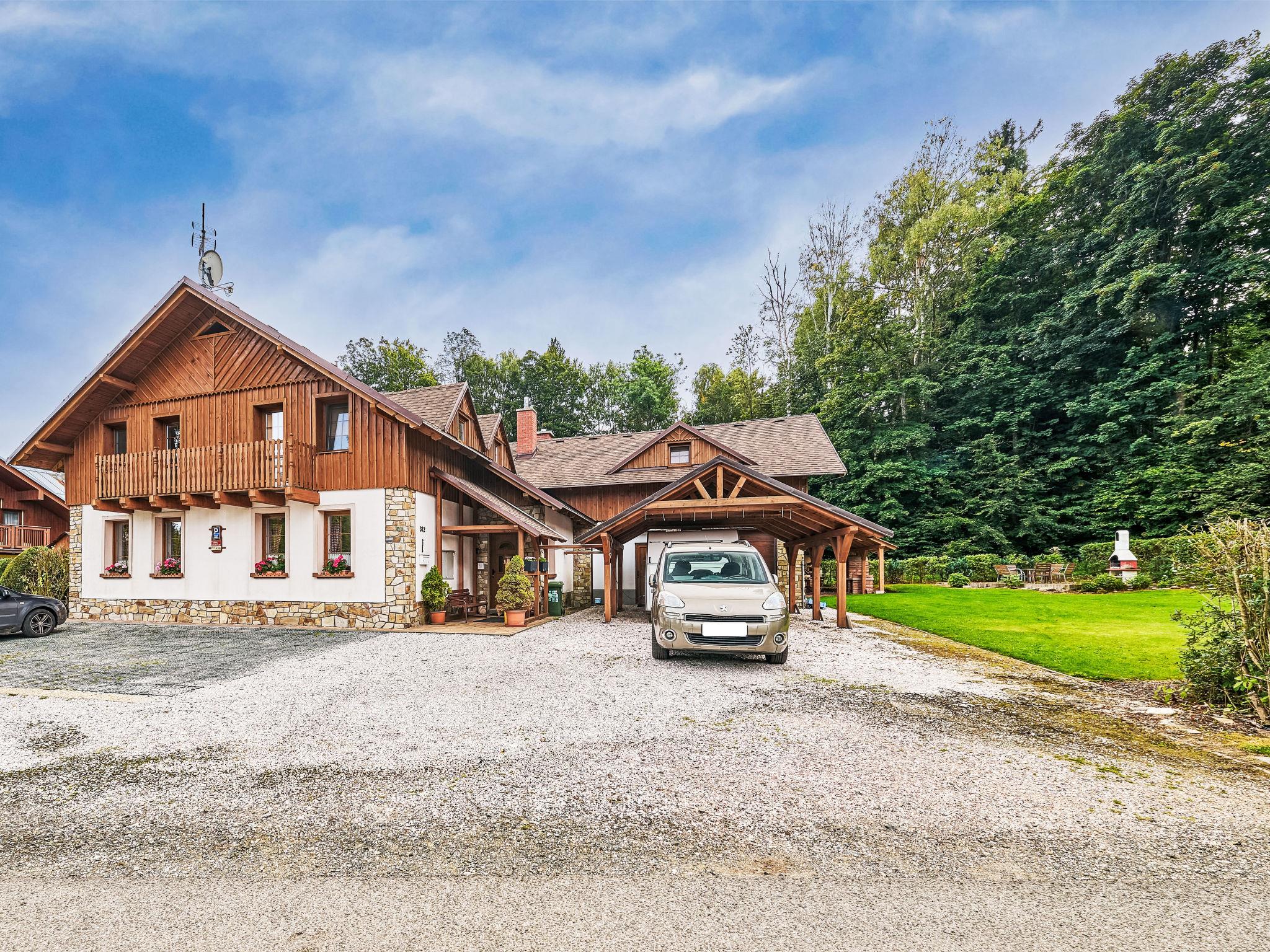 Cosy, comfortable cottage "U Švýcarského dvora", detached, built in 2006. 4 apartments in the property. In the resort 800 m from the centre of Janské Lázne, in a quiet position, 200 m from the skiing area. For shared use: well-kept garden with lawn. Patio, pergola, garden furniture, barbecue, children's playground (swing). In the house: WiFi, central heating system. Parking (for 4 cars) at the house. Grocery 1.2 km, supermarket 2 km, restaurant 1 km, café 1 km, bus stop "Janské Lázne, Lesní dum" 700 m, railway station "Svoboda nad Úpou" 2.8 km, outdoor swimming pool 1 km, indoor swimming pool 1 km, thermal baths "Janské Lázne" 1 km. Golf course (18 hole) 8 km, tennis 800 m, minigolf 2.5 km, riding stable 2 km, walking paths from the house 20 m, cycle lane 700 m, ski lift 900 m, gondola lift 1.7 km, slopes 200 m, ski rental 600 m, ski bus stop 50 m, ski school, sled run 800 m, cross country ski track 2.5 km, children's playground 200 m. Nearby attractions: Aquacentrum, Janské Lázne Spa 1 km, Stezka korunami stromu Janské Lázne 3 km, RelaxPark Pec, lanovka Snežka 15 km, zámek Vrchlabí, Aquacentrum Vrchlabí 18 km, Špindleruv Mlýn, Zoo Safari Dvur Králové 33 km, Adršpašské skály 42 km. Well-known ski regions can easily be reached: Janské Lázne - Koštálka 1.5 km, Cerná hora - Pec 1900 m, Mladé Buky 7 km, Horní Malá Úpa 20 km, Špindleruv Mlýn 34 km. Well-known lakes can easily be reached: Dolce Trutnov 18 km. Hiking paths: krkonošské naucné stezky. Please note: suitable for families. Owner lives in separate semi-detached house.