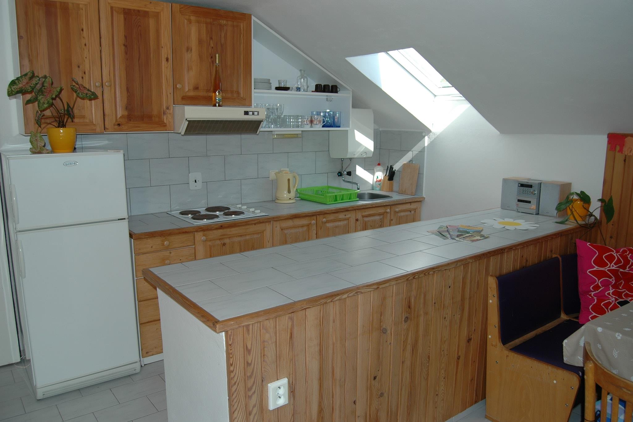 Rummeligt feriehus Peja ligger på kanten af den rolige by Jestrabí, 800 m højde. Bjerge i Krkonose National Park starter straks bag huset. Du har to badeværelser og to køkkener til din rådighed. Hvert køkken har sin egen spiseplads. Huset har en kælder, hvor du kan gemme dit skiudstyr eller cykler. Feriehus Peja er meget velegnet til et ophold med to familier med børn. Huset er en perfekt base for skiløbere; der er en lille T-barhejs inden for 400 meter fra huset og kun 1 km væk, i Vitkovice, er en stolelift. Du kan leje ski og bestille ski lektioner på stationen. Pisterne er velegnet til både begyndere og mere avancerede skiløbere. Hvis du er på udkig efter lidt mere udfordring, kan du gå til det nærliggende skisportssted Rokytnice nad Jizerou, som er vært for den tjekkiske lands længste skiløjper. Om sommeren kan du starte nogle hyggelige gåture fra huset, for eksempel til Dvoracky, Jilemnice eller til bjergkanten af Krkonose. Der er en dejlig swimmingpool omkring 10 km væk.