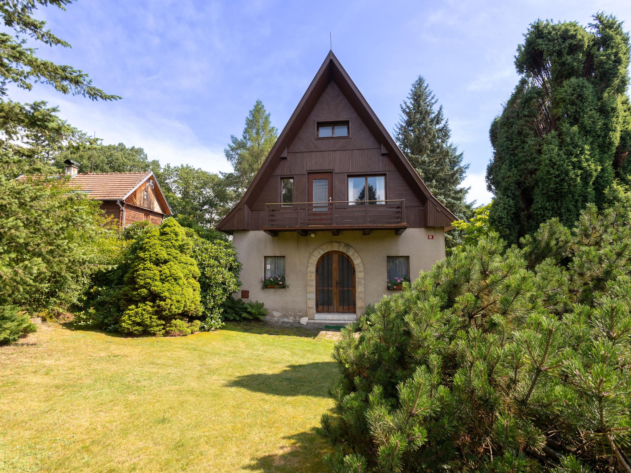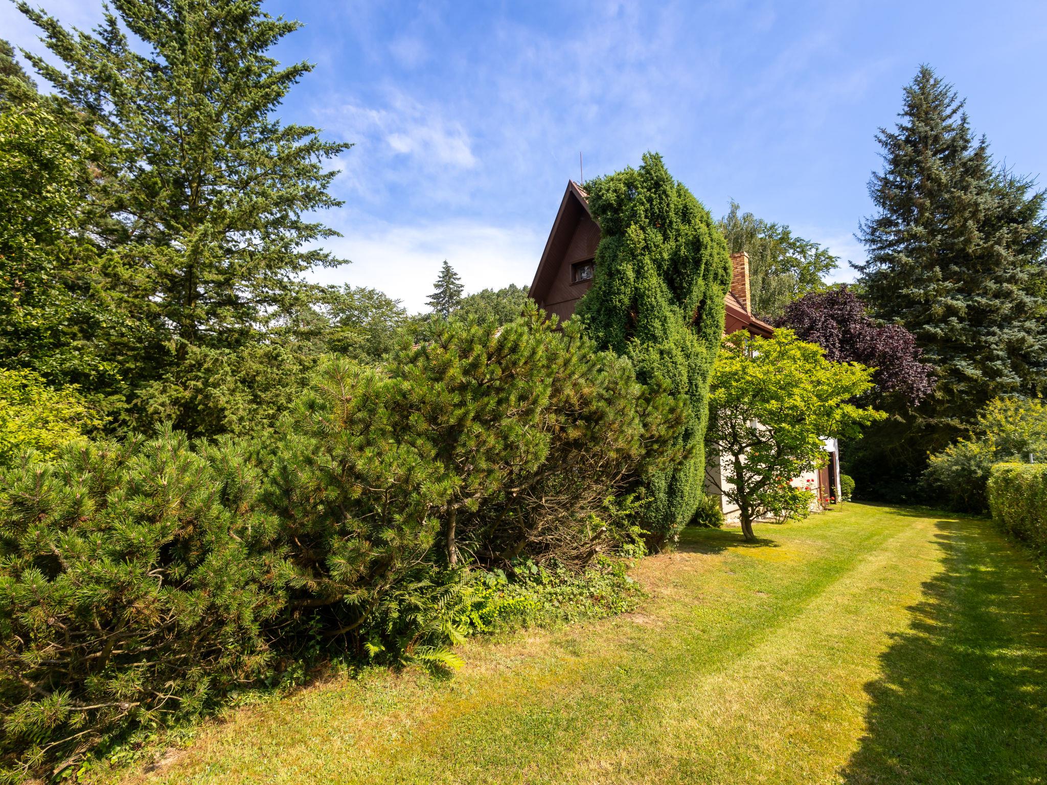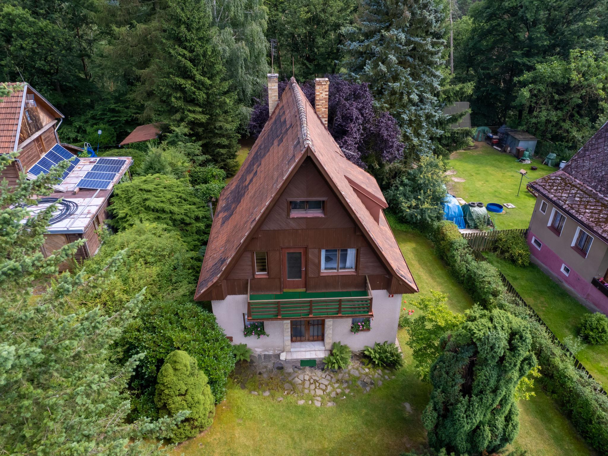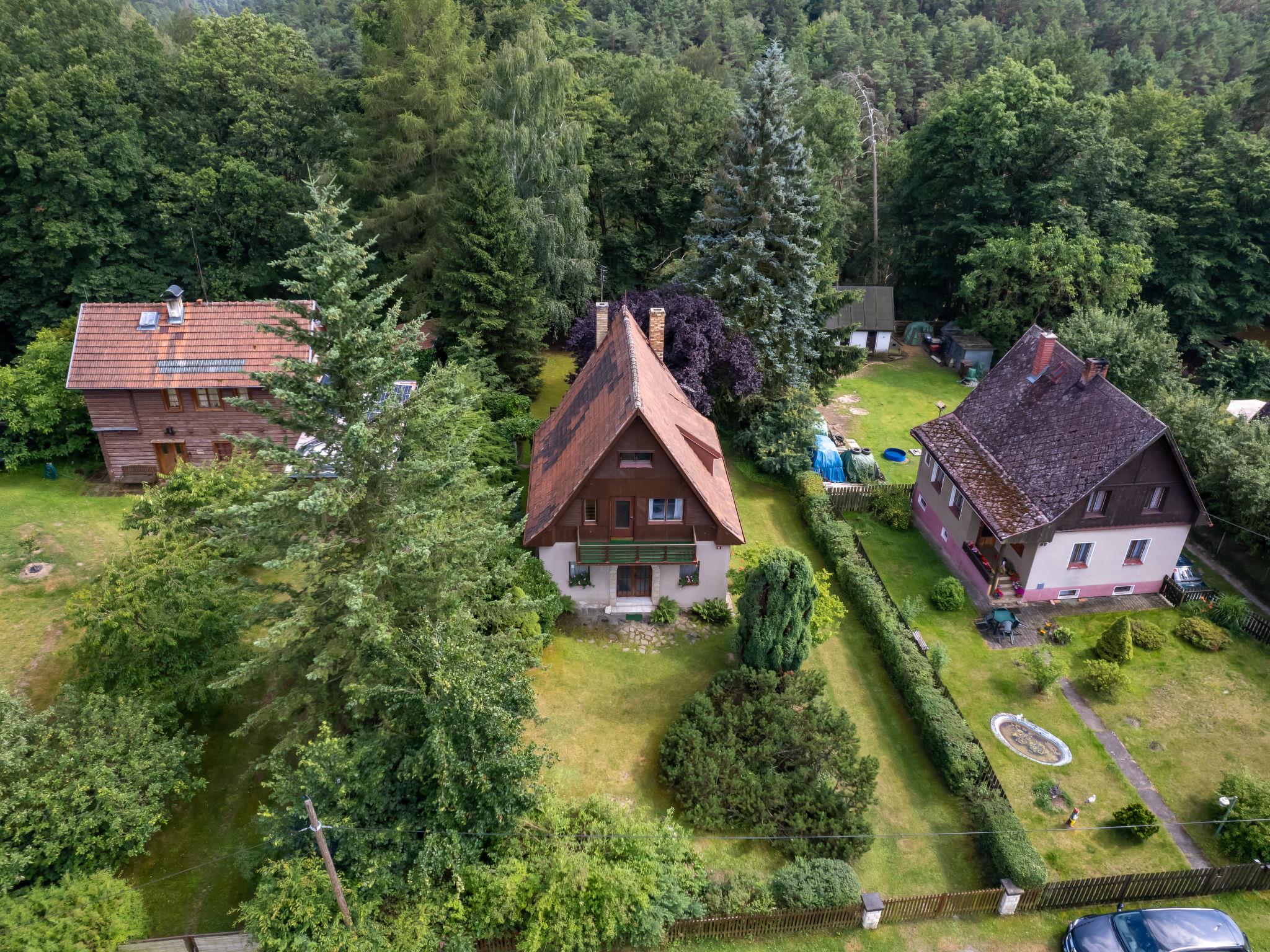 Jestrebice/Dobren 5 km from Kokorín: Comfortable cottage detached. In the resort, in a quiet, sunny position, in the countryside. Private: property 900 m2 with lawn and trees. Patio, garden furniture, barbecue, fireplace, parking (for 2 cars) on the premises. Shop 500 m, supermarket 14 km, restaurant 800 m, bus stop "Dobren, Jestrebice, u Nováku" 200 m, railway station "Kanina" 16 km, outdoor swimming pool 8 km, indoor swimming pool 14 km. Golf course (9 hole) 10 km, tennis 7 km, riding stable 13 km, walking paths from the house 5 m, cycle lane 1 km, children's playground 1 km. Nearby attractions: Jestrebické poklicky 2 km, hrad Kokorín 7 km, hrad Houska, skalní mesta Bludište, Prolezovacky 10 km, Melník, Mšeno 14 km, hrad Bezdez 23 km. Well-known lakes can easily be reached: Máchovo jezero (Doksy) 25 km. Hiking paths: Kokorínský Dul, Máchova cesta 5 km.