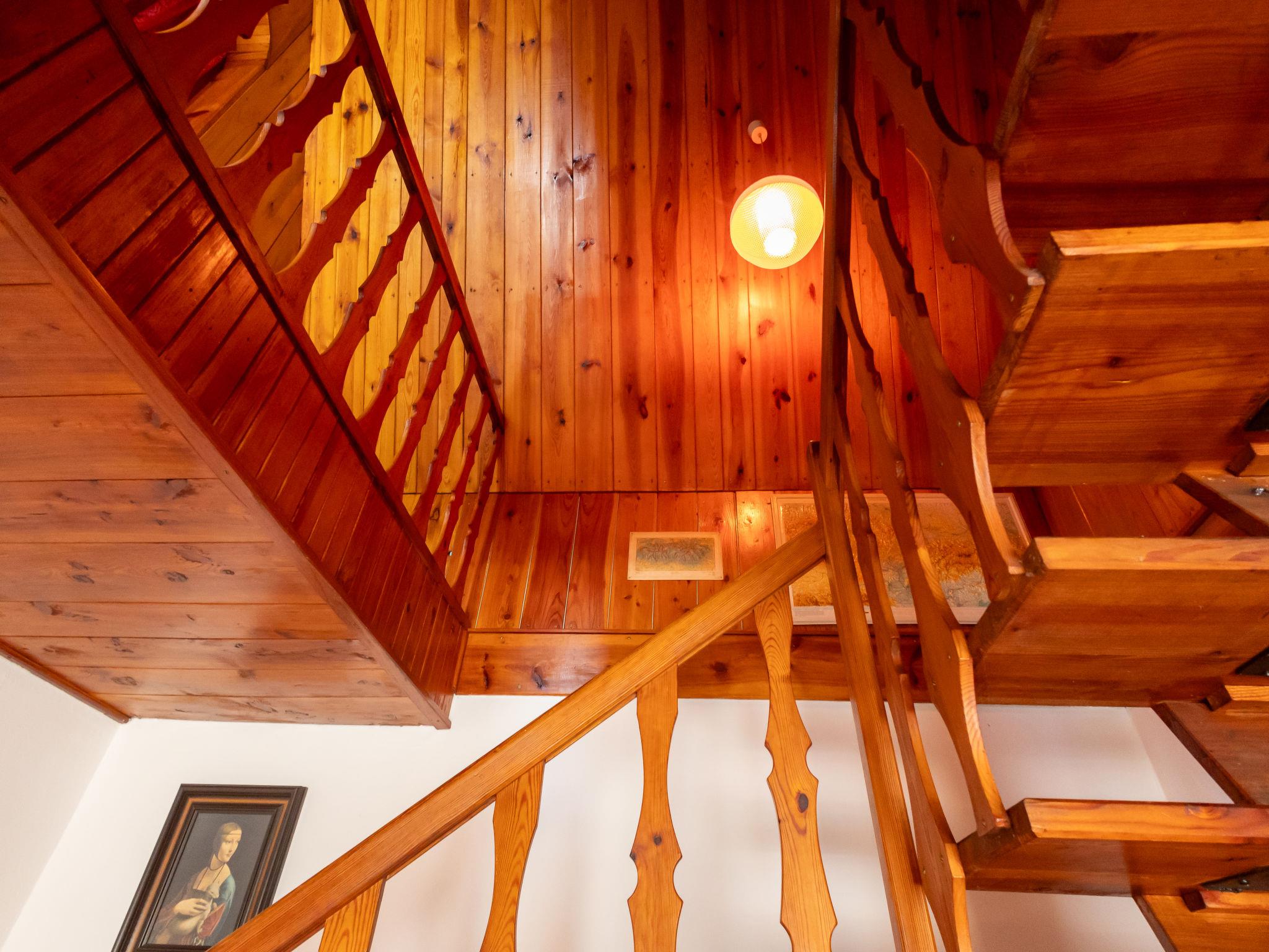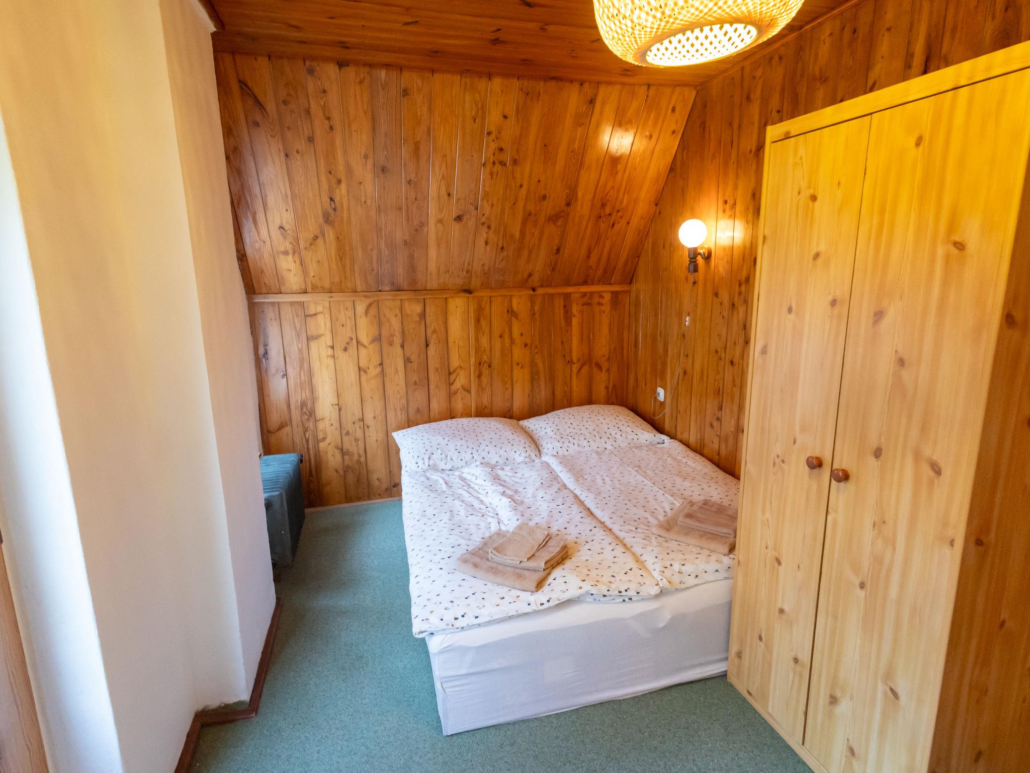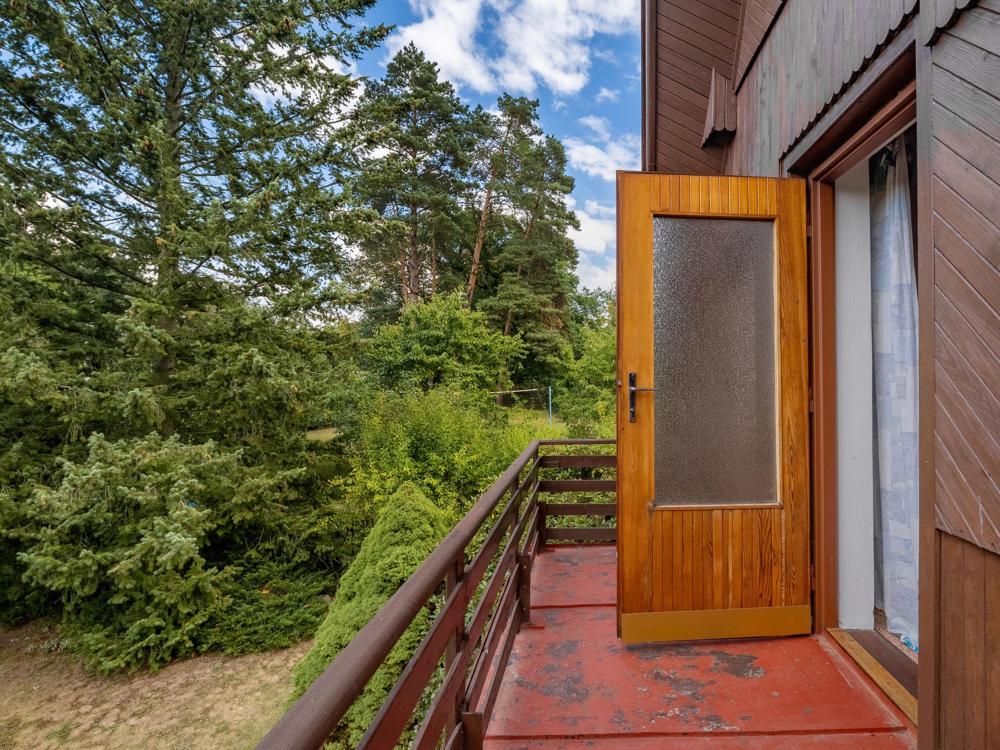 "Jestrebice 8", 4-room cottage 90 m2 on 2 levels. Cosy furnishings: living room with open-hearth fireplace, dining nook, satellite TV and radio. Small, open kitchen (oven, 4 gas rings, kettle, microwave, electric coffee machine). Bath/WC, sep. WC. Electric heating, wood heating. Upper floor: 3 double bedrooms. Balcony, terrace. Beautiful view of the forest. Facilities: children's high chair, baby cot. Please note: suitable for families. Maximum 2 pets/ dogs allowed. Smoke alarm, fire extinguisher.