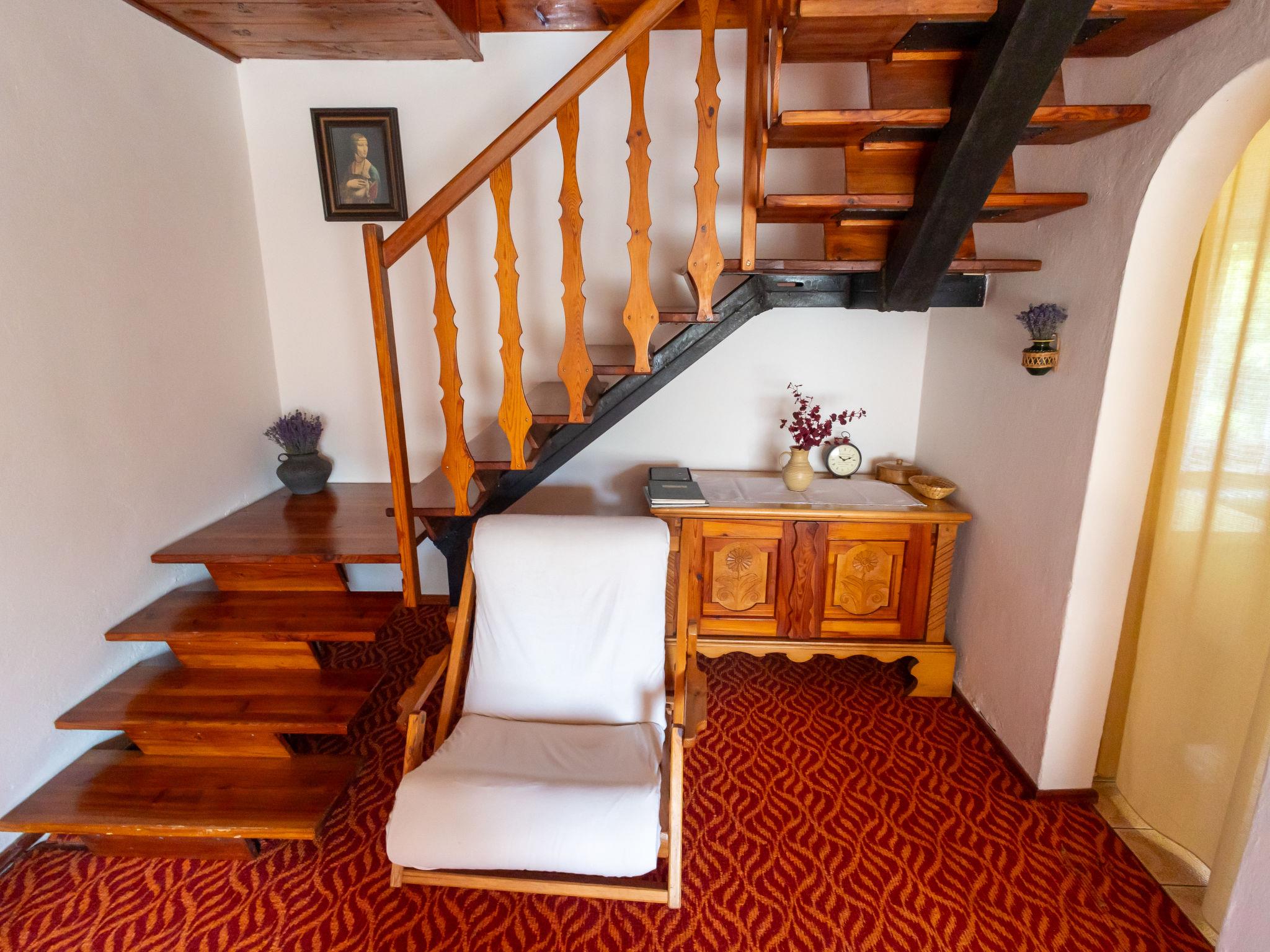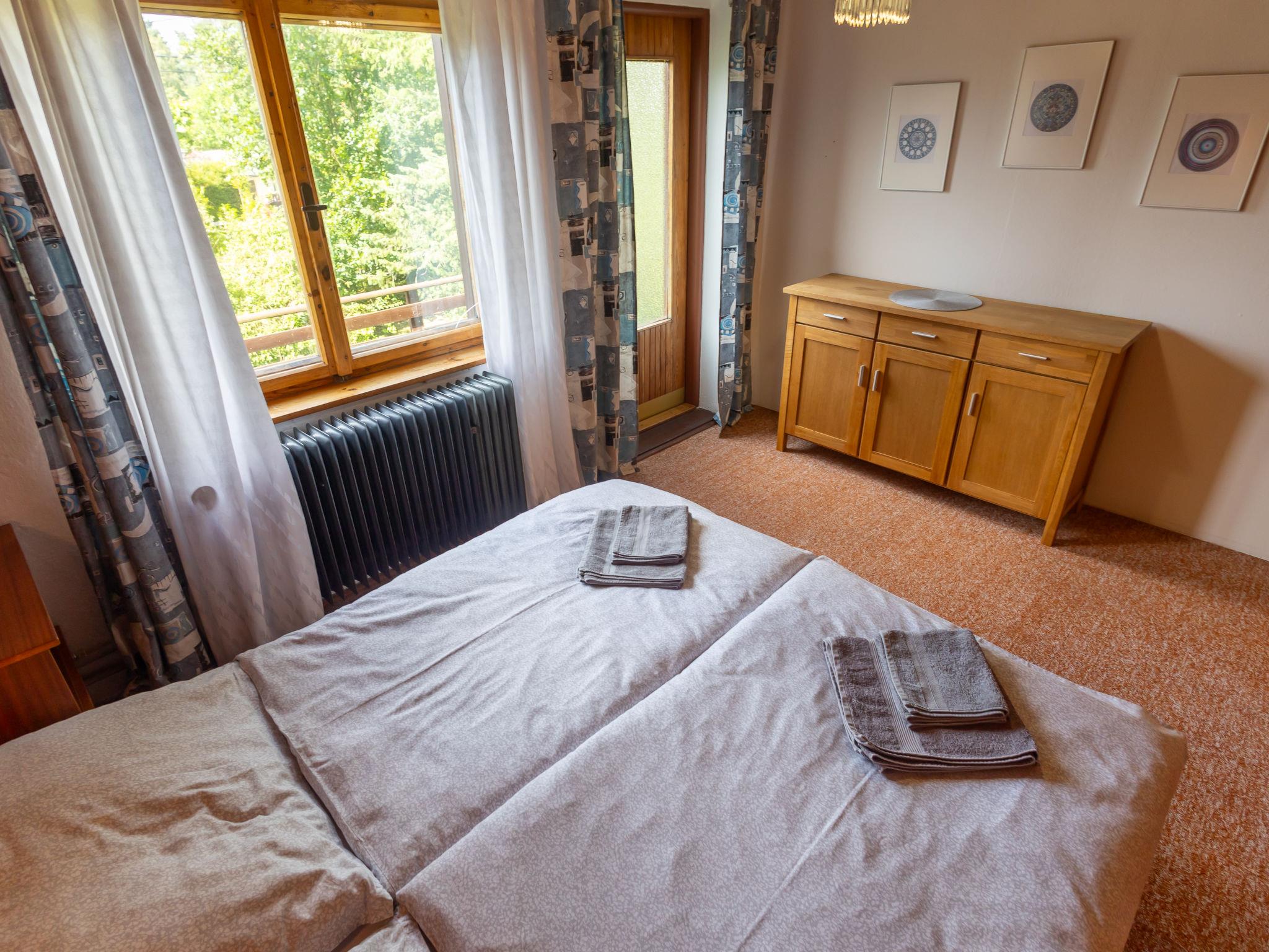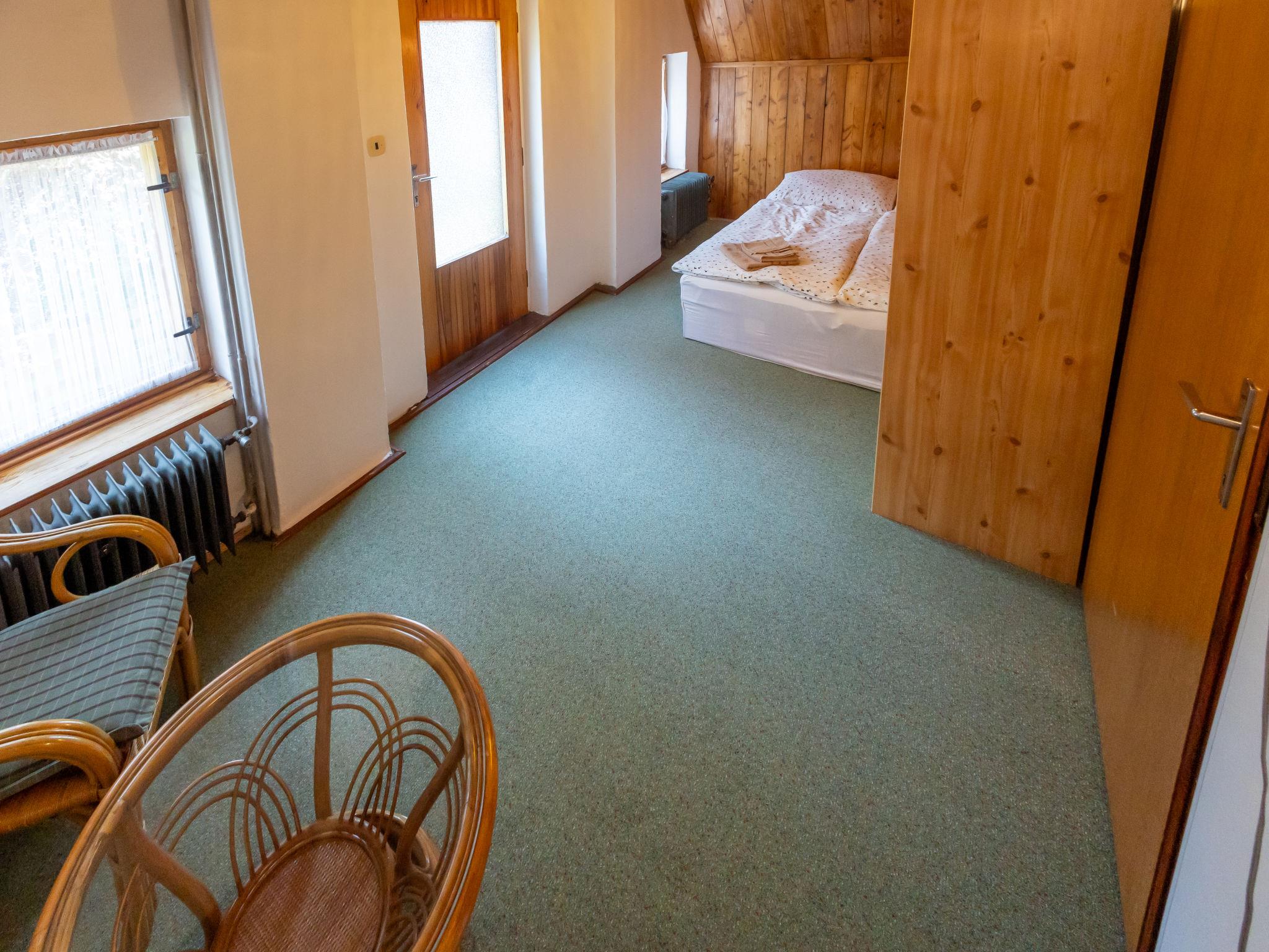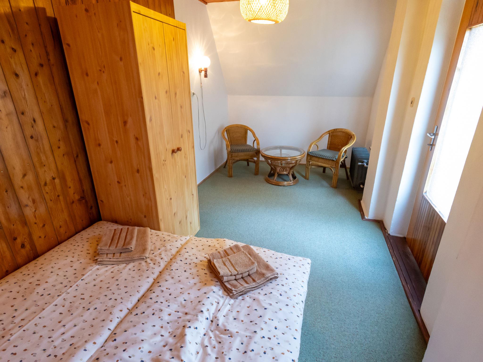 "Jestrebice 8", 4-room cottage 90 m2 on 2 levels. Cosy furnishings: living room with open-hearth fireplace, dining nook, satellite TV and radio. Small, open kitchen (oven, 4 gas rings, kettle, microwave, electric coffee machine). Bath/WC, sep. WC. Electric heating, wood heating. Upper floor: 3 double bedrooms. Balcony, terrace. Beautiful view of the forest. Facilities: children's high chair, baby cot. Please note: suitable for families. Maximum 2 pets/ dogs allowed. Smoke alarm, fire extinguisher.
