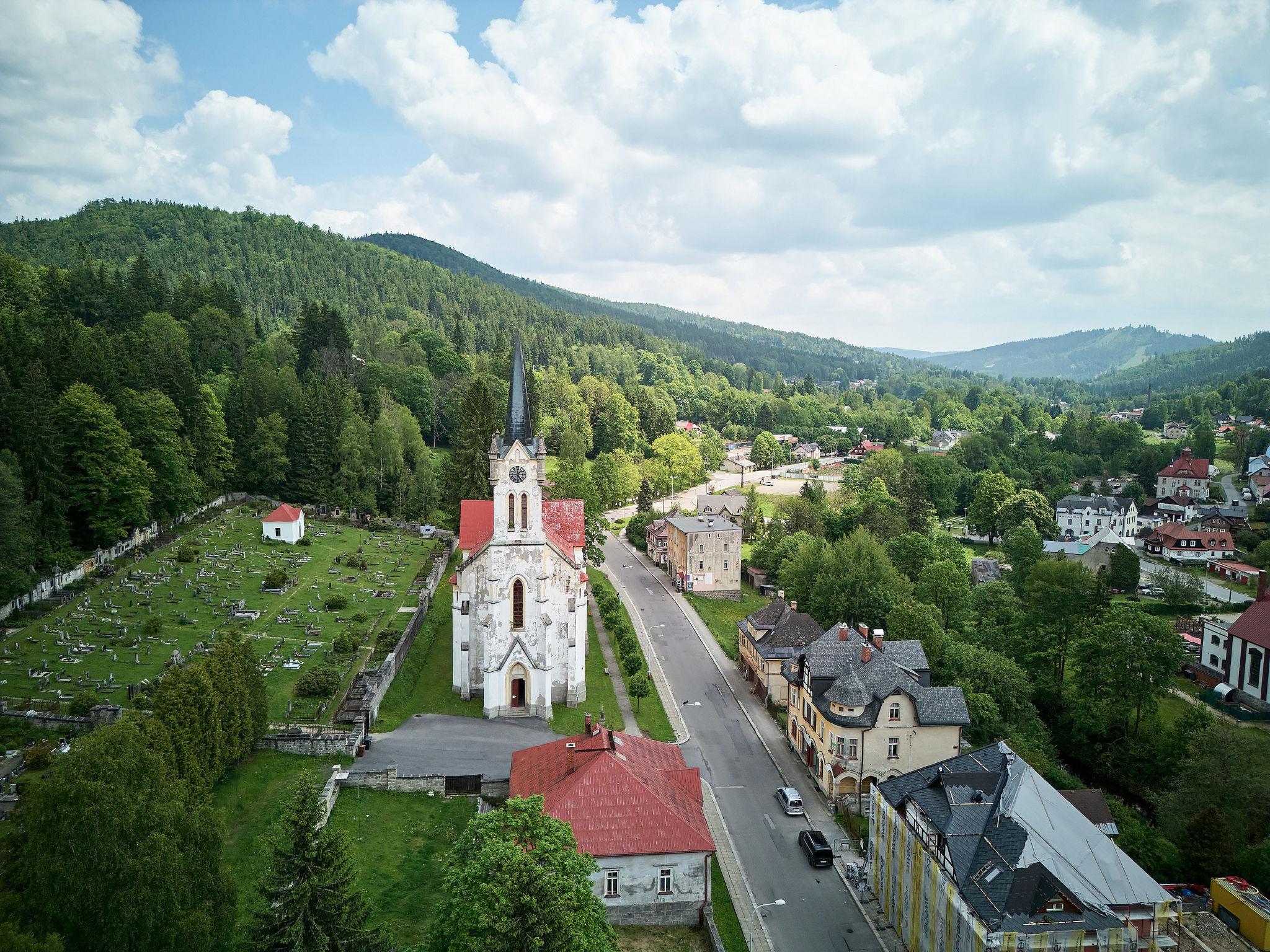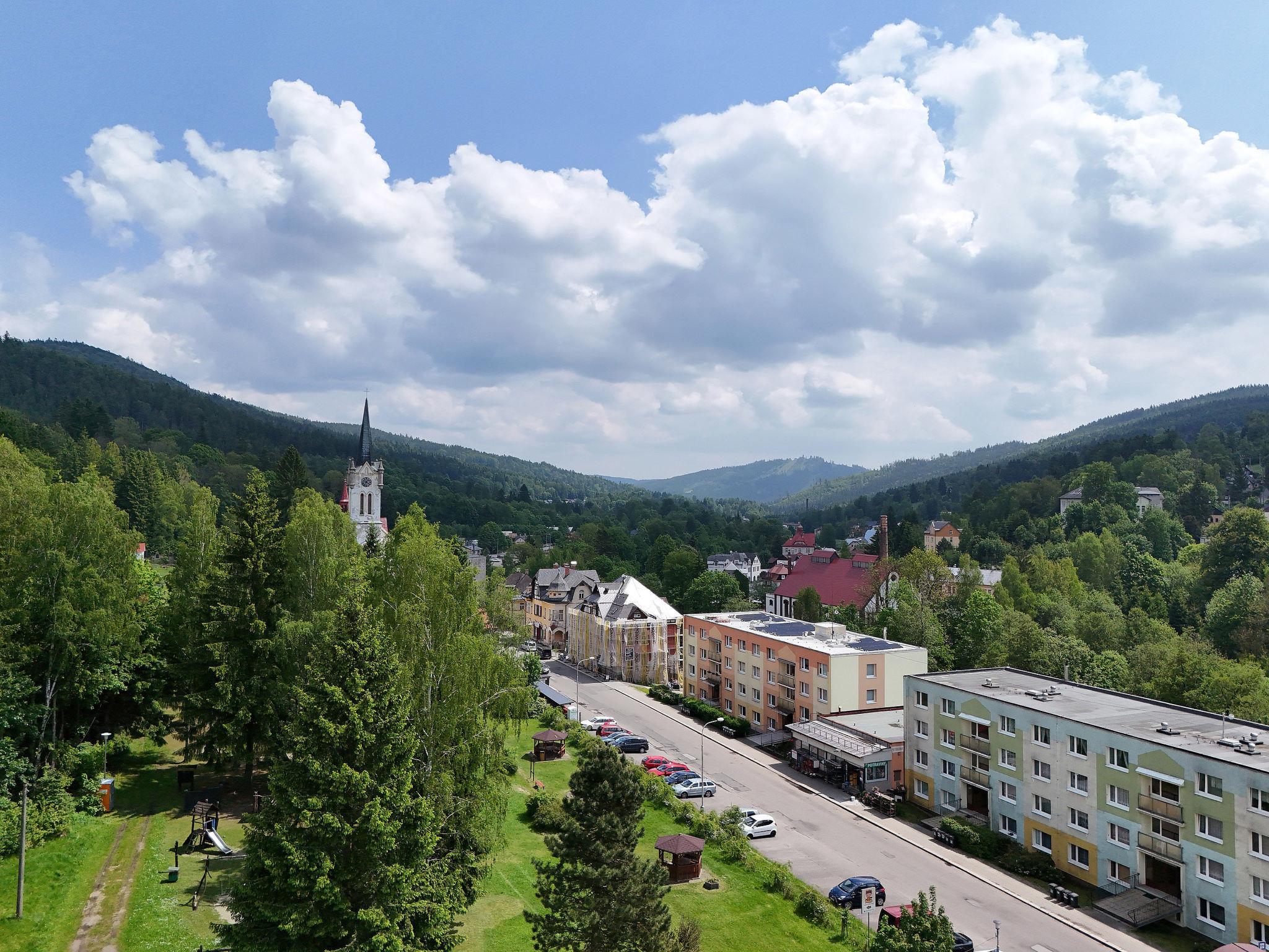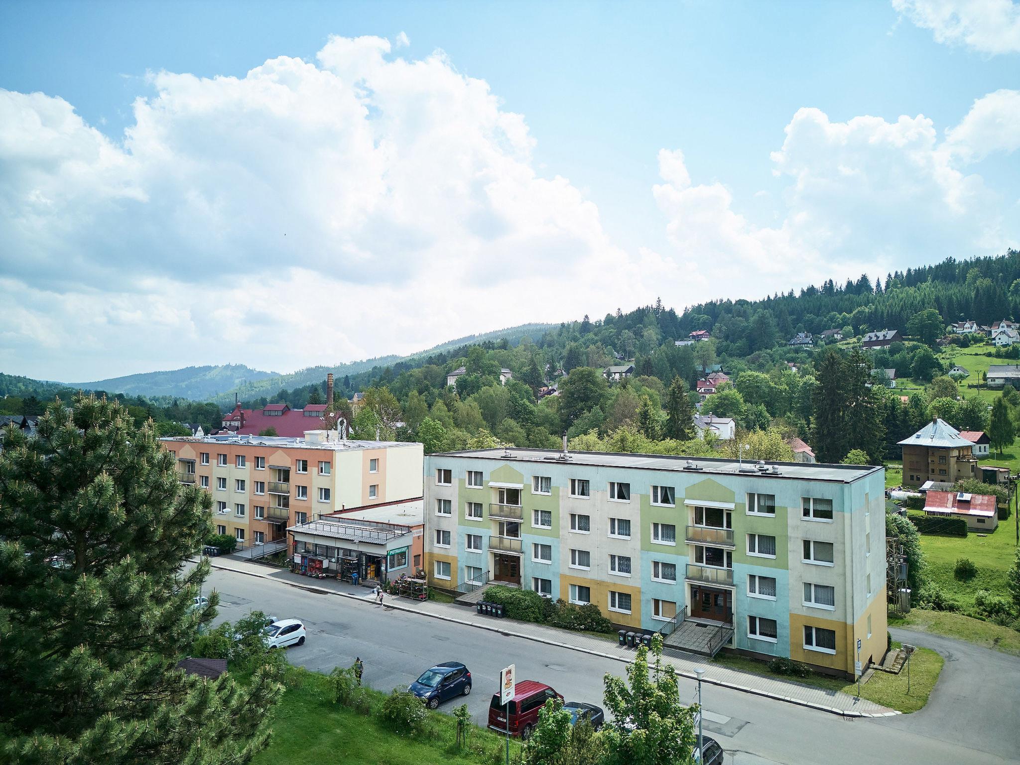 Apartment block. Josefuv Dul, in a sunny position, excellent location: right in the centre but still quiet, 130 m from the stream. In the house: central heating system. Parking at the house. Supermarket 20 m, restaurant 300 m, bakery 20 m, café 50 m, bus stop "Josefuv Dul, centrum" 10 m, railway station "Josefuv Dul" 500 m, 40 m. Minigolf 500 m, ski lift 1.5 km, ski rental 200 m, ski school 1.5 km, children's ski school 1.5 km, cross country ski track 100 m, children's playground 50 m. Nearby attractions: Muzeum 200 m, vyhlídka Certovy hlavy 1.8 km, Jedlový dul 2 km, vodopády na Jedlové 2.7 km, Slovanka 4 km, Bramberk 6 km, Muzeum výroby hracek Jiretín 4 km, Liberec: Zoo, Aquapark, iQLANDIA 20 km, Ješted 30 km. Well-known ski regions can easily be reached: Špicák Tanvald, Albrechtice 5 km, Bedrichov 8 km, Harrachov 20 km. Well-known lakes can easily be reached: prírodní koupalište Josefuv Dul 1.2 km, Bedrichov 10 km. Hiking paths: Protržená prehrada 5 km, Souš 8 km, Na Cihadle 8 km.