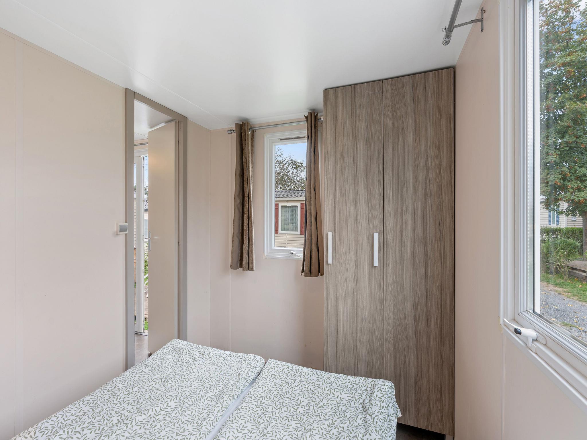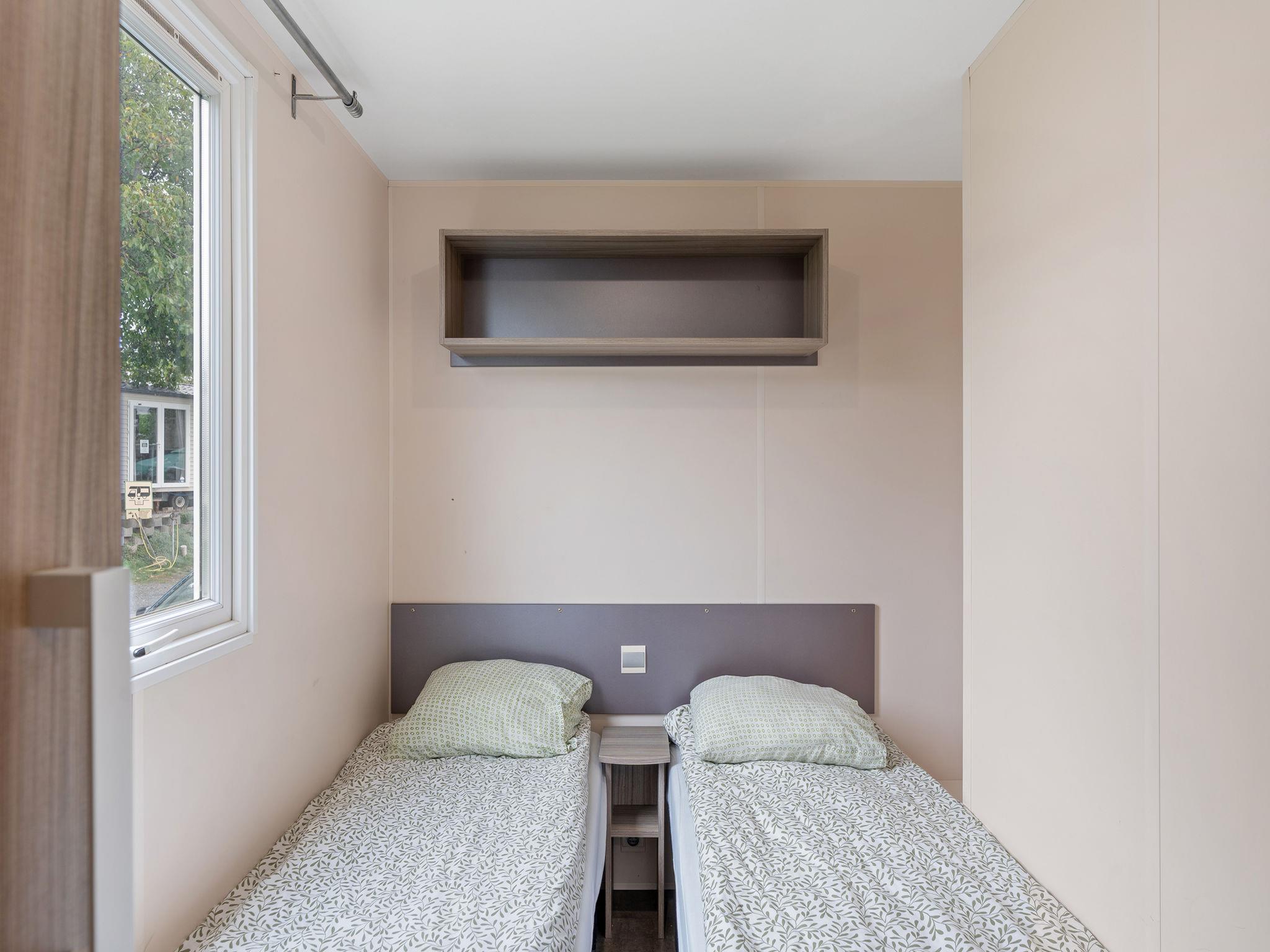 "Prima", 3-room bungalow 24 m2. Living room with 1 sofabed. 1 room with 1 double bed. 1 room with 2 beds. Kitchen (4 gas rings, freezer, electric coffee machine). Shower, sep. WC. Heating, air-conditioning. Terrace. Terrace furniture. Facilities: Internet (WiFi, free). Suitable for families. Maximum 1 pet/ dog allowed.
