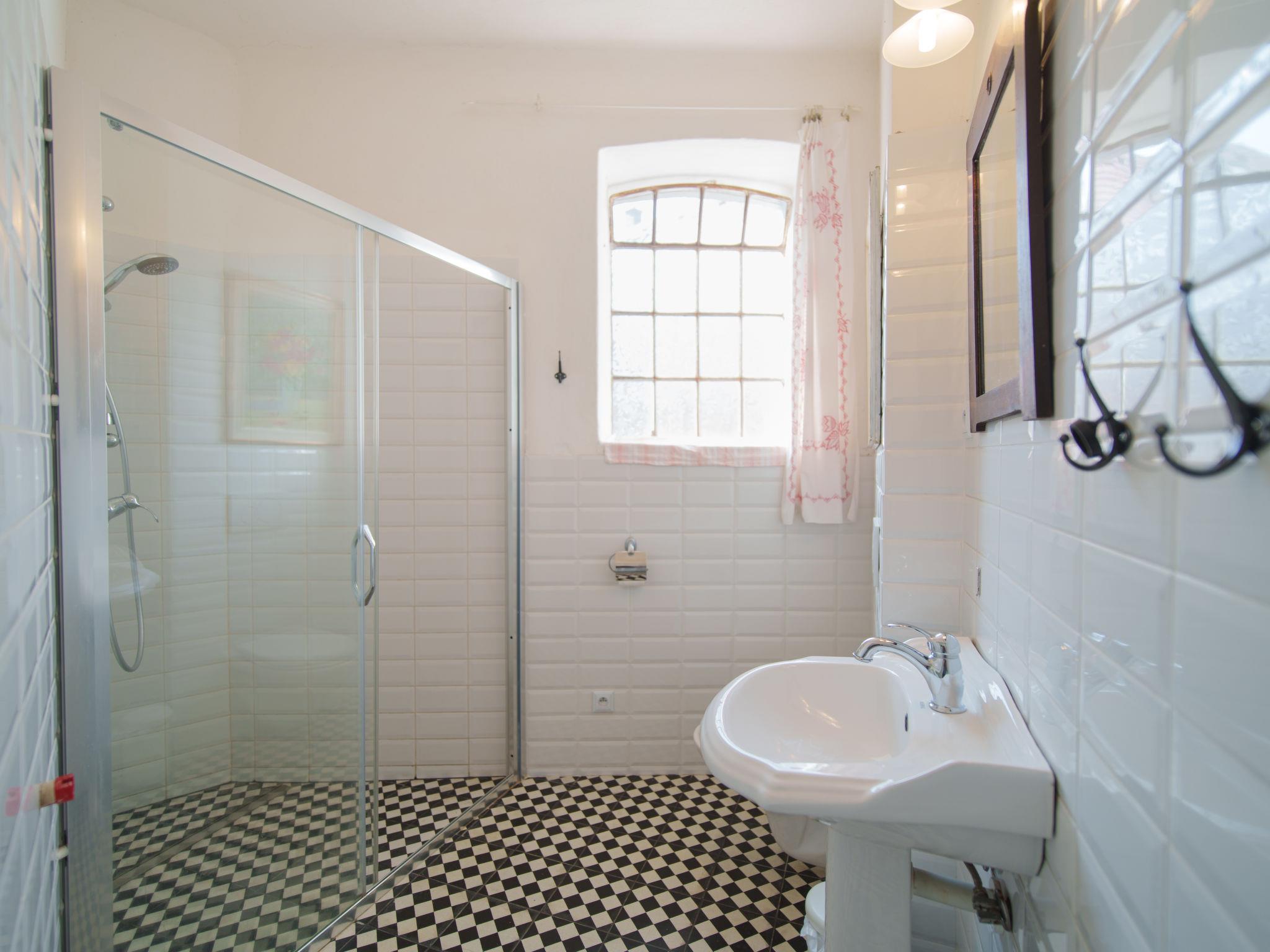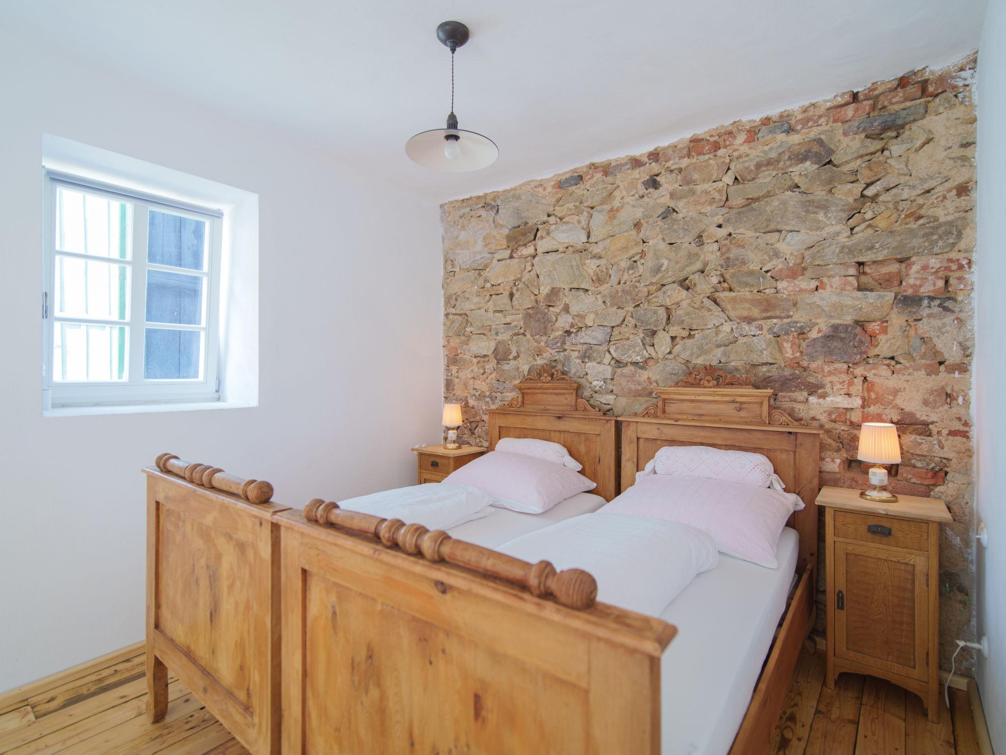 6-room house 160 m2 on 2 levels. Antique furnishings: 1 room 20 m2 with 4 beds. 1 room 16 m2 with 3 beds and shower/WC. 1 room 35 m2 with 4 beds, kitchen corner and shower/WC. 1 room 35 m2 with 4 beds and shower/WC. Open kitchen (oven, dishwasher, 4 ceramic glass hob hotplates, kettle, freezer, electric coffee machine) with dining table. Upper floor: 1 room 30 m2 with 5 beds. Kitchen-/living room (oven, dishwasher, 4 induction hot plates, kettle, microwave, freezer) with 2 beds and 2 folding beds. Shower/WC. Electric heating, wood heating. Terrace furniture. Facilities: washing machine. Internet (WiFi, free). Please note: suitable for families. Non-smoking house. Maximum 2 pets/ dogs allowed.