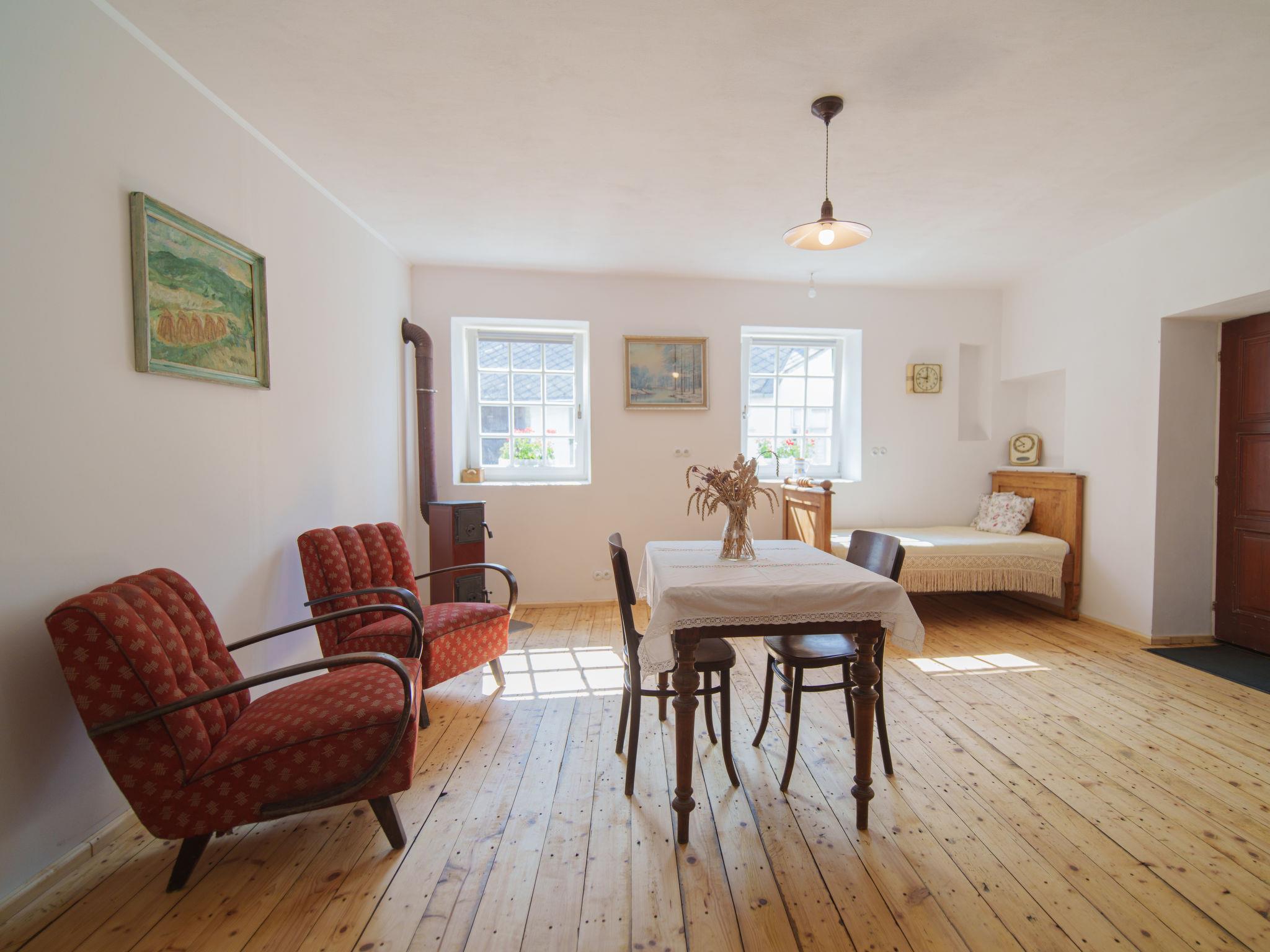 Historical farm estate "Kojetice na Morave", 2 storeys, detached, built in 1850, renovated in 2022. In the centre, 500 m from the edge of the forest, in the countryside. Private: property 1'450 m2 (fenced), garden, courtyard. Pergola, terrace, garden furniture, barbecue, fireplace, children's playground (swing). In the complex: hot tub, table football, washing machine. Parking (for 6 cars) on the premises. Shop 20 m, shopping centre 10 km, restaurant 1 km, bus stop "Kojetice" 150 m, railway station "Kojetice na Morave" 1 km, outdoor swimming pool 1 km, indoor swimming pool 10 km. Tennis 1 km, riding stable 2 km. Nearby attractions: Hrad Sádek 1.5 km, Pekelný kopec 8 km, Rozhledna Marenka 12 km, Wellness centrum Valec 23 km, Bazilika sv. Prokopa/Trebíc (UNESCO) 12 km, Telc (UNESCO) 32 km. Well-known lakes can easily be reached: Dalešická prerada 25 km, Vranovská prehrada 35 km. Groups of teenagers on request only. Neighbourhood highly sensitive to noise. Quietness and good behaviour expected.