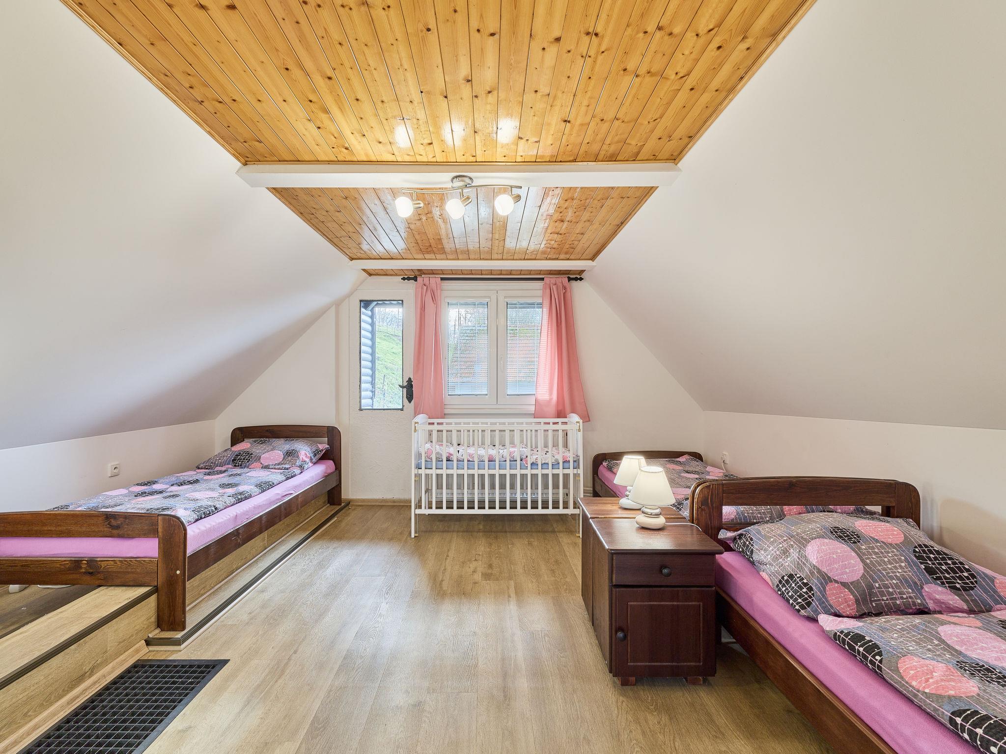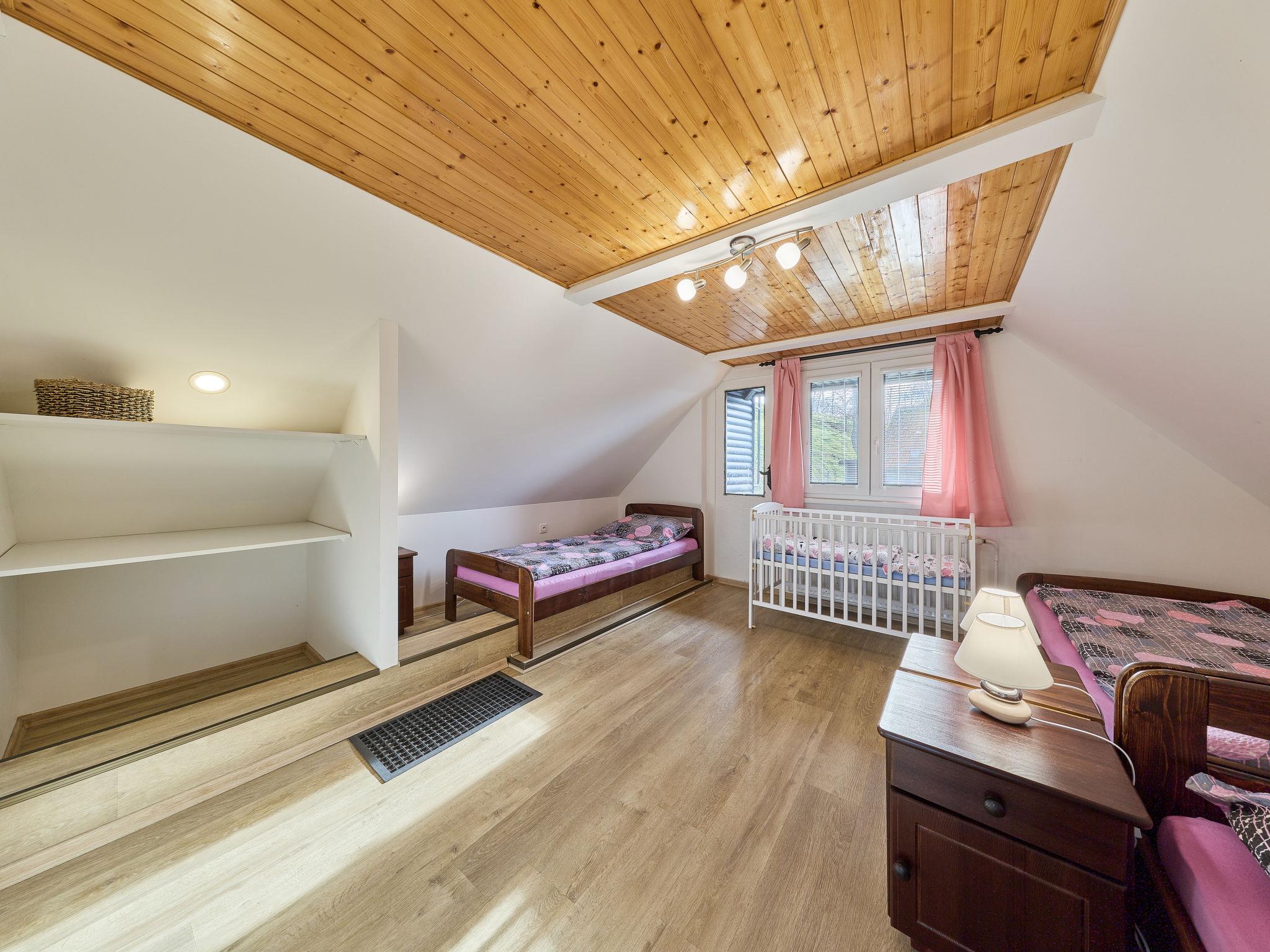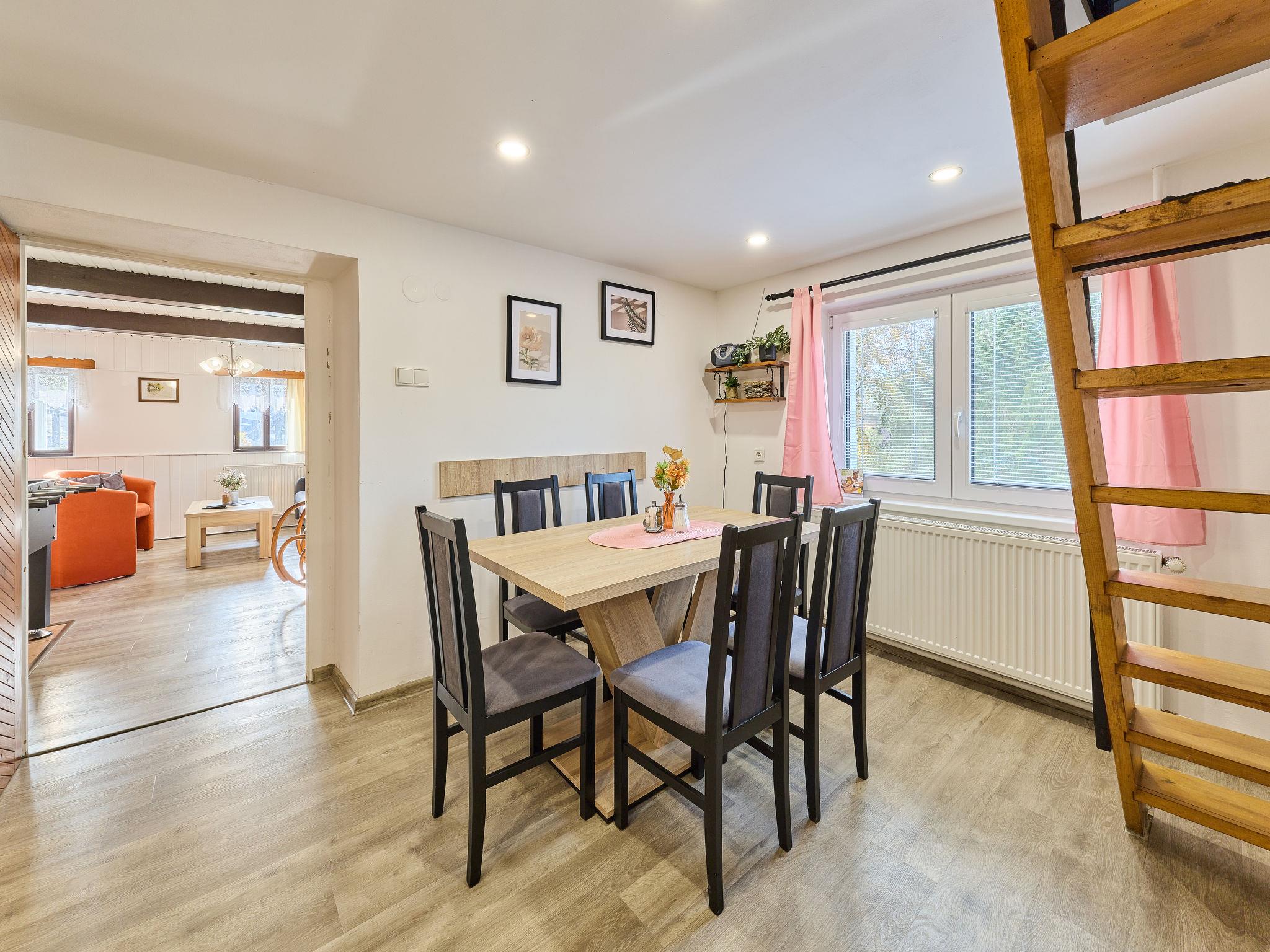Cottage "Leisure Lounge & Pool", 2 storeys, detached, renovated in 2024. 300 m from the centre of Kvasiny, 12 km from the centre of Dobruška, in the residential district, 12 km from the lake. Private: property 400 m2, lawn and trees, swimming pool (6 x 3 m, depth 120 cm, seasonal availability: 16.May. - 12.Sep.). Arbour, garden furniture, barbecue (swing). 30 m long steep motor access. Parking (for 2 cars) on the premises. Shop 500 m, supermarket 7 km, restaurant 500 m, bus stop "Kvasiny" 200 m, railway station "Kvasiny" 1 km, grass beach 12 km, outdoor swimming pool 9 km, bathing lake "Broumar" 12 km. Nearby attractions: Rychnov nad Knežnou 9 km, Opocno 12 km, Nové Mesto nad Metují 24 km, Náchod 30 km. Well-known ski regions can easily be reached: Deštné v Orlických horách 15 km. Well-known lakes can easily be reached: Broumar 12 km, Rozkoš 25 km.