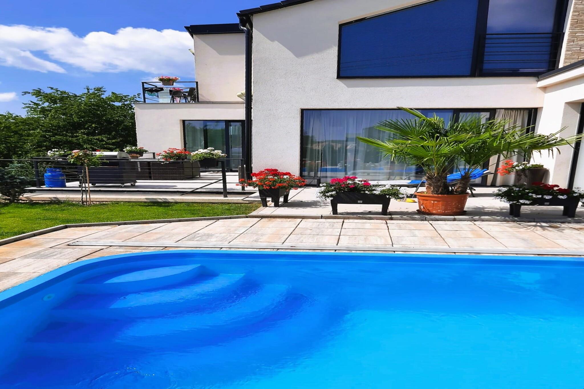 Dette feriehus har 1 soveværelser og plads til 5 personer (maks. 4 voksne). Indkvartering på 55 m² smagfuldt møbleret og moderne, det har have.. Det er udstyret med alt hvad du kan ønske dig til en afslappende og behagelig ferie: med opvaskemaskine, mikroovn, ovn, badekar, parabol og selvfølgelig gratis Wi-Fi. Fi, du vil føle dig lige så godt som hjemme her. Prikken over i'et i dette feriehus er den private 18 m? swimmingpool med stor terrasse og liggestole. Huset er bygget på en bakke, fra terrassen og poolen kan du overskue hele området. Dette hus er ideelt for folk, der søger fred og ro, men ikke ønsker at være fuldstændig isoleret fra den beboede verden. Prag er mindre end 45 minutter væk, og den nærmeste butik er let tilgængelig til fods. For en god tjekkisk restaurant behøver du kun gå 800 meter. Her har du din egen garage til bilen, en indhegnet have, en terrasse med havemøbler og en dejlig altan, hvor du kan nyde din morgenmad eller en god kop kaffe. Dette hus er bekvemt placeret, hvis du ønsker at komme til Tjekkiet med fly, da det kun ligger 34 kilometer fra lufthavnen. Der er nok at lave for alle i umiddelbar nærhed af dette feriehus med swimmingpool. Vandreture, cykling, klatring, leg eller en dagstur til Prag f.eks. Men du kan ikke bare svømme i din egen swimmingpool! 7 kilometer væk er der mulighed for at svømme i en flod og lidt længere, 12 kilometer væk, er der en rigtig fin udendørs swimmingpool. Den nærmeste by er Kladno.