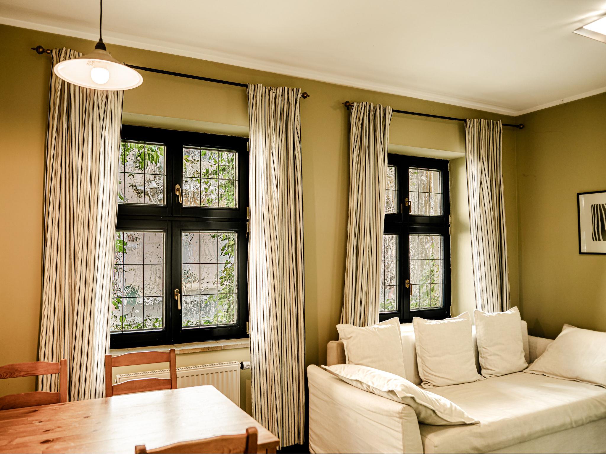 "Edison", 2-room apartment 38 m2 on 1st floor. Beautiful and cosy furnishings: living/sleeping room with 1 pull-out bed (2 pers.), dining table and satellite TV. 1 room with 1 double bed. Kitchenette (2 hot plates, kettle, microwave, freezer). Shower/WC. Very beautiful view of the garden. Facilities: Internet (WiFi, free). Parking (fenced) at the house. Please note: suitable for families. Non-smokers only. Maximum 1 pet/ dog allowed. Fire extinguisher.
