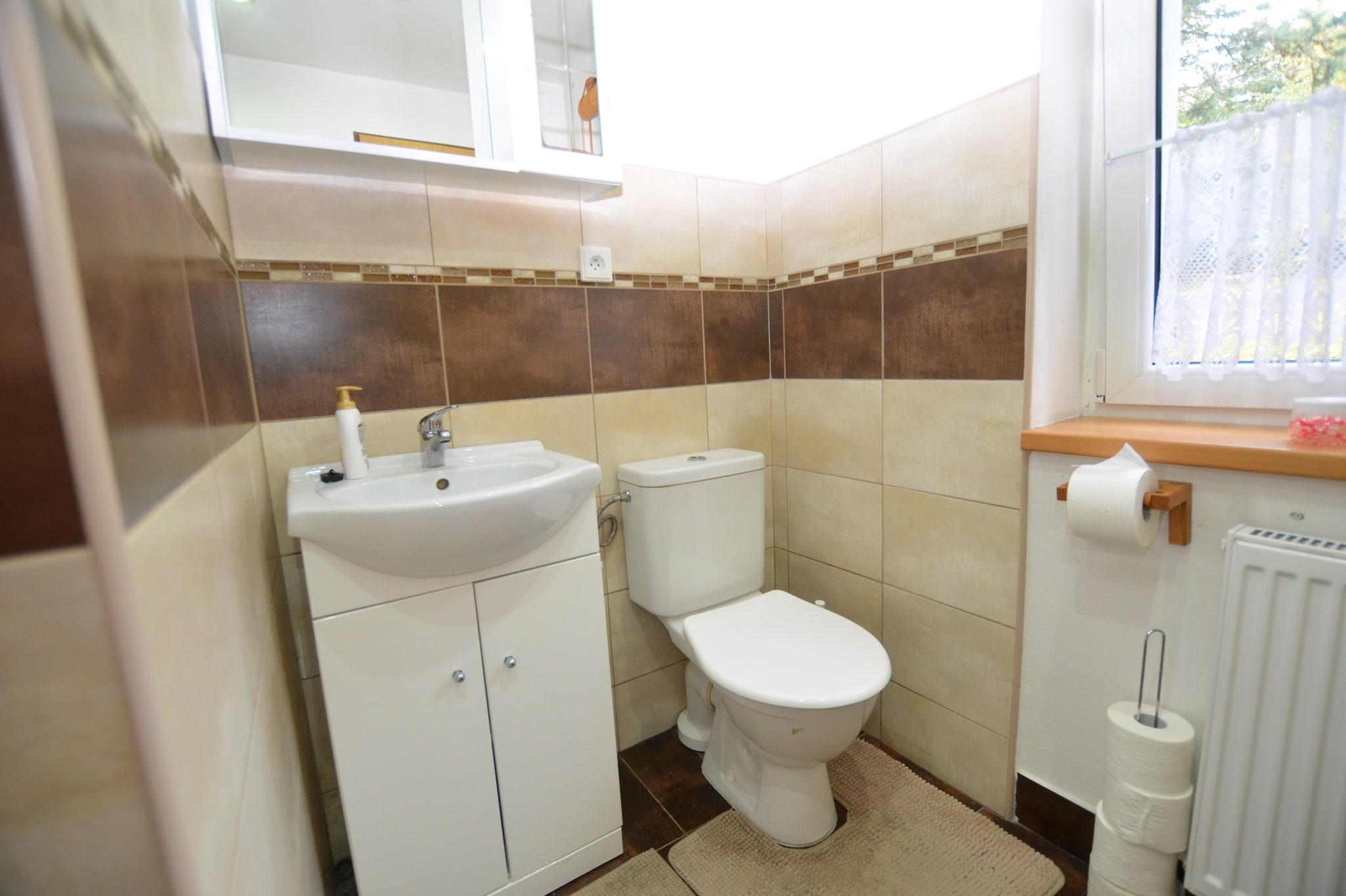 Dette charmerende fritliggende hus ligger i Tjekkiets Bohemian Giant Mountains. Med tre soveværelser, der kan rumme op til otte gæster, er det perfekt til en familieferie. Hjemmet byder velkommen til to kæledyr, og balkonen byder på en fantastisk udsigt over det fredelige tjekkiske landskab. Ejendommen er ideel til vinterferier og ligger kun 300 meter fra en skibakke, hvilket gør det til et fantastisk sted for skientusiaster. Nærliggende attraktioner omfatter ruinerne af Hasištejn Slot og Chomutov Zoo. Til spisning er der restauranter bekvemt placeret 4 km derfra, som serverer en række retter i verdensklasse. Indenfor har boligen en hyggelig stue og et fuldt udstyret køkken med ovn og kaffemaskine. Udenfor kan du grille på terrassen, slappe af i haven eller lade børnene have det sjovt på trampolinen og bordtennisbordet i timevis af underholdning.