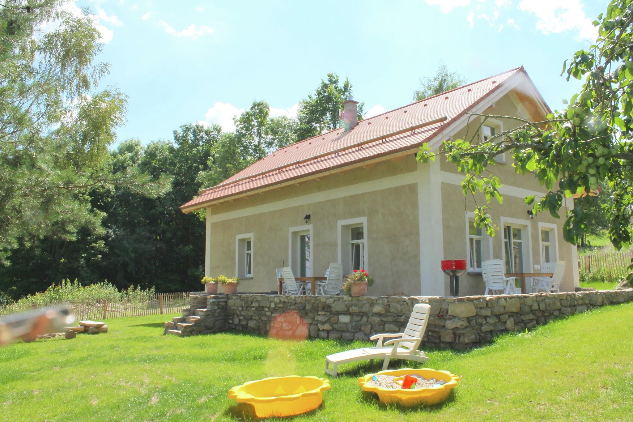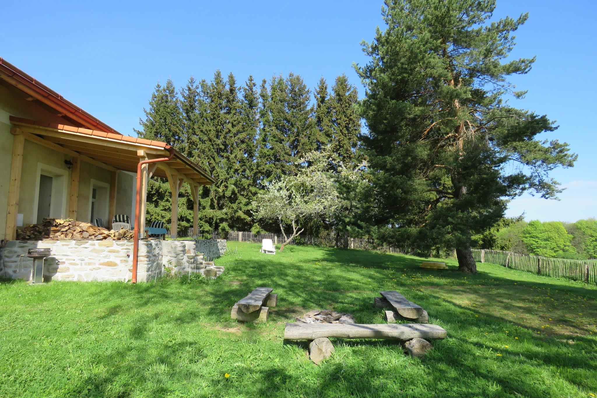 Dette rummelige feriehus ligger i Milíre i Tjekkiet. Der er 4 soveværelser, som kan rumme i alt 8 personer, perfekt til en ferie med venner eller familie. Derudover må der højst komme 3 husdyr til huset, som ligger i et skovområde. Du kan tage smukke vandre- eller cykelture i de smukke omgivelser. Den tilstødende Bohemian Forest har smukke bjerge, dale, skove og klare vandløb. Du kan også besøge Tachov, som kun ligger 7 km væk. Maleriske landsbyer, historiske slotte og medicinske kilder kan findes i Vestbøhmen. Feriehuset er udstyret med alle moderne bekvemmeligheder. Der er 2 badeværelser. Stuen er meget attraktiv på grund af pejsen og det store spisebord. Køkkenet har ovn og opvaskemaskine. Udenfor på terrassen kan du nyde en lækker grill, når vejret er godt. Børnene kan hygge sig i sandkassen. NB! Huset opvarmes med brændeovn.