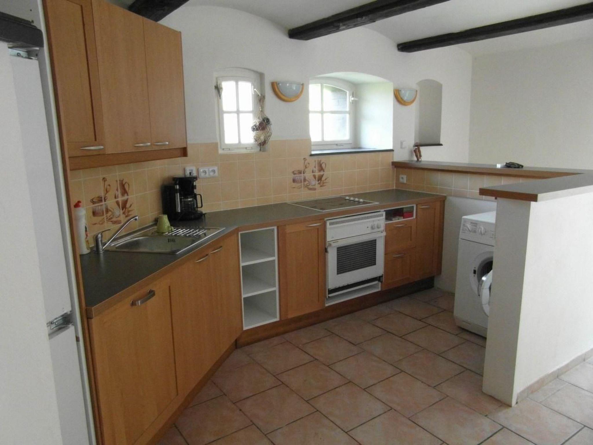 The holiday home has recently been completely renovated and rebuilt and all rooms are equipped with stylish furniture. It offers a pleasant atmosphere and an unforgettable experience. On the first floor there are three bedrooms, each of them has a comfortable double bed (bed linen included); the wardrobes and drawers offer plenty of storage space. There is also a cot available. In addition, a hall and a large bathroom with underfloor heating, bath and WC. On the ground floor is a spacious living room with satellite TV, a bathroom with underfloor heating with shower and WC, storage room with washing machine, fully equipped kitchen (fridge, dishwasher, cooker, crockery). The dining room, which is dominated by a fireplace, is part of the kitchen and from here you have direct access to the terrace with a large swimming pool. The swimming pool is open from June to September. A hot tub and a whirlpool are available on request. We have newly prepared mobile WLAN for our guests to use while travelling.