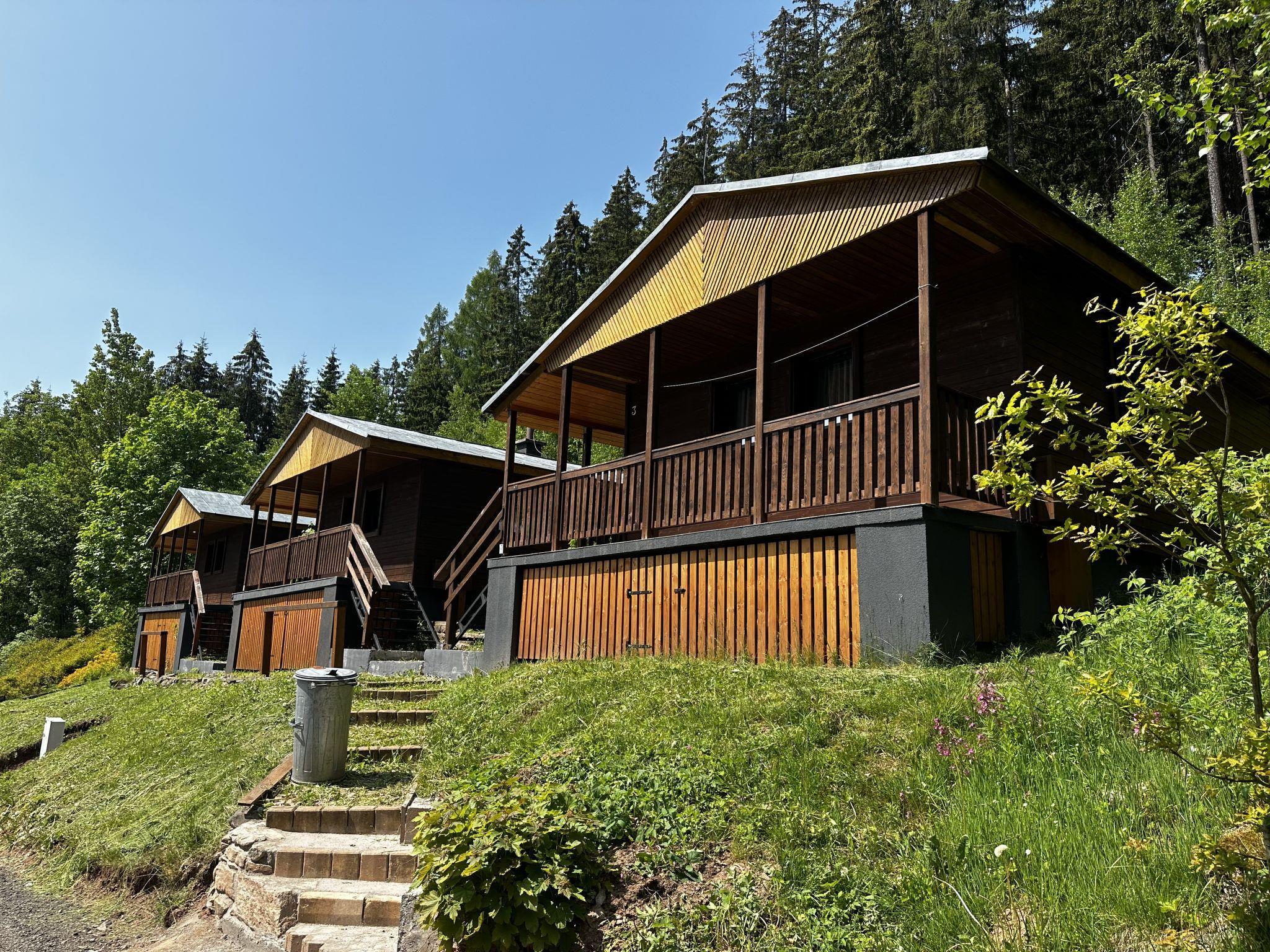 "Lesní plovárna B2", 1-room bungalow. Comfortable furnishings: living/sleeping room with 1 x 2 bunk beds, 1 double bed, Scandinavian wood stove, dining table and TV (flat screen). Kitchenette (2 hot plates, toaster, kettle, microwave, electric coffee machine, Capsules for coffee machine (Tchibo)). Shower/WC. Electric heating, wood heating. Terrace. Terrace furniture, barbecue (portable), deck chairs. Facilities: Internet (WiFi, free). Please note: suitable for families. Non-smoking house. 1 small pet/ dog allowed.