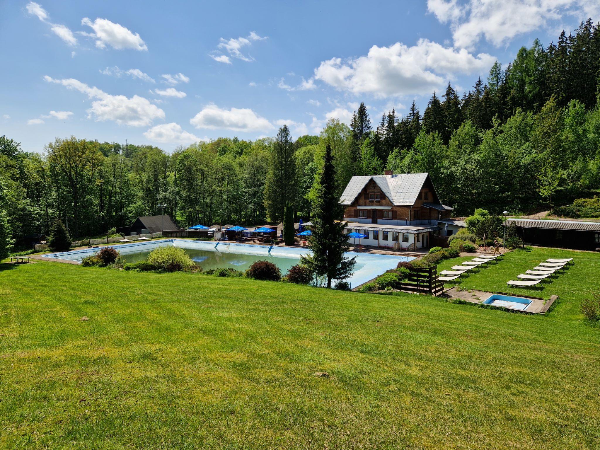 Very beautiful chalet "Luxe Timber Lodge & Yoga Loft", 2 storeys, detached, built in 2023. 7 houses in the resort. Outside the resort, in a quiet, sunny position, 5 m from the edge of the forest, 2 km from the skiing area. For shared use: natural state property, lawn for sunbathing, swimming pool (seasonal availability: 26.Jun. - 03.Sep.). Shower/WC in the pool area, table tennis, boccia, badminton, beach volleyball, barbecue, fireplace. Private: patio, fireplace. In the complex: WiFi, billiard table, storage room for bicycles, sun terrace, storage room for skis. Roofed, parking at the house. E-charging station. Grocery 1.5 km, shopping centre 6 km, restaurant 5.5 km, bus stop "Mladé Buky" 1.5 km, railway station "Mladé Buky" 1.5 km, indoor swimming pool 10 km. Golf course (18 hole) 4 km, riding stable 3.5 km, walking paths from the house, cycle lane 50 m, ski rental 2.5 km, ski bus stop 50 m, ski school 2.5 km, children's ski school 2.5 km, sled run 2 km, cross country ski track 500 m, children's playground 50 m. Nearby attractions: zábavní park Balduv svet, 2.5 km, Rozhledna Eliška, tvrz Stachelberg 9 km, Stezka Korunami stromu Janské Lázne 10 km, Lanovka na Snežku, Pec pod Snežkou 18 km, Zoo Dvur Králové, Adršpach 28 km, Vyhlídkové lety Vrchlabí, Kuks 30 km. Well-known ski regions can easily be reached: Mladé Buky 2 km, Janské Lázne 9 km, Cerný Dul, Pec-Cerná hora 15 km. Hiking paths: Krkonošský národní park.