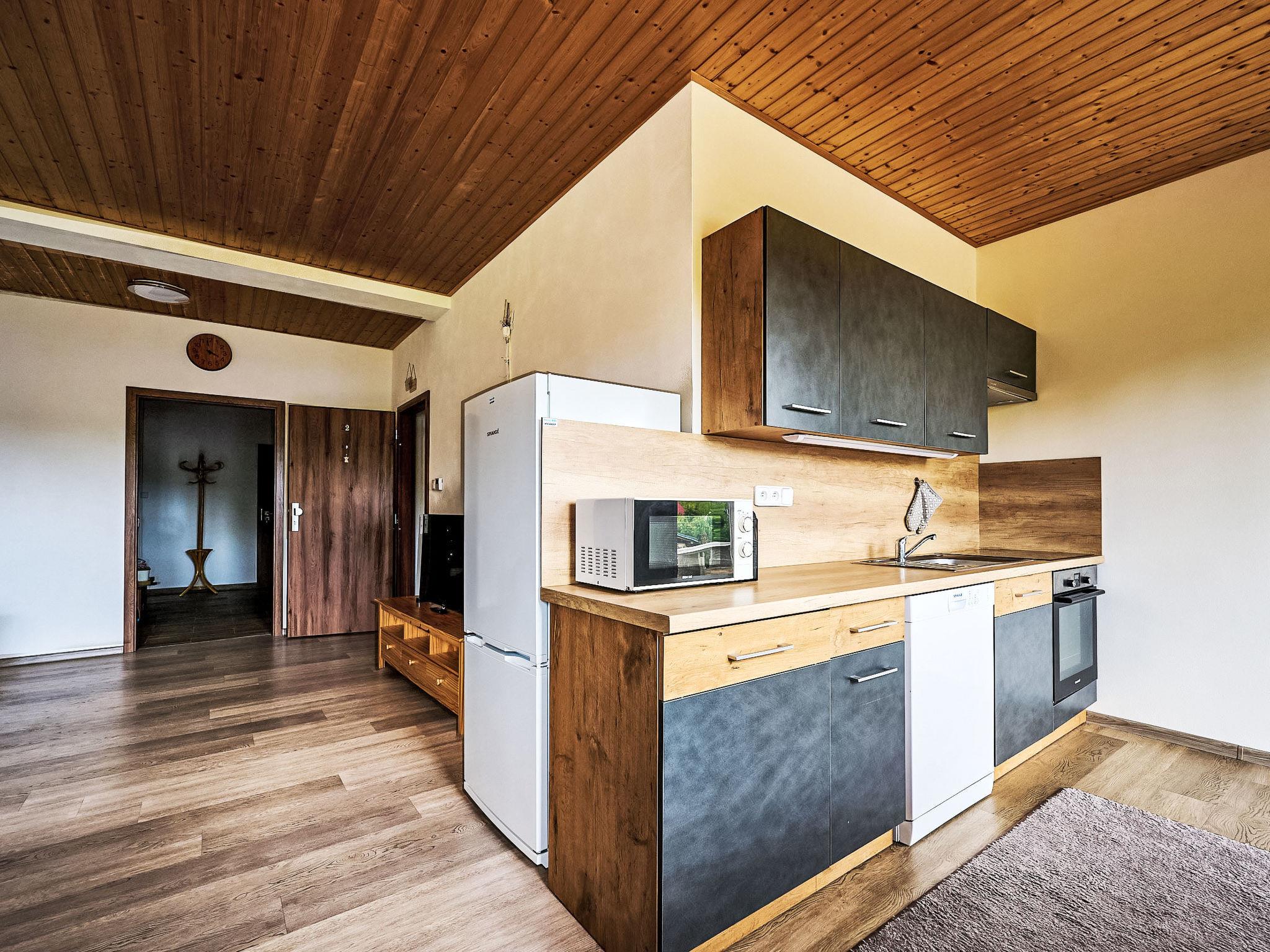 Child friendly, beautiful 2-family house "Pod Cernou Studnicí". In a quiet, sunny position, 3 km from the skiing area. For shared use: terraced garden, natural garden. Terrace, garden furniture, barbecue, fireplace, children's playground, parking. Shop 3 km, supermarket 600 m, restaurant 3 km, bar 3 km, bus stop "Nová Ves nad Nisou" 700 m, railway station "Nová Ves nad Nisou" 3 km, outdoor swimming pool 700 m, indoor swimming pool 6 km. Riding stable 500 m, ski lift 3 km, ski rental 3 km, ski school 3 km, cross country ski track 500 m. Nearby attractions: Cerná Studnice rozhledna 1.9 km, Nisanka 1.5 km, muzeum obrnené techniky 1.5 km, muzeum Na ceste 3 km, arboretum 1.9 km, Urbanova Krížová cesta. Well-known ski regions can easily be reached: Filip Smržovka 3 km, Špicák 9 km, Severák 10 km. Well-known lakes can easily be reached: Mšeno Jablonec nad Nisou 6 km. Hiking paths: Hrebenovka Cyklostezka Odra-Nisa 50 m, Lucany nad Nisou 3 km, Horní Maxov 7 km. Please note: suitable for families. In this building there are two apartments No. CZ4696.1011.1 and CZ4696.1011.2, which can also be booked together under No. CZ4696.1011.3.