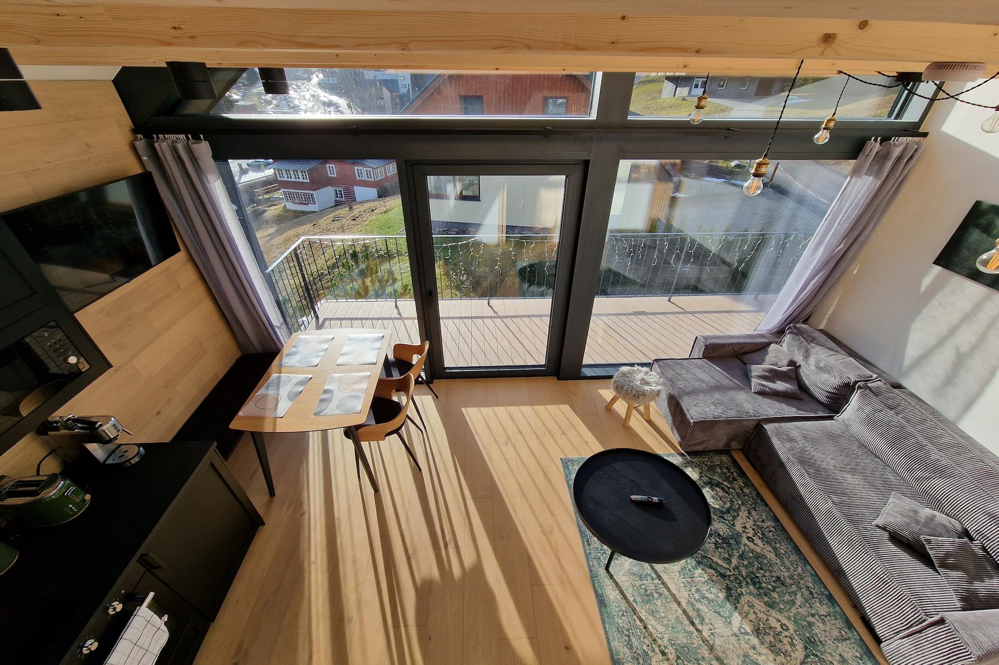 Oplev den perfekte blanding af natur og komfort i denne luksuslejlighed i Krkonoše-bjergene. Forestil dig at starte din dag med en kop kaffe på terrassen og se ud på de majestætiske bjergtoppe. Uanset om du er ivrig efter at vandre de nærliggende stier eller køre på skiløjperne kun få minutter væk, tilbyder denne beliggenhed uendelige muligheder for eventyr. Efter en dag udendørs kan du slappe af med en drink, mens du ser solen gå ned over bjergene. Denne moderne bygning byder på to smukt indrettede lejligheder, som hver har store vinduer, der indrammer det fantastiske bjerglandskab. Interiøret kombinerer luksuriøse træ- og stenmaterialer, hvilket skaber en hyggelig, men elegant atmosfære. Gratis privat parkering er tilgængelig, hvilket sikrer din bekvemmelighed under hele dit ophold. Lejligheden i stueetagen er perfekt til 3 gæster og omfatter et komfortabelt soveværelse, en stue med en sovesofa og et fuldt udstyret køkken. Det moderne badeværelse og yderligere faciliteter, såsom en barneseng og høj stol efter anmodning, sikrer et behageligt ophold. For skiløbere er der et fælles skiopbevaringsområde. Lejligheden har også en rummelig 25m² terrasse. For større grupper kan du overveje at booke loftslejligheden, som kan rumme op til 5 personer. Placeringen er ideel, med både byens centrum og skiløjperne kun en kort gåtur væk, og tilbyder det bedste fra begge verdener til eventyr og afslapning.