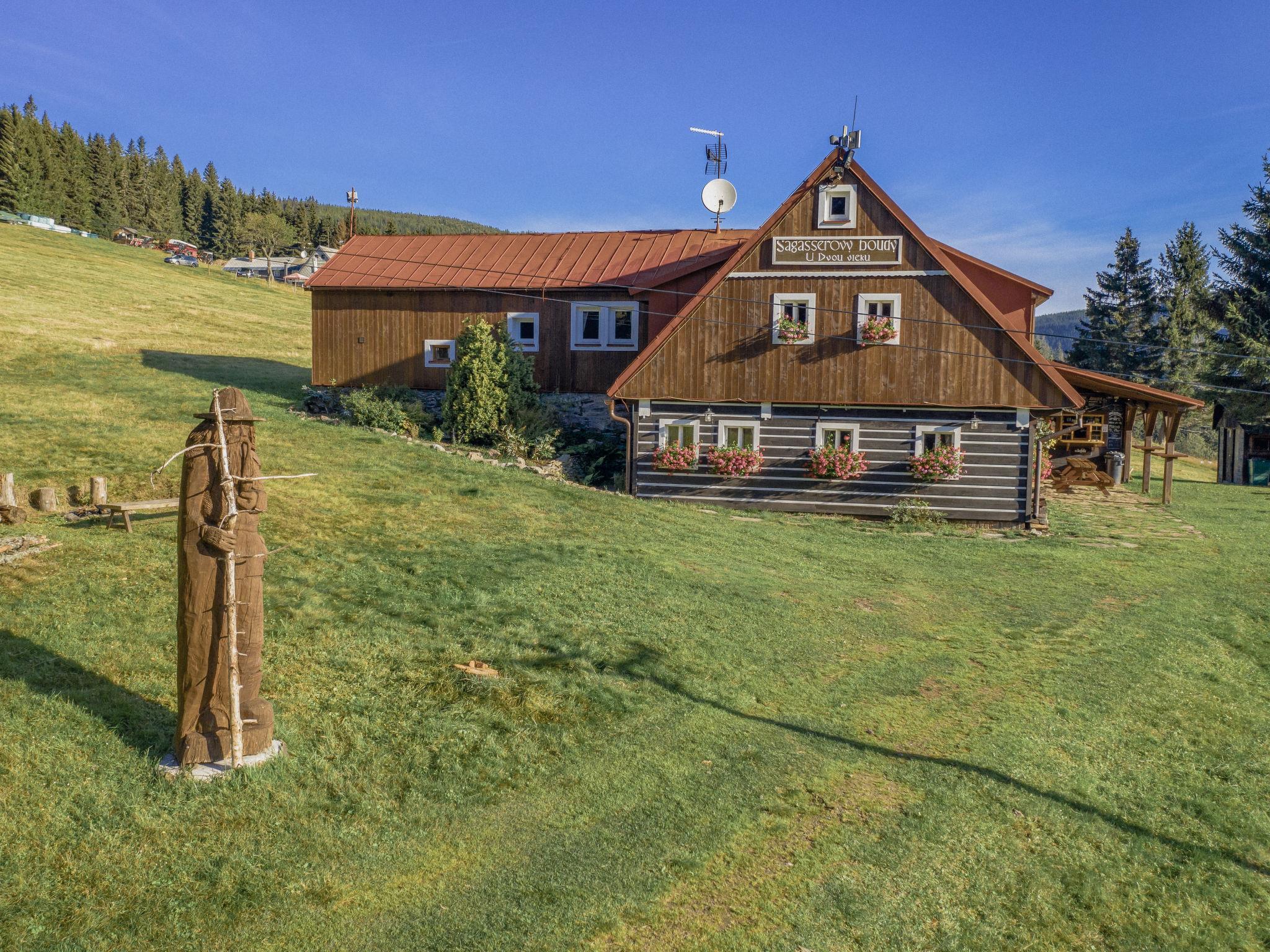 Velká Úpa 6 km from Pec pod Snežkou: Beautiful, cosy chalet "U Dvou vleku", 3 storeys, detached, surrounded by meadows. In a secluded, sunny, elevated position, directly by the skiing area. Private: property. Terrace, garden furniture, barbecue. In the house: WiFi, playroom, table football, storage room for skis, central heating system, washing machine, tumble dryer. Parking at the house, in winter 5 km public parking extra. Shop 6 km, grocery 6 km, restaurant 100 m, bus stop "Pec pod Snežkou, Velká Úpa, nám." 3 km, indoor swimming pool 250 m. Golf course (18 hole) 15 km, tennis 4 km, walking paths from the house 10 m, cycle lane 100 m, ski lift 10 m, chair lift 200 m, slopes 10 m, ski school, children's ski school, cross country ski track, children's playground 500 m. Nearby attractions: Bobová dráha/Relaxpark Pec pod Snežkou 3 km, Snežka (1603 m) 6 km, Mladé Buky 12 km, Kowary 26 km, Aquapark Vrchlabí 29 km, Park miniatur Myslakowice, Karpacz 34 km, Adršpašsko-teplické skály 40 km, Jelenia Góra, Zoo Dvur Králové, Kuks 45 km. Well-known ski regions can easily be reached: Velká Úpa 200 m, Cerná hora-Pec pod Snežkou 3 km, Cerná Hora-Janské Lázne 12 km. Well-known lakes can easily be reached: Dolce 25 km. Hiking paths: Krkonošský národní park. Please note: suitable for families. In case of good snow conditions, the house is accessible on skis. At disposal: minibar, beer tap. Local bistro (draft beer and limo, hot drinks, pizza, hot dog, etc.) open only in winter.