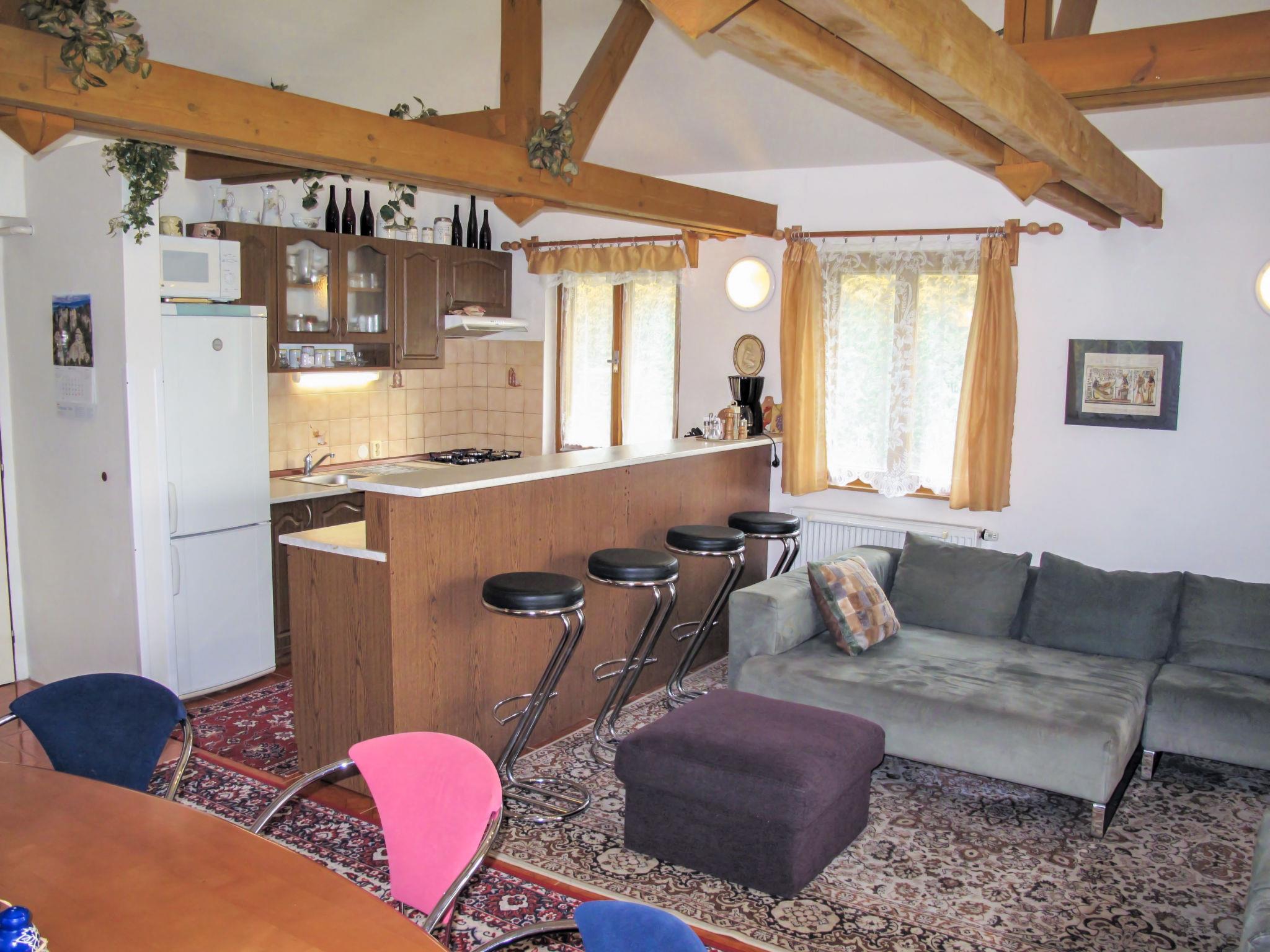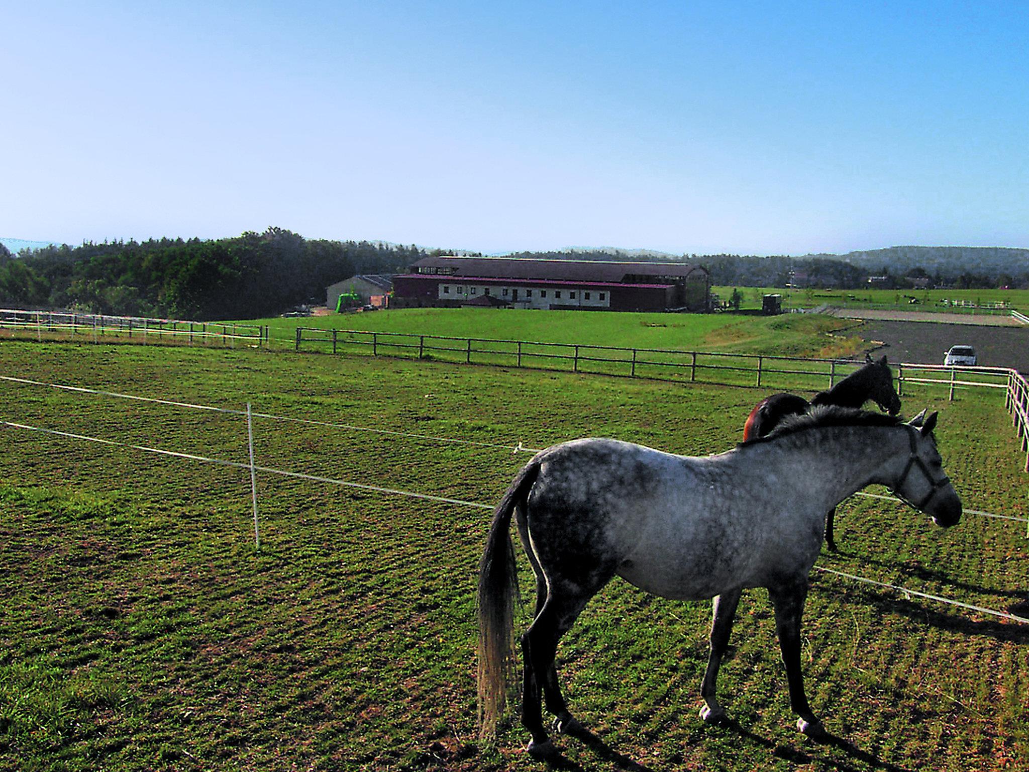Petríkov 16 km from Rícany: Modern villa "Petríkov". On the outskirts, in a quiet, sunny position. Private: property 1'000 m2 (fenced) with lawn, swimming pool (above ground) (3,6 m diameter, depth 100 cm, seasonal availability: 15.Jun. - 15.Sep.). Outdoor shower, patio, garden furniture, barbecue, fireplace. In the house: WiFi. Parking on the premises. Grocery, restaurant, bus stop 200 m, outdoor swimming pool 400 m, indoor swimming pool 10 km. Golf course (9 hole) 3 km, tennis 3 km, riding stable 3 km. Nearby attractions: Praha 22 km, Aquapark Cestlice 10 km, Zámek Štirín 3 km. Outdoor fireplace and garden seating out of order in winter.