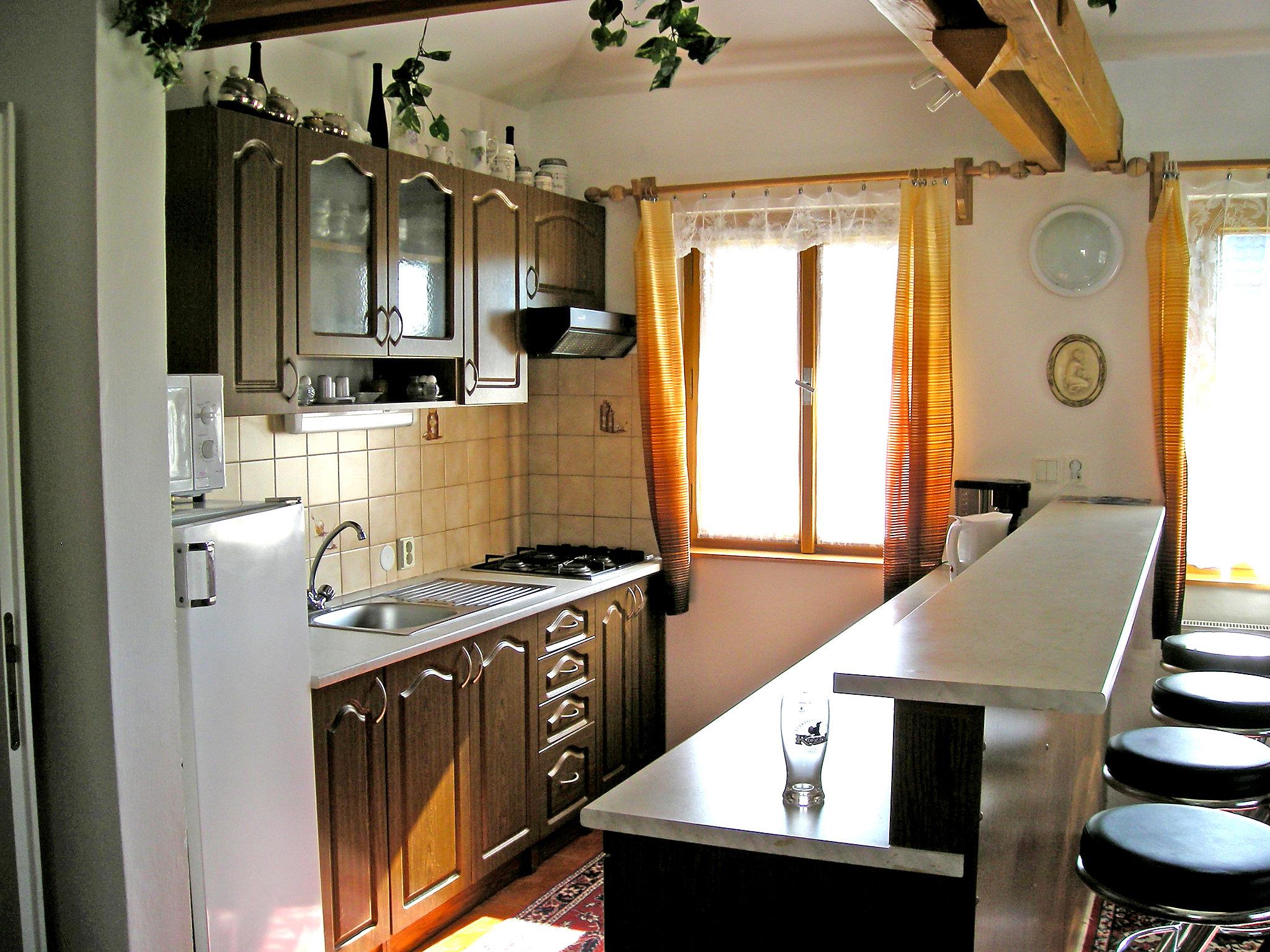 4-room house 98 m2. Beautiful furnishings: living/dining room 37 m2 with 1 double sofabed, open-hearth fireplace, satellite TV and radio. Exit to the garden, to the terrace. 1 room with 2 beds. 1 room with 1 double bed. 1 room with 1 double bed. Kitchen (4 gas rings, kettle, microwave, electric coffee machine). Bathroom, sep. WC. Gas heating. Facilities: washing machine. Internet (WiFi, free). Suitable for families. Maximum 1 small pet/ dog allowed.