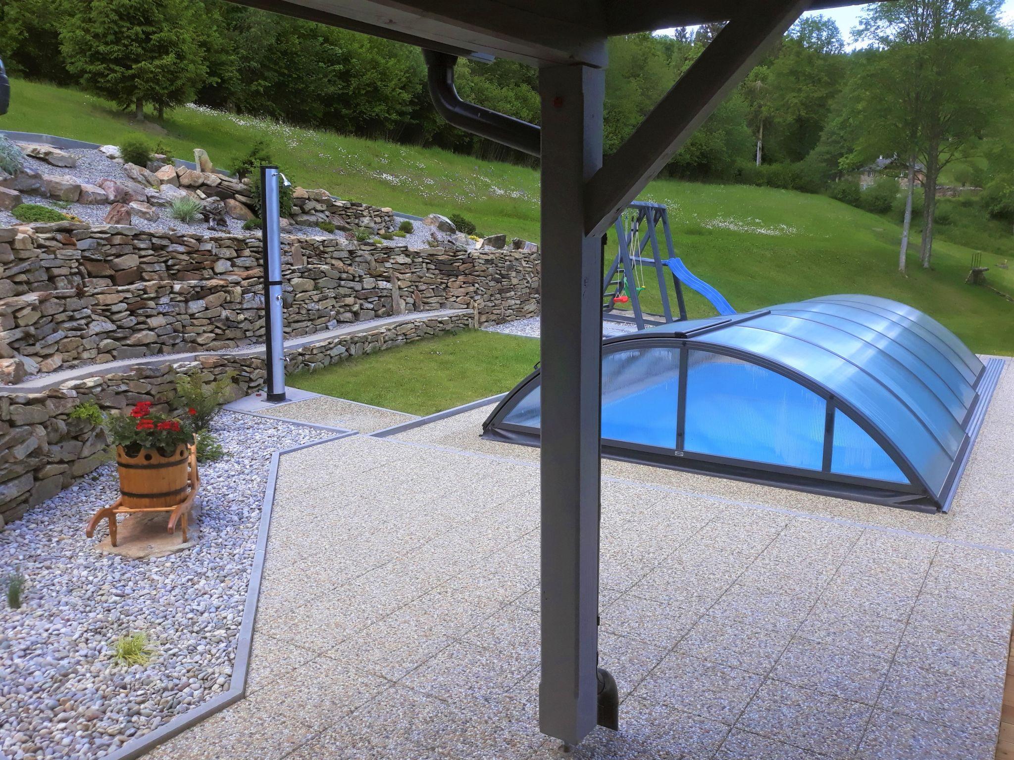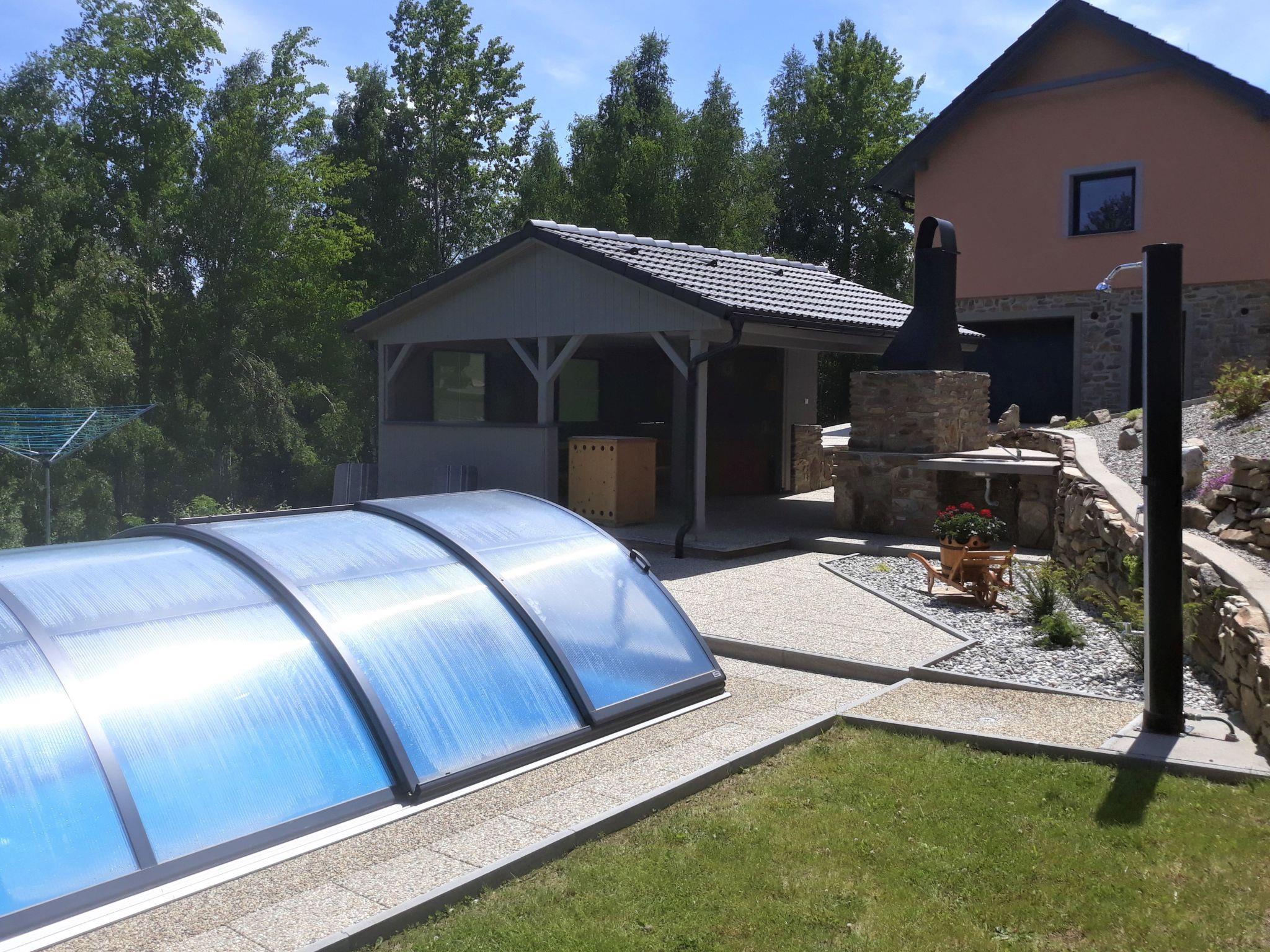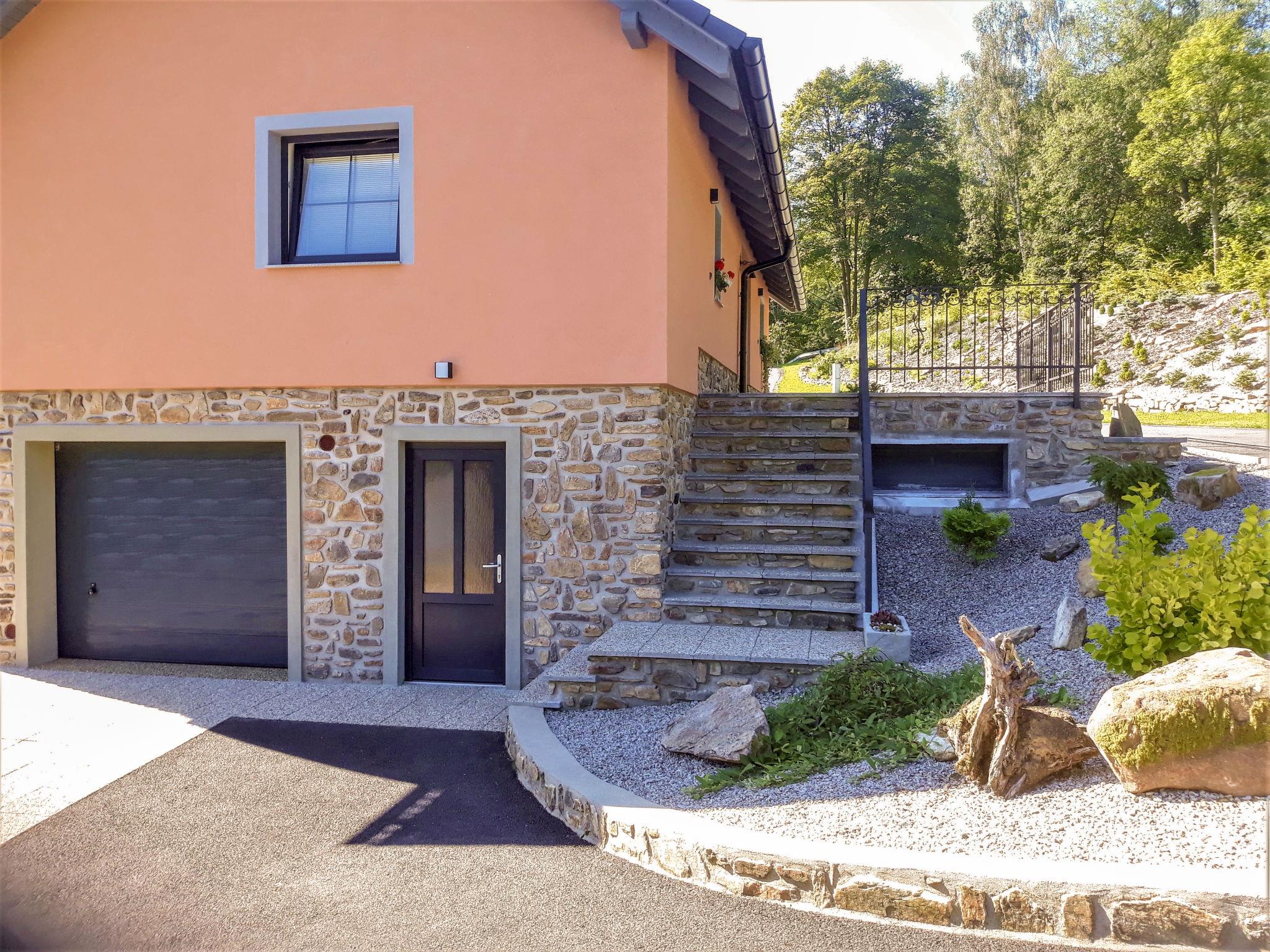 Lažištka/Nebahovy 8 km from Prachatice: Comfortable house, 2 storeys, detached, built in 2017, surrounded by trees. In a quiet, sunny position. Private: property 1'500 m2 with lawn, swimming pool (5 x 3 m, depth 125 cm, seasonal availability: 15.Jun. - 15.Sep.). Outdoor shower, pergola, garden furniture, barbecue house, children's playground (slide, swing). In the house: sauna, central heating system, washing machine. Parking (for 3 cars) on the premises. Shop 2 km, restaurant 8 km, bus stop "Nebahovy, Lažištka rozcestí" 750 m, outdoor swimming pool 8 km, indoor swimming pool 8 km. Nearby attractions: Helfenburk 22 km, Boubínský prales 25 km, Ceský Krumlov, Ceské Budejovice 35 km, Hluboká nad Vltavou, Národní park Šumava 37 km. Well-known ski regions can easily be reached: Libín 12 km, Zadov 40 km. Well-known lakes can easily be reached: Lipno 50 km. The owner does not accept any youth groups.