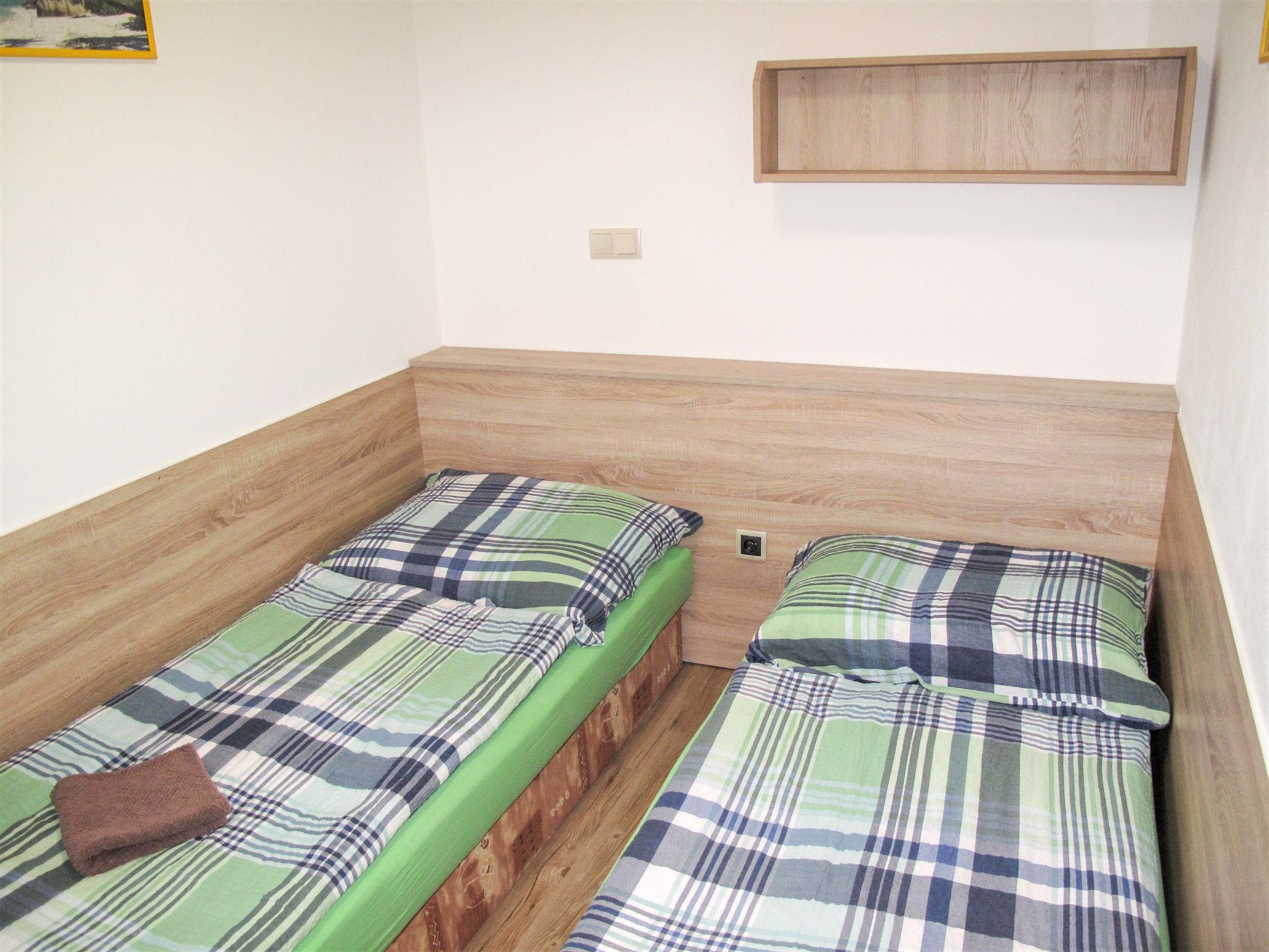 "Nebahovy u Prachatic", 6-room house 100 m2 on 2 levels. Modern and cosy furnishings: living room with dining nook and satellite TV. 1 room with 1 double bed. 1 room with 1 double bed. Kitchen (4 hot plates, oven, toaster, kettle, microwave, electric coffee machine). Shower, shower/WC, Sauna. Upper floor: living room with dining nook and satellite TV. 1 room with 2 beds. 1 room with 1 double bed. 1 room with 1 double bed. Kitchenette (4 hot plates, oven, dishwasher, microwave, electric coffee machine). Shower, sep. WC. Electric heating, floor heating. Facilities: Internet (WiFi, free). Please note: suitable for families. Non-smoking house. Smoke alarm, fire extinguisher.