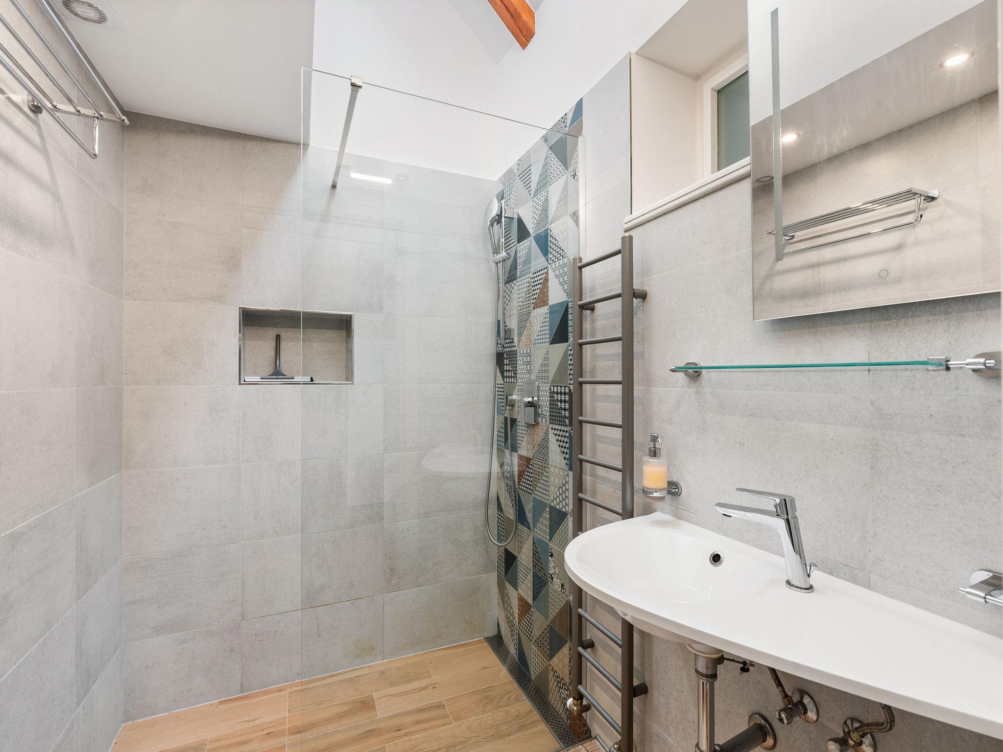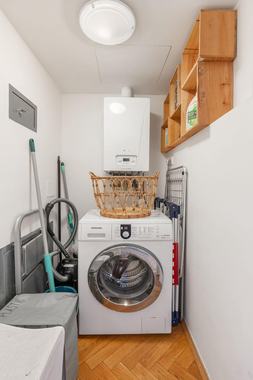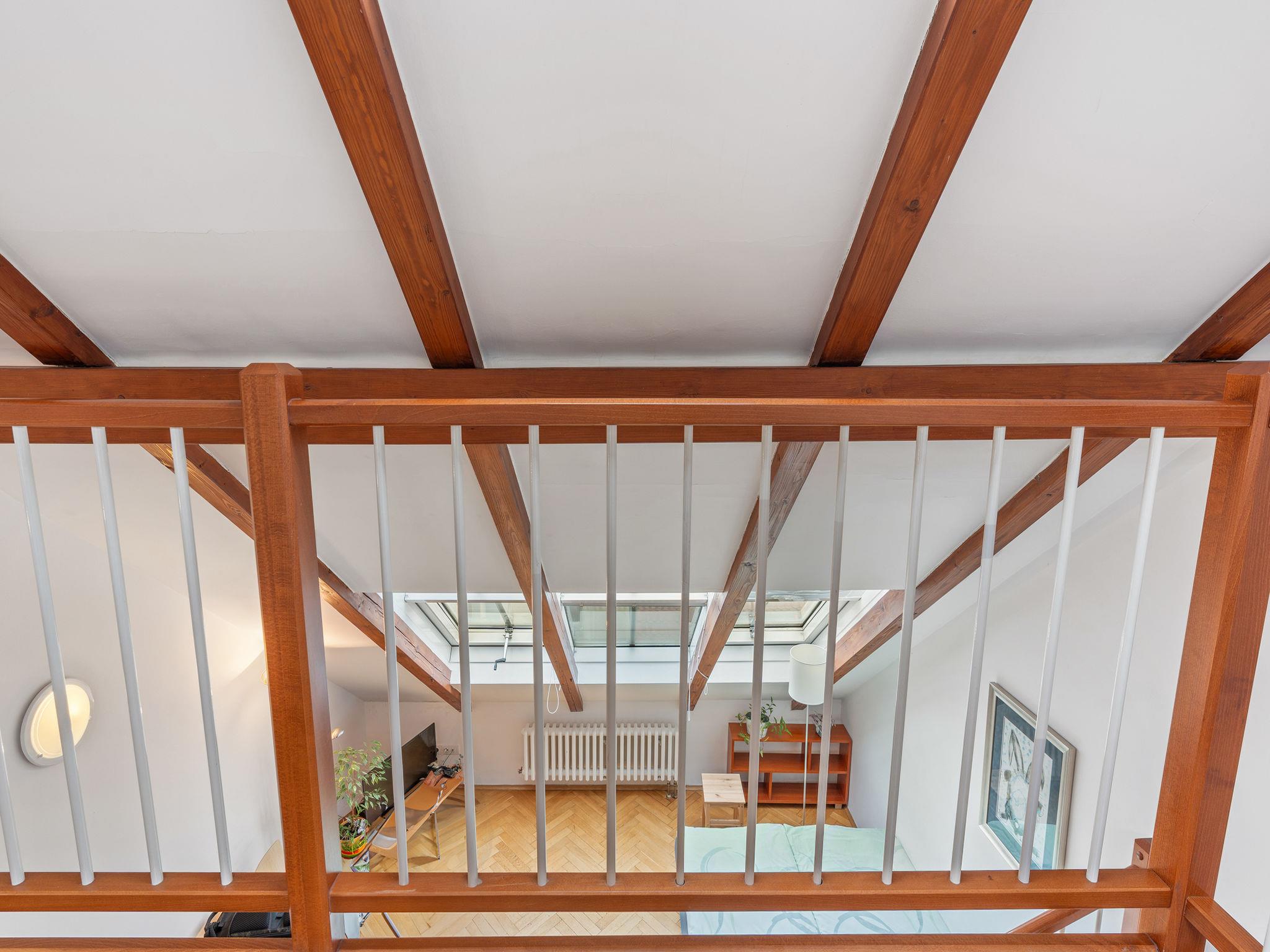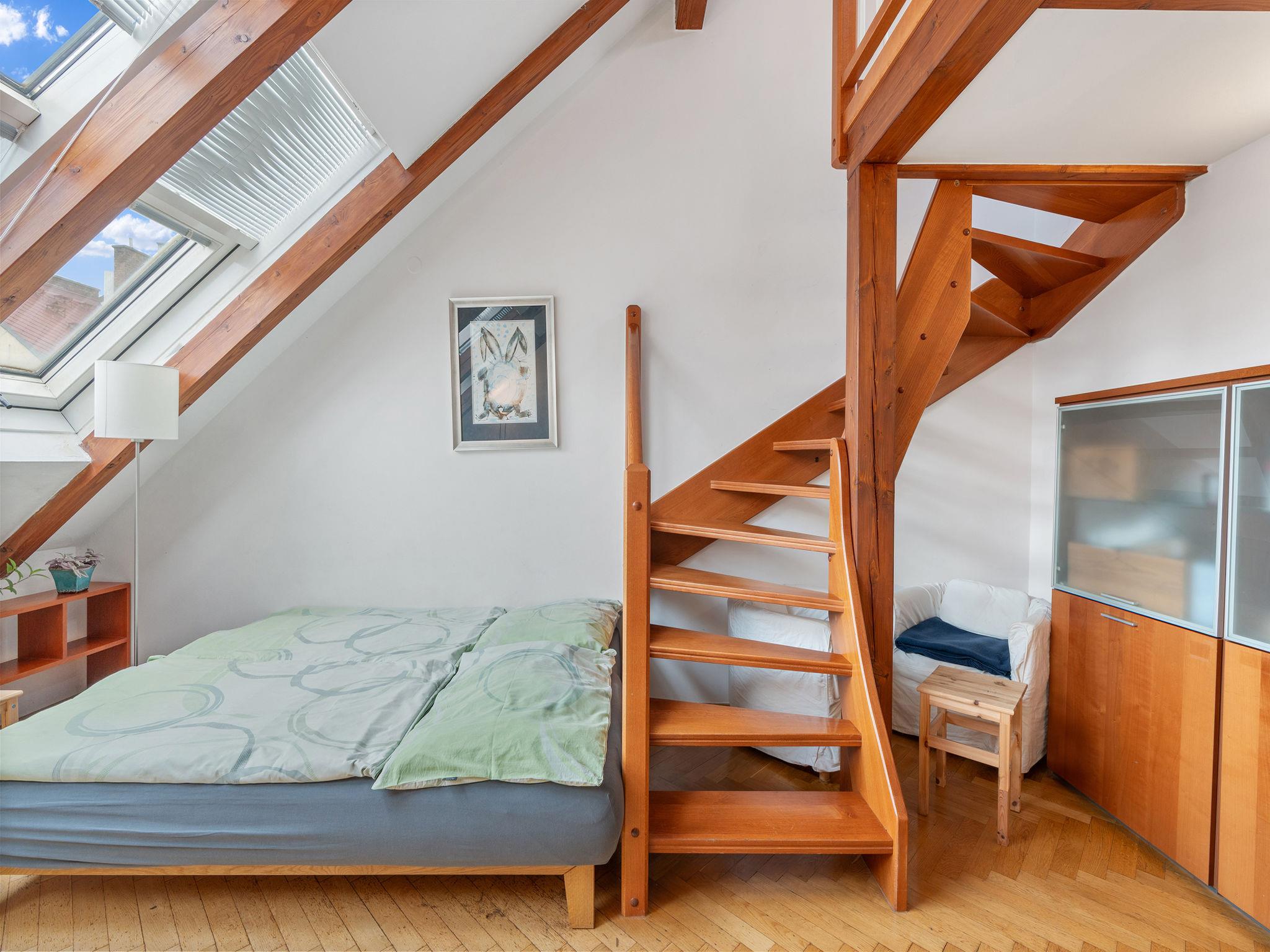 "O21", 2-room apartment 48 m2 on 2 levels on 4th floor. Bright, stylish and cosy furnishings: living room 22 m2, with sloping ceilings with panoramic window with 1 double sofabed, dining table, TV, flat screen and air conditioning. Kitchen in the entrance 6 m2 (oven, 4 gas rings, kettle, freezer, electric coffee machine, Capsules for coffee machine (Nespresso) extra). Shower/WC. Upper floor: gallery 11 m2, with sloping ceilings with rooflight with 1 double bed and air conditioning. View of the city. Facilities: washing machine, safe, hair dryer. Internet (WiFi, free). Please note: suitable for families. Non-smokers only. Maximum 1 pet/ dog allowed. Instead of an enclosed bedroom, some sleeping areas are located in an open-plan area (gallery, alcove, etc.).