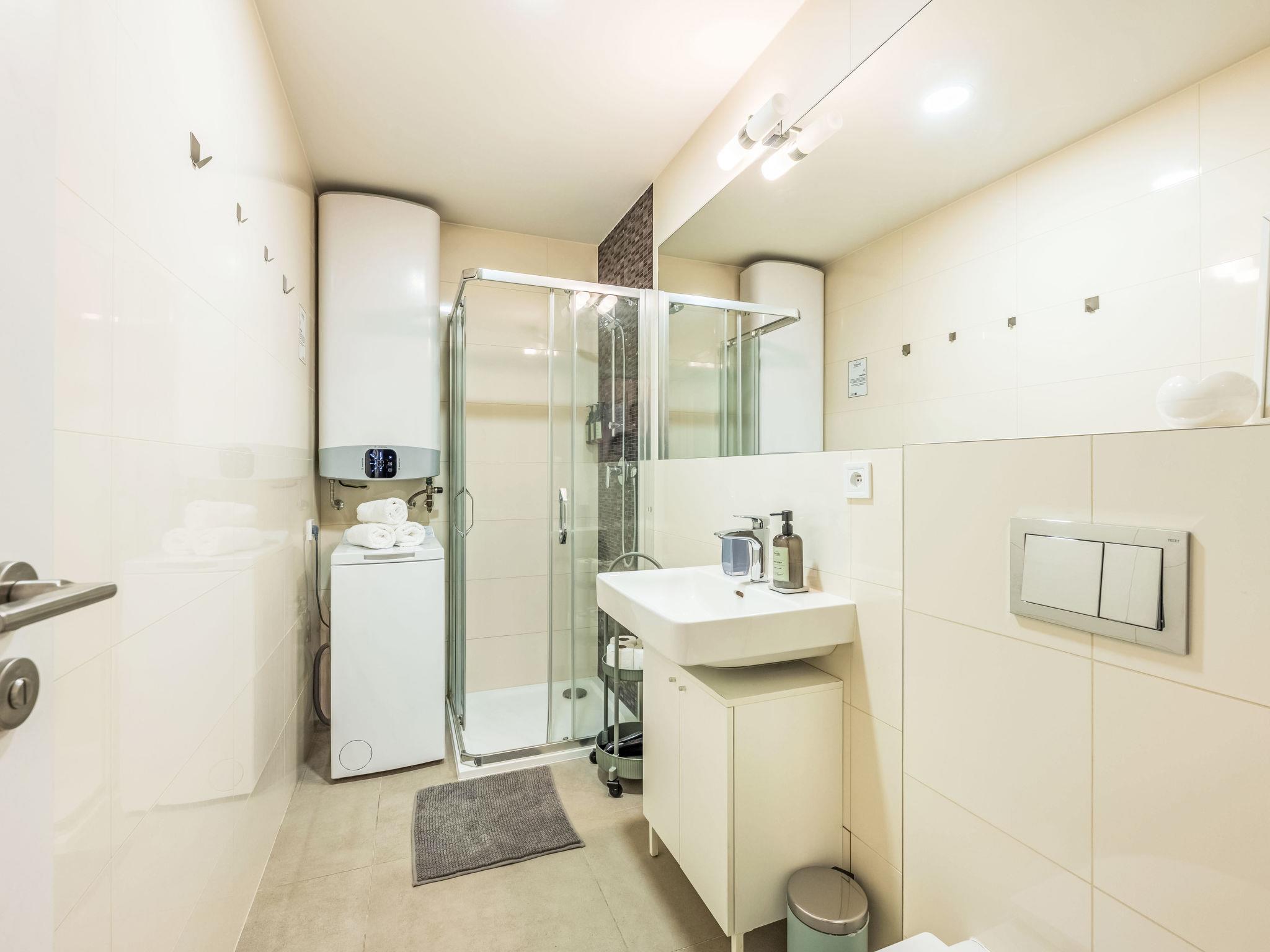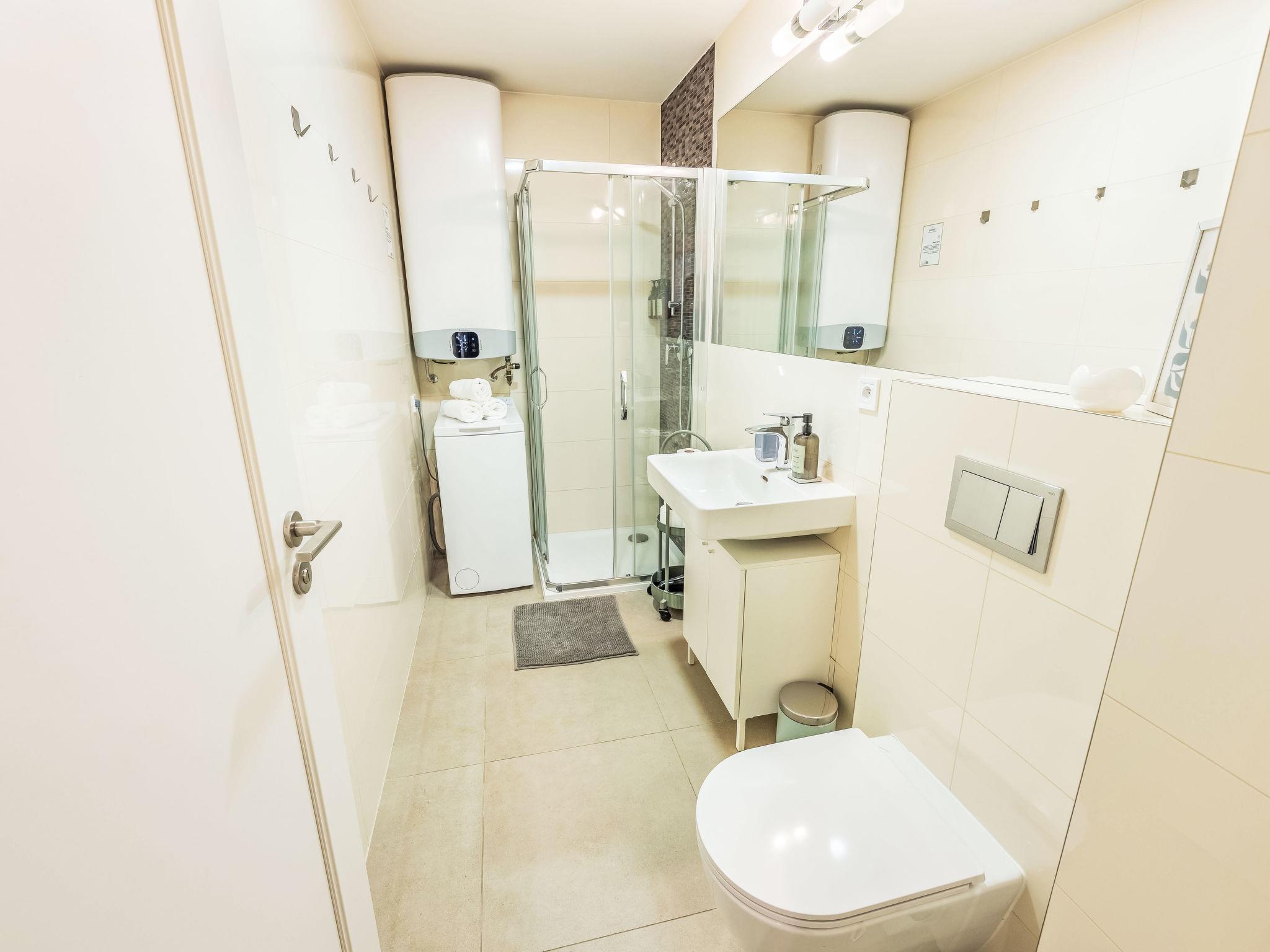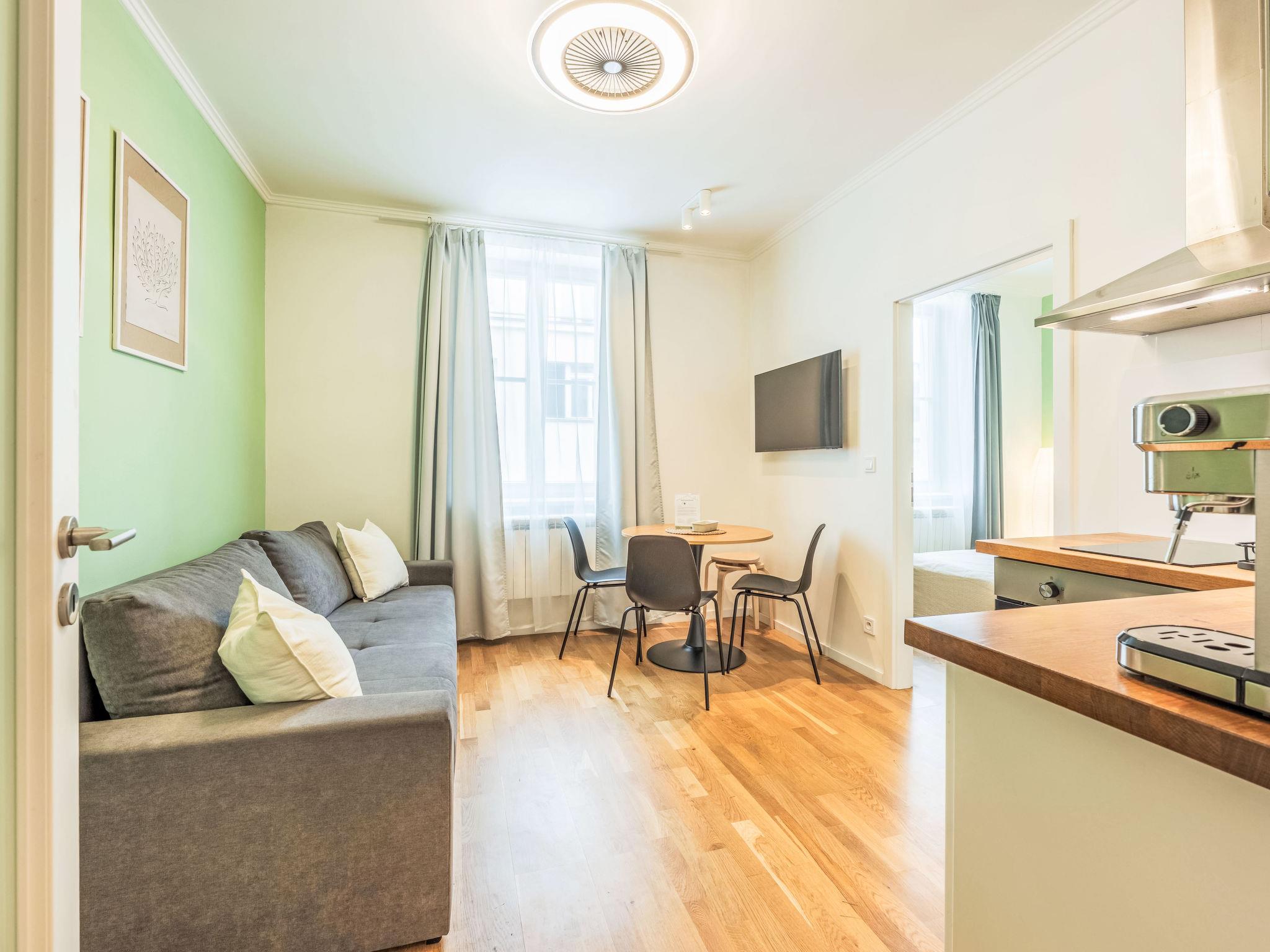 2-room apartment 38 m2 on 5th floor. Bright, fully renovated, very beautiful and modern furnishings: entrance hall. Living/dining room with 1 sofabed, dining table and TV. 1 room with 1 bed and 1 double bed. Kitchenette (oven, 2 induction hot plates, toaster, kettle, microwave, freezer, electric coffee machine). Shower/WC. Facilities: washing machine, baby cot, hair dryer. Internet (WiFi, free). Please note: suitable for families apartment courtyard side. Non-smokers only. Maximum 1 pet/ dog allowed. Smoke alarm, fire extinguisher.