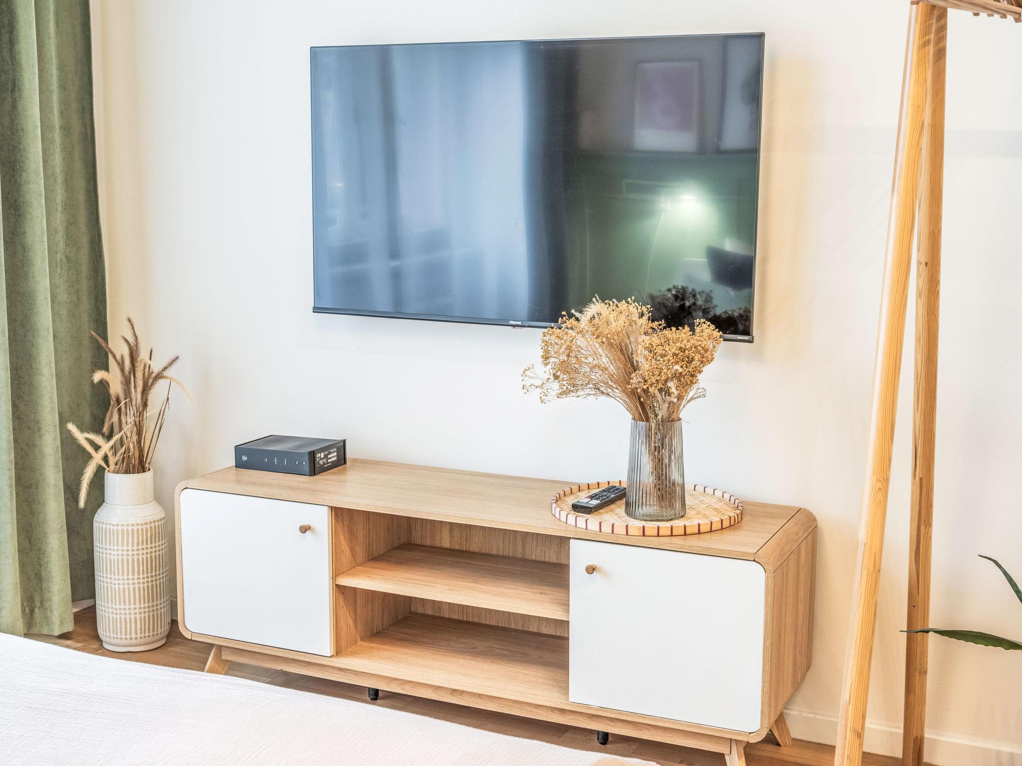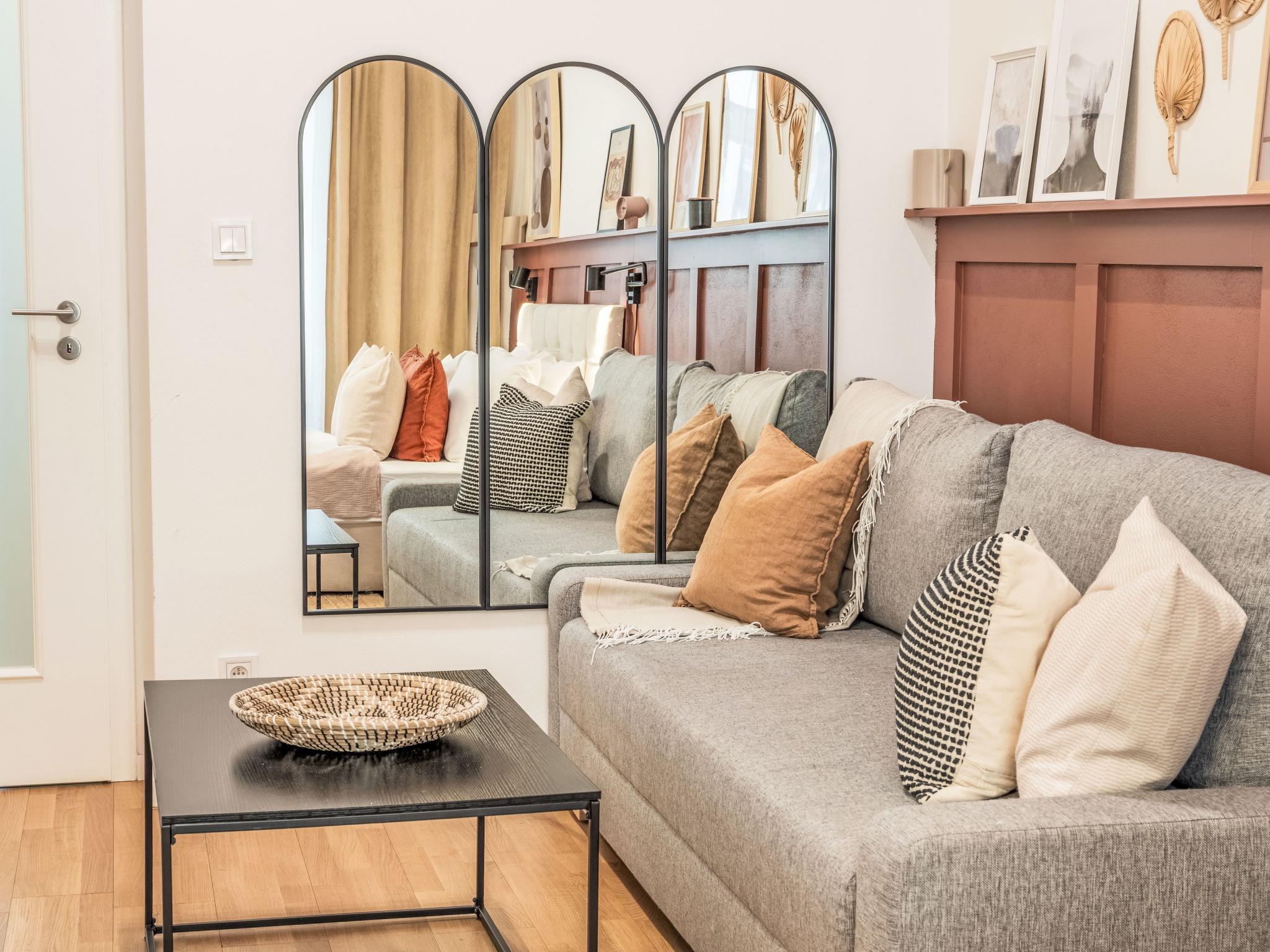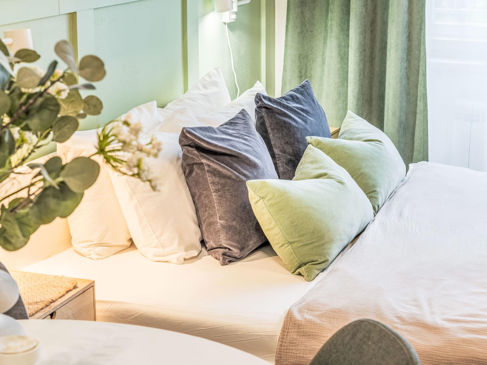 2-room apartment 50 m2 on 1st floor. Bright, fully renovated, very beautiful and modern furnishings: entrance hall. Living/dining room with 1 double sofabed, dining table and TV. 1 room with 1 double sofabed and 1 double bed. Kitchenette (oven, 2 induction hot plates, toaster, kettle, microwave, freezer, electric coffee machine). Shower/WC. Facilities: washing machine, baby cot, hair dryer. Internet (WiFi, free). Please note: suitable for families apartment courtyard side. Non-smokers only. Maximum 1 pet/ dog allowed. Smoke alarm, fire extinguisher.