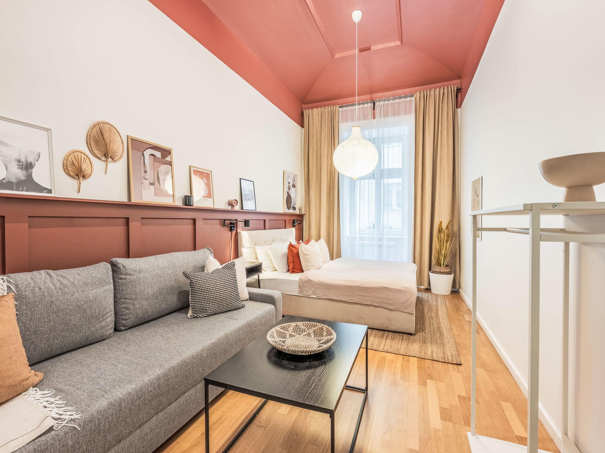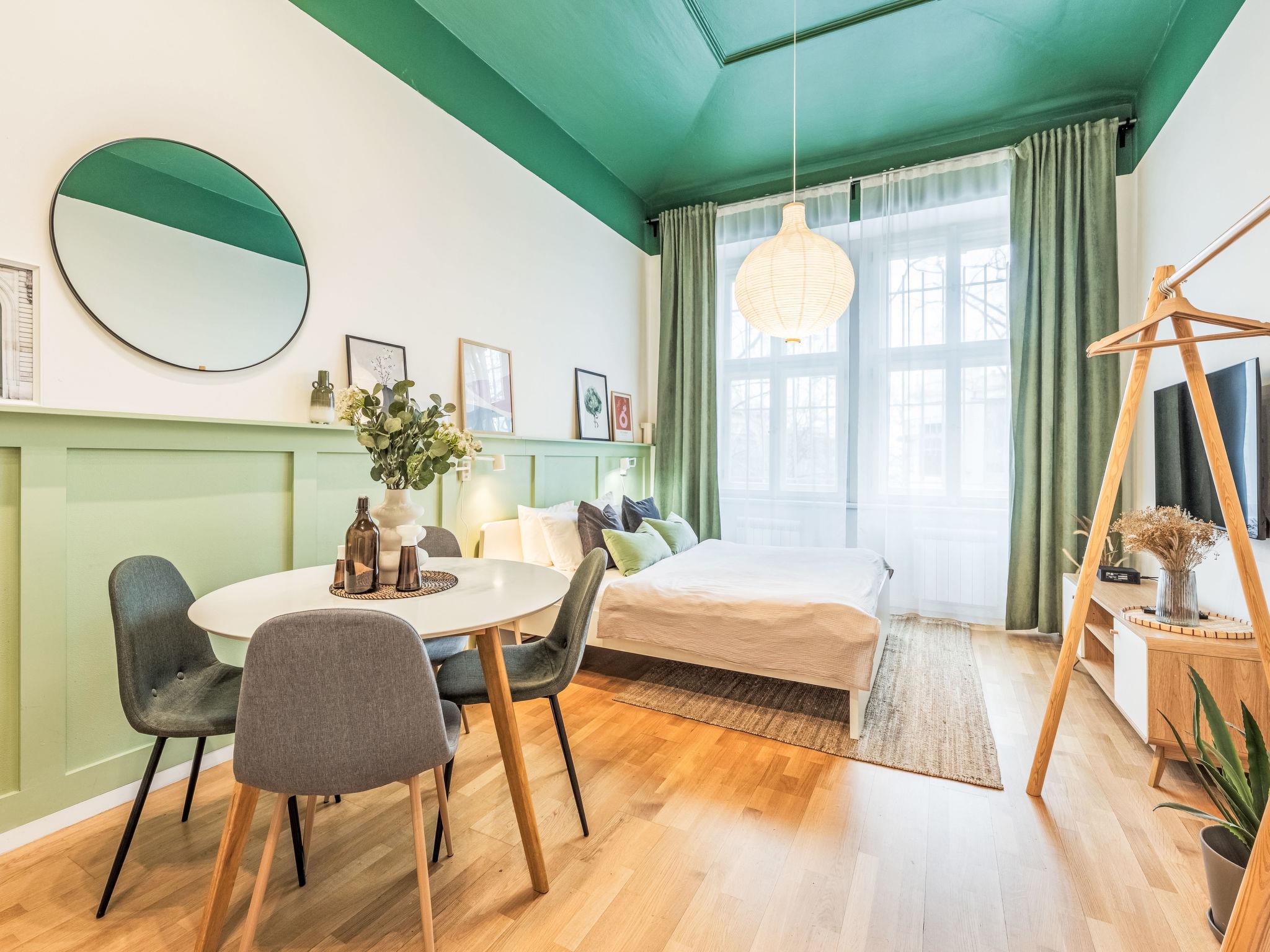 Very beautiful, historical residence "Celakovsky", 6 storeys. In the centre of Praha, in a central, busy position, 1.8 km from the river. In the house: lift, central heating system. Linen change (suppl. charge extra). Towel change (suppl. charge extra). Room cleaning on request (extra). Public parking extra. Shop, grocery, supermarket, shopping centre, restaurant, bar, café, pedestrian zone 200 m, tram "Muzeum" 300 m, bus stop "Praha, ÚAN Florenc" 1.7 km, railway station "Praha, hlavní nádraží" 350 m, underground station "Muzeum" 150 m, park "Riegerovy sady" 700 m, indoor swimming pool 1 km. Tennis 2.4 km, indoor tennis centre 2.4 km, minigolf 1 km, sports centre 1.5 km, children's playground 600 m. Nearby attractions: Václavské námestí 200 m, Karluv most 2 km, Staromestské námestí, Orloj 1500 km, Pražský hrad, Petrínská rozhledna 3 km, Zoo 7 km, Vyšehrad 3 m, Karlštejn 30 km, Krivoklát 50 km. Well-known lakes can easily be reached: vodní nádrž Džbán 10 km, Hostivarská prehrada 13 km, Velká Amerika 33 km. Hiking paths: Stromovka 4 km, Prokopské údolí 9 km, Divoká Šárka 11 km.