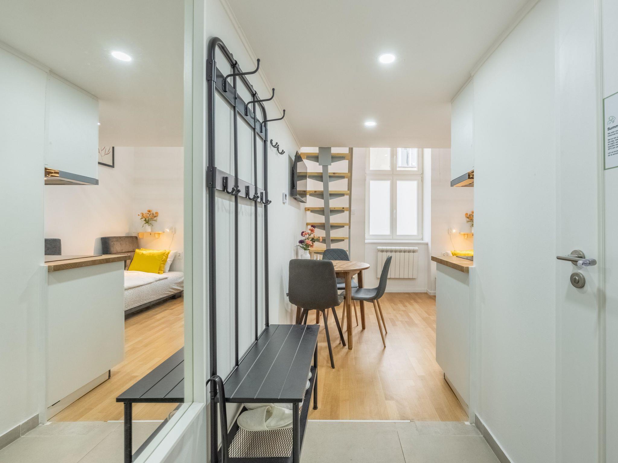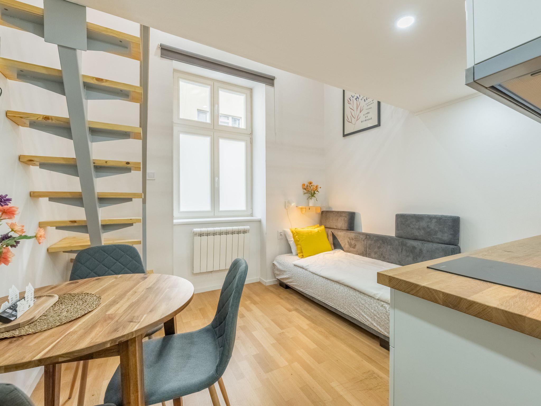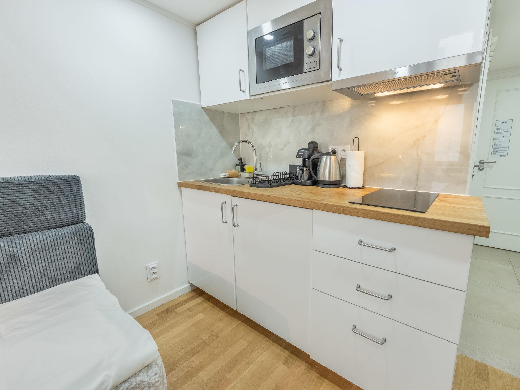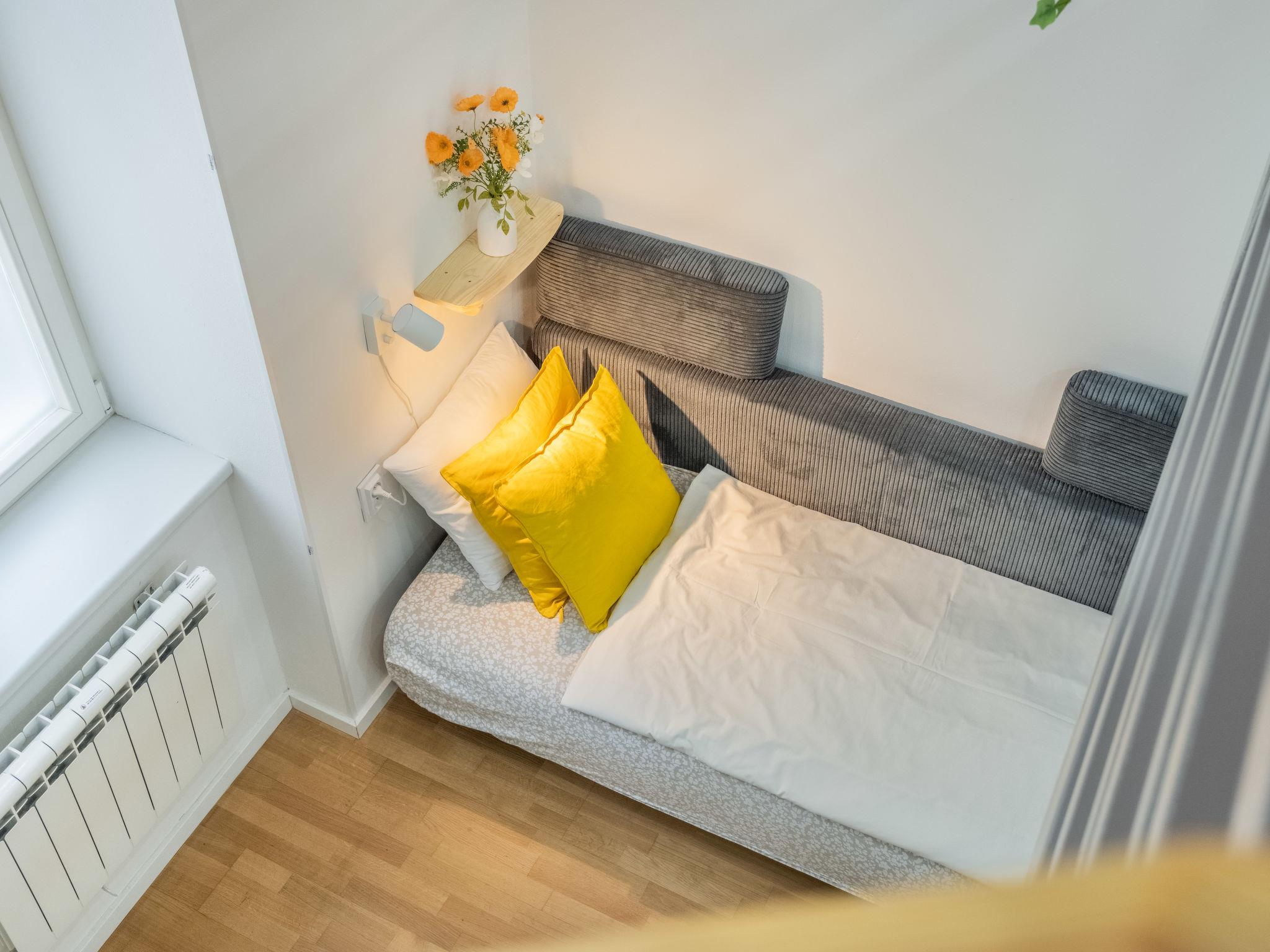 2-room apartment 30 m2 on 2nd floor. Bright, fully renovated, very beautiful and modern furnishings: entrance hall. Living/dining room with 1 double sofabed (150 cm, length 200 cm), dining table and TV. Kitchenette (2 induction hot plates, toaster, kettle, microwave, freezer, electric coffee machine). Shower/WC. Upper floor: (steep stair) open gallery with 1 double bed (180 cm, length 200 cm). Facilities: washing machine, baby cot, hair dryer. Internet (WiFi, free). Please note: suitable for families apartment courtyard side. Non-smokers only. Maximum 1 pet/ dog allowed. Smoke alarm, fire extinguisher.
