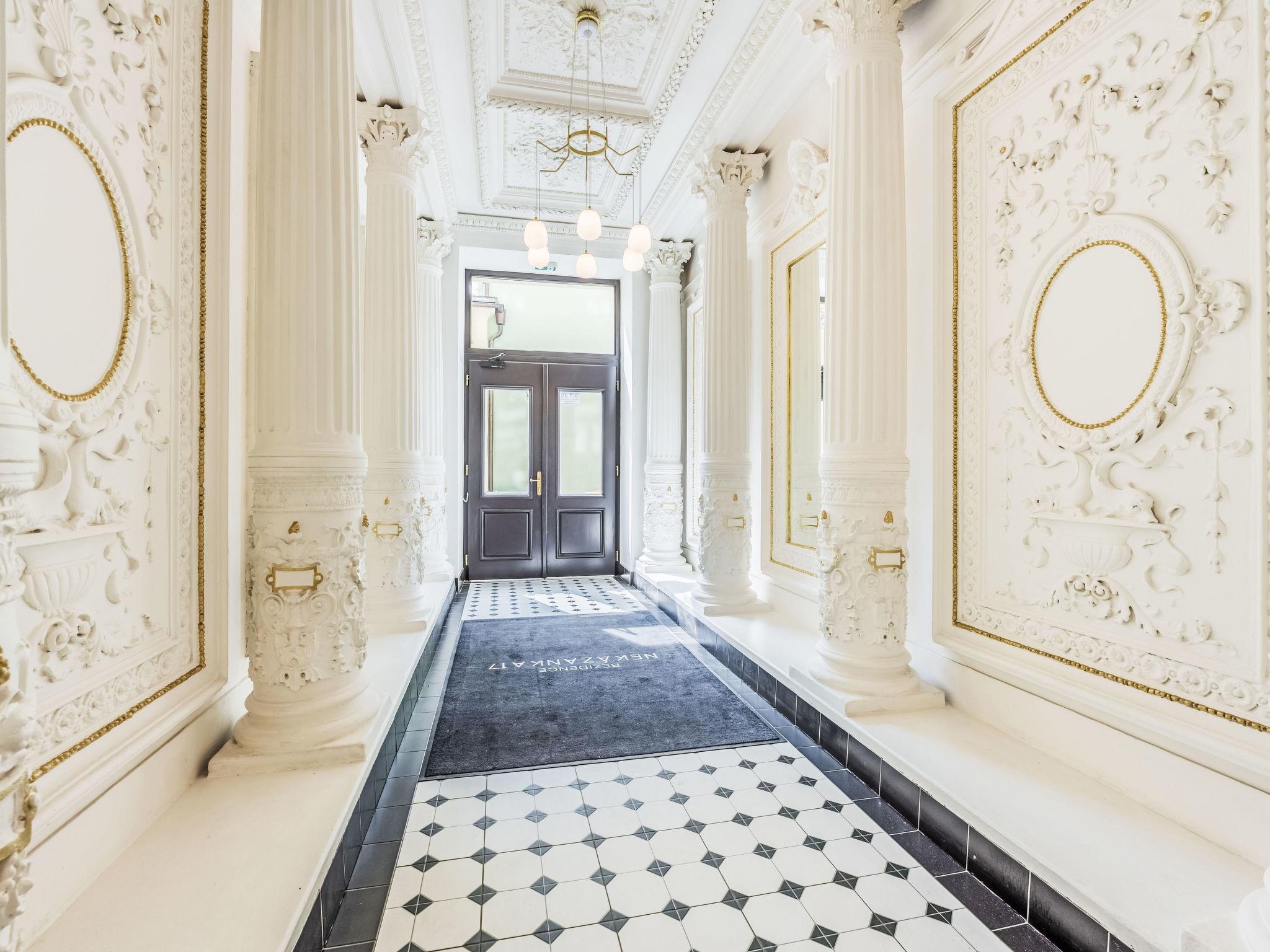 Very beautiful, historical residence "Nekazanka", 5 storeys. In the centre of Praha, in a central, busy position, 1.4 km from the river. In the house: lift, central heating system. Linen change (suppl. charge extra). Towel change (suppl. charge extra). Room cleaning on request (extra). Public parking extra. Shop, grocery, supermarket 100 m, shopping centre 500 m, restaurant, bar, café 100 m, pedestrian zone 200 m, tram "Jindrišská" 170 m, bus stop "Praha, ÚAN Florenc" 1.3 km, railway station "Praha, hlavní nádraží" 800 m, underground station "Mustek" 300 m, park "Riegerovy sady" 1.3 km, indoor swimming pool 1 km. Tennis, indoor tennis centre 700 m, minigolf 2 km, sports centre 700 m, children's playground 600 m. Nearby attractions: Václavské námestí 400 m, Orloj, Staromestské námestí 700 m, Karluv most 1600 km, Pražský hrad, Petrínská rozhledna 3 km, Zoo 7 km, Vyšehrad 3 m, Karlštejn 30 km, Krivoklát 50 km. Well-known lakes can easily be reached: vodní nádrž Džbán 10 km, Hostivarská prehrada 13 km, Velká Amerika 33 km. Hiking paths: Stromovka 4 km, Prokopské údolí 9 km, Divoká Šárka 11 km.