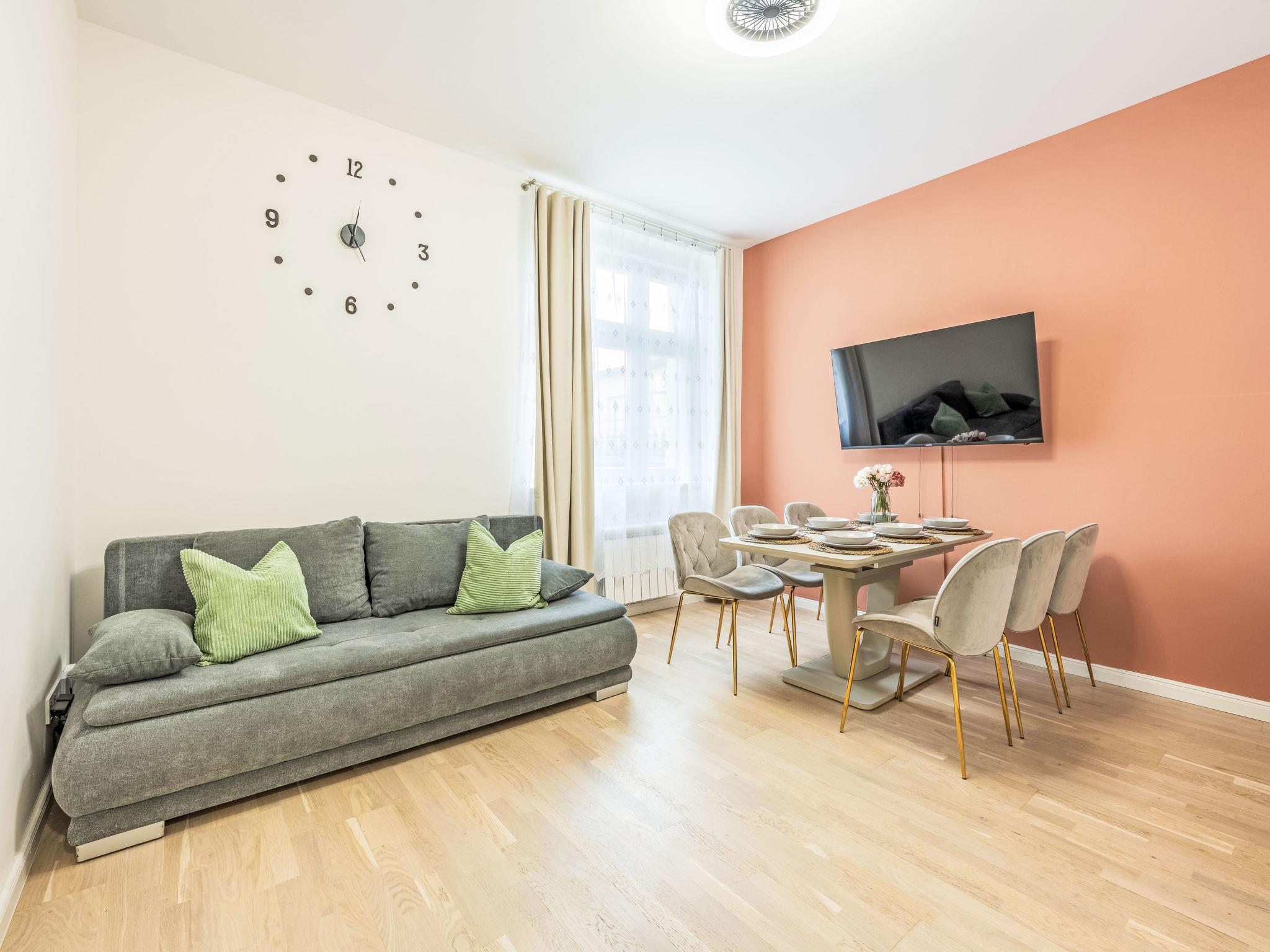2-room apartment 44 m2 on 4th floor. Bright, fully renovated, very beautiful and modern furnishings: entrance hall. Living/dining room with 1 double bed, dining table and TV. 1 room with 1 bed, 1 sofabed and 1 double bed. Kitchenette (oven, 2 induction hot plates, toaster, kettle, microwave, freezer, electric coffee machine). Shower/WC. Facilities: washing machine, baby cot, hair dryer. Internet (WiFi, free). Please note: suitable for families apartment courtyard side. Non-smokers only. Maximum 1 pet/ dog allowed. Smoke alarm.