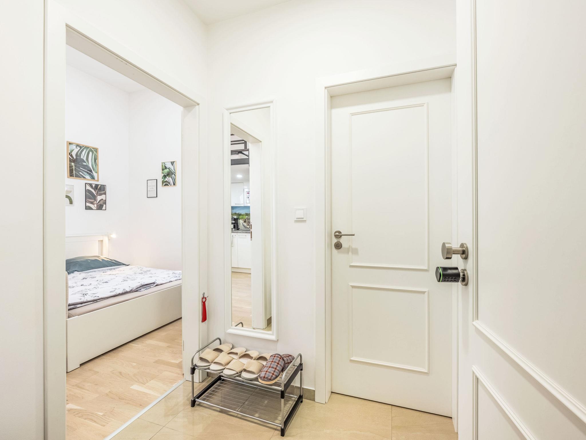 2-room apartment 32 m2 on 2nd floor. Bright, fully renovated, very beautiful and modern furnishings: entrance hall. Living/dining room with 1 sofabed, 1 double bed, dining table and TV. Open small gallery with 2 sleeping facilities. Kitchenette (2 induction hot plates, toaster, kettle, microwave, freezer, electric coffee machine). Shower/WC. Facilities: washing machine, baby cot, hair dryer. Internet (WiFi, free). Please note: suitable for families apartment courtyard side. Non-smokers only. Maximum 1 pet/ dog allowed. Smoke alarm. Instead of an enclosed bedroom, some sleeping areas are located in an open-plan area (gallery, alcove, etc.).