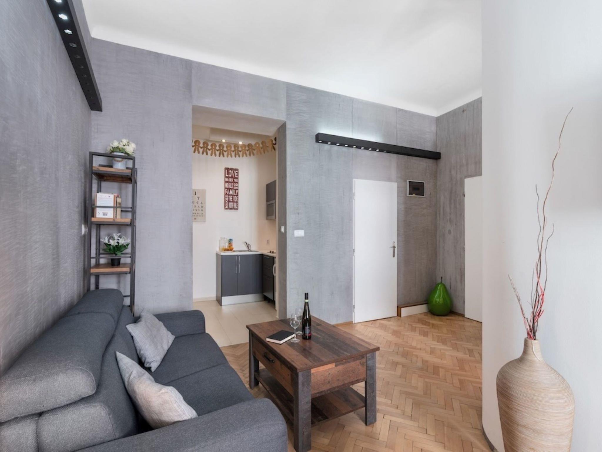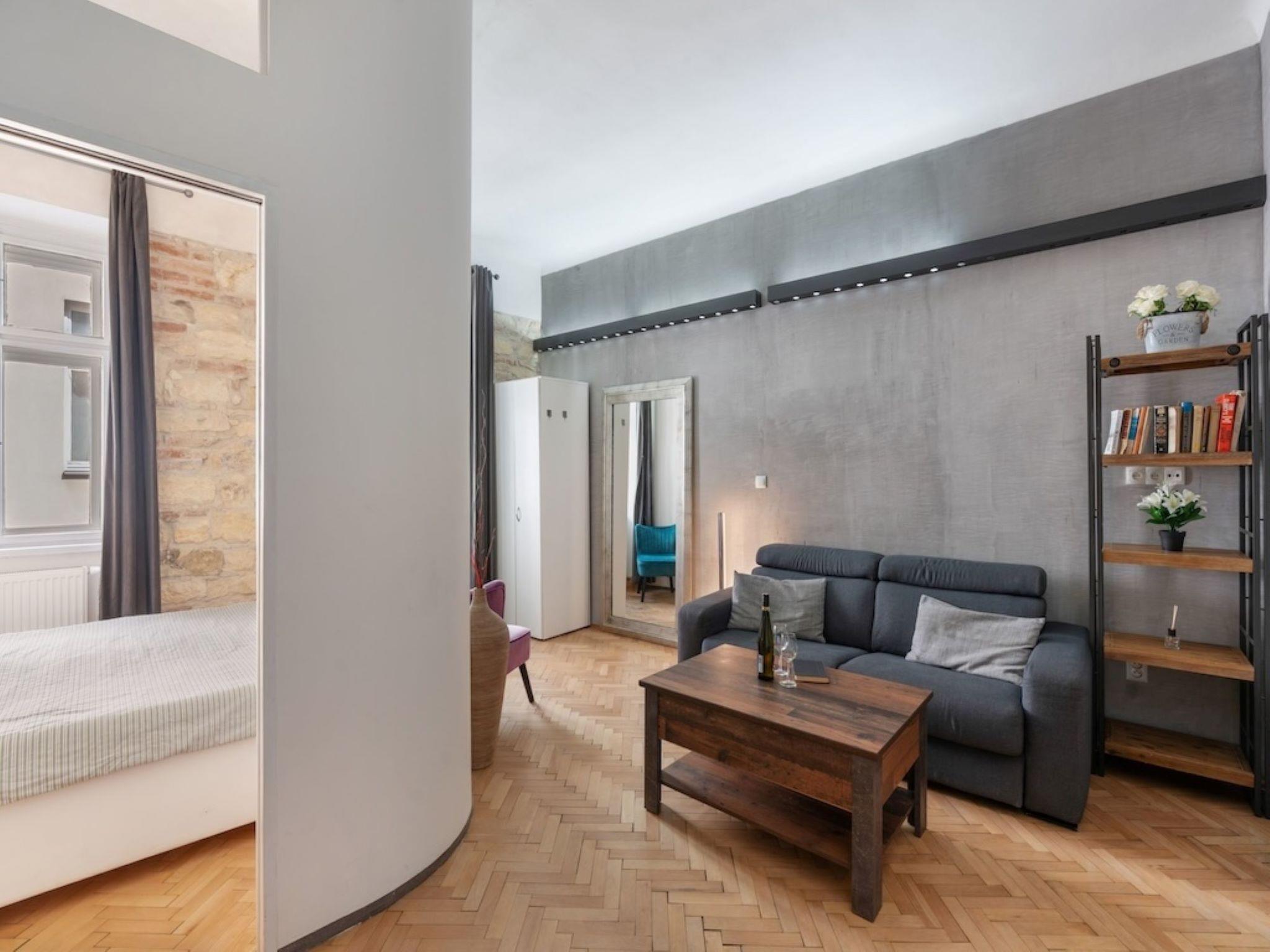 "Golden Stage Nook", 2-room apartment 35 m2 on 2nd floor. Very comfortable and beautiful furnishings: living room with TV. 1 open room with 1 double bed and TV. Kitchenette (2 ceramic glass hob hotplates, microwave, electric coffee machine) with dining table. Shower/WC. Heating, air-conditioning. Parquet floors. Facilities: Internet (WiFi, free). Please note: 1 small pet/ dog allowed. No lift.