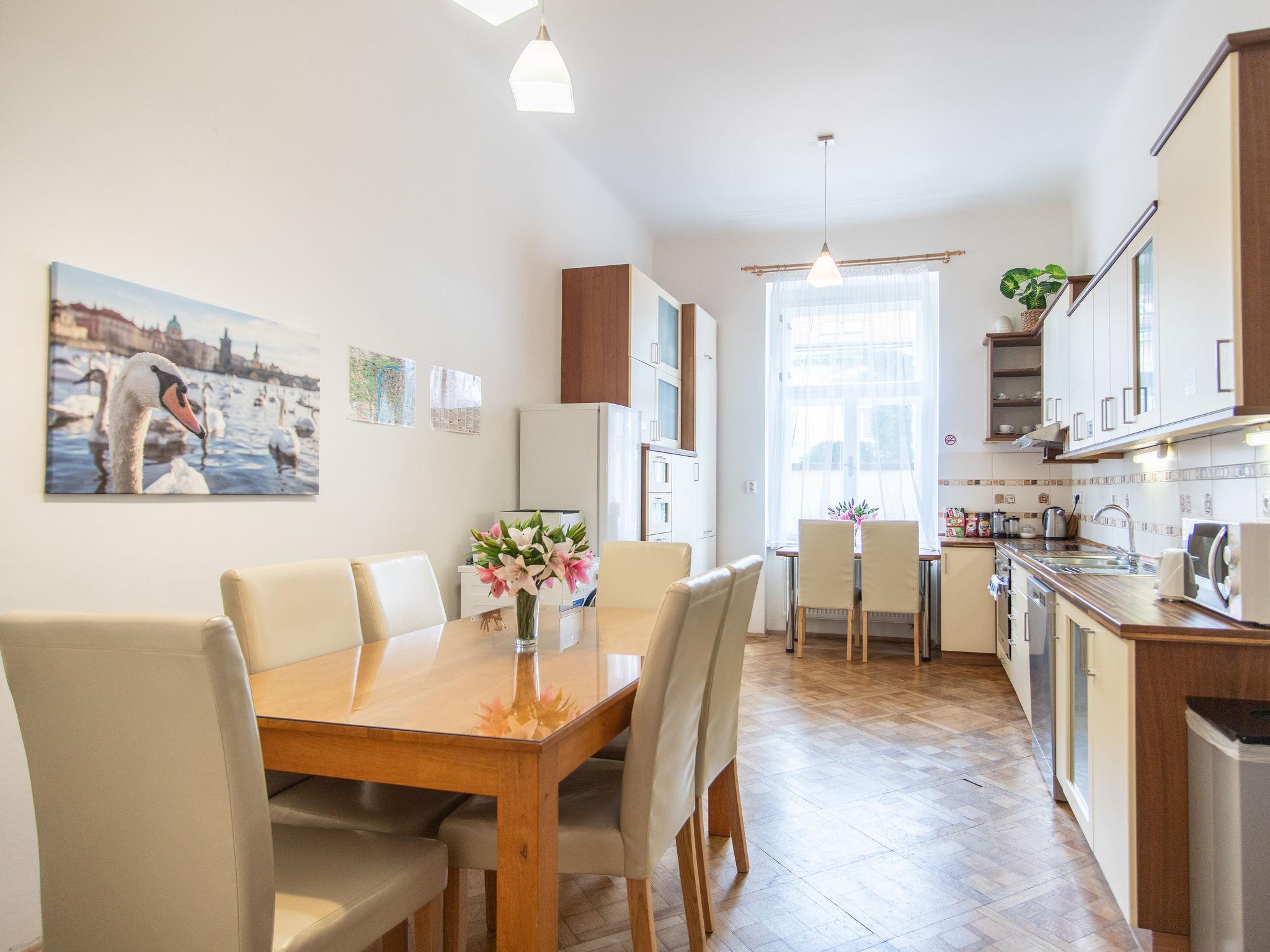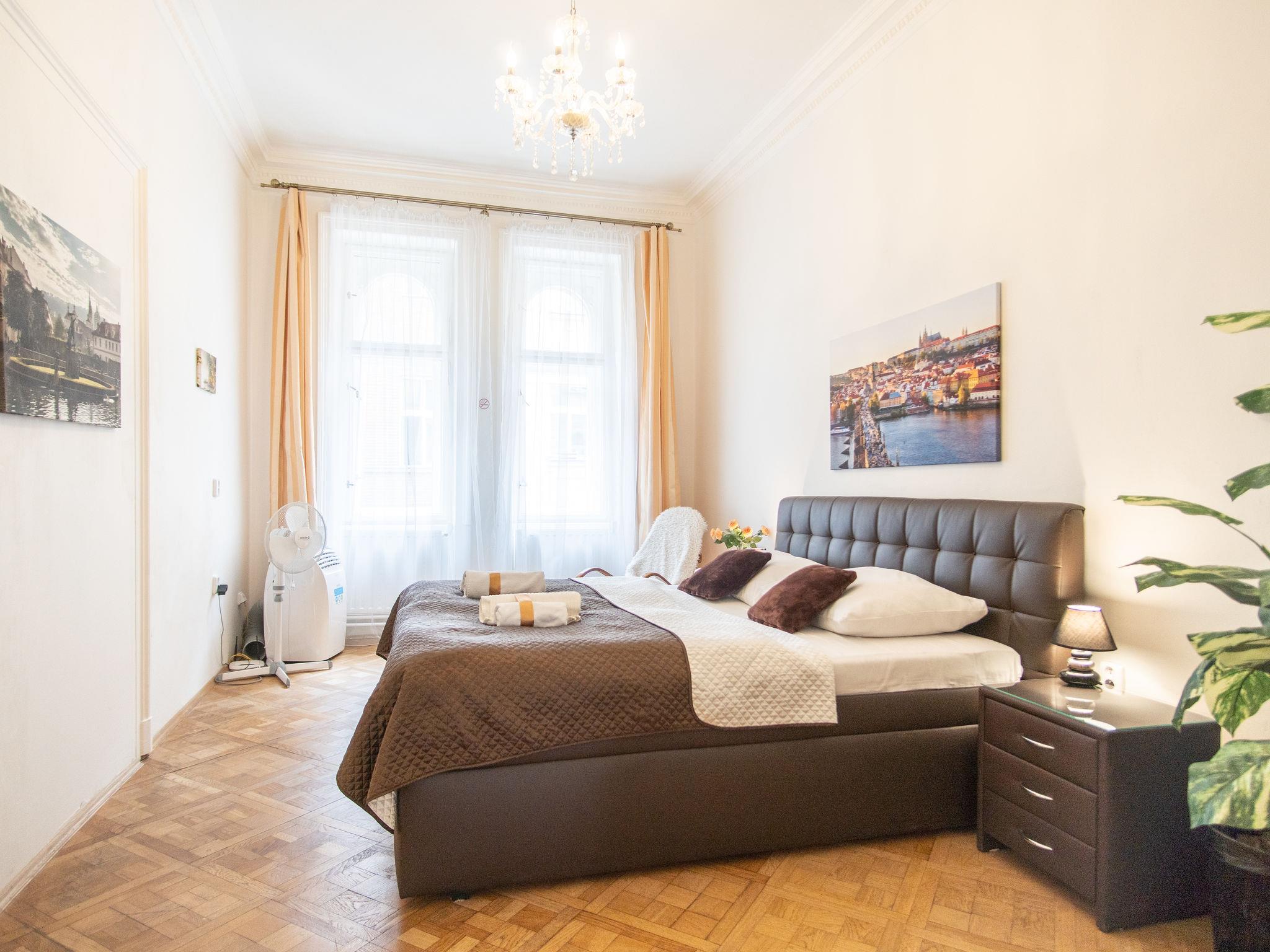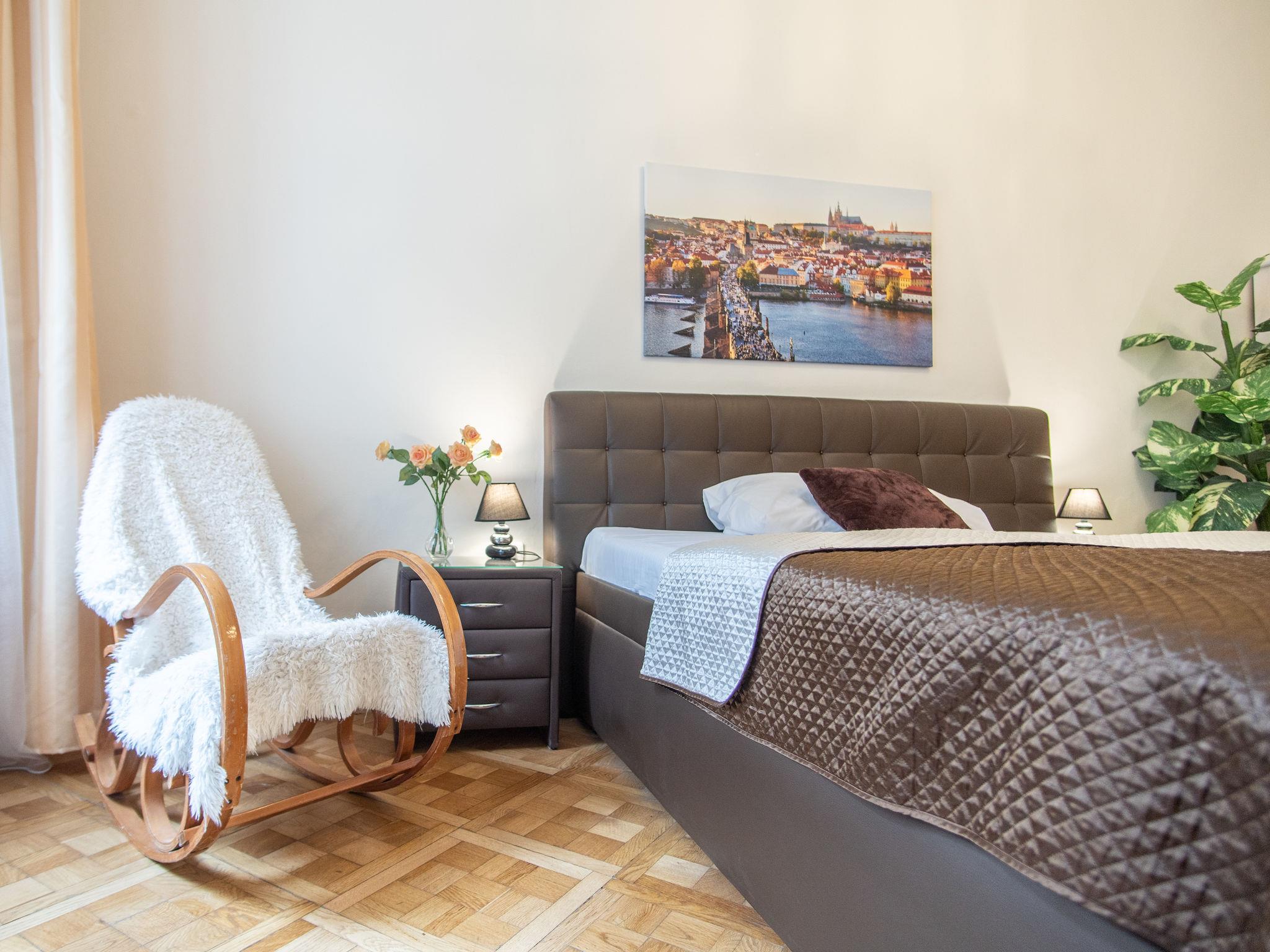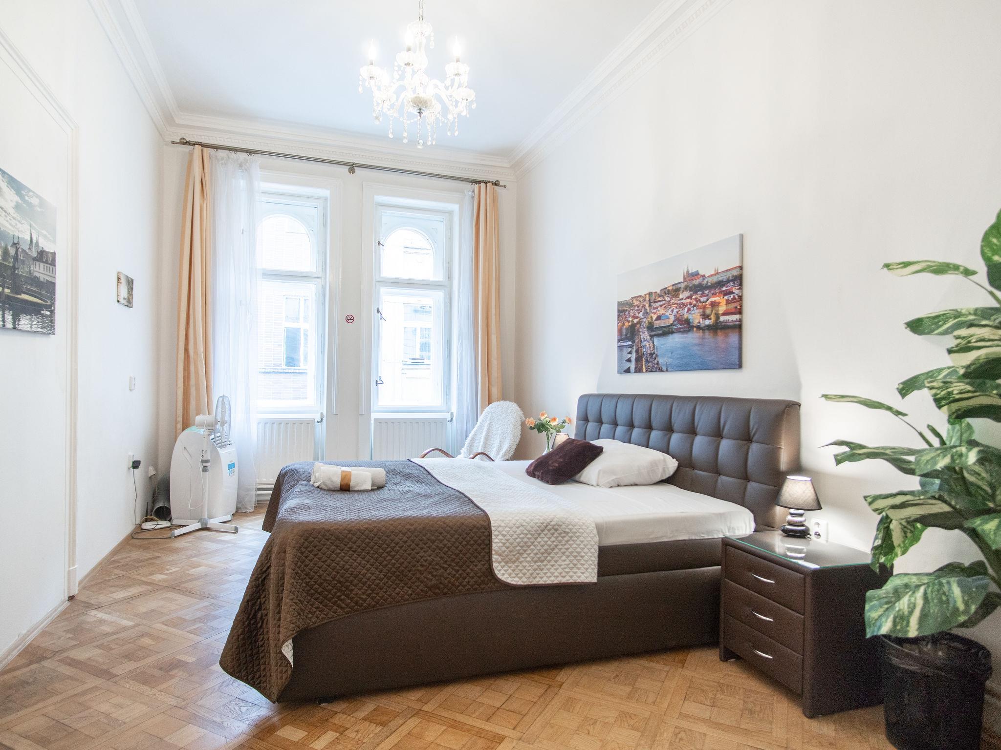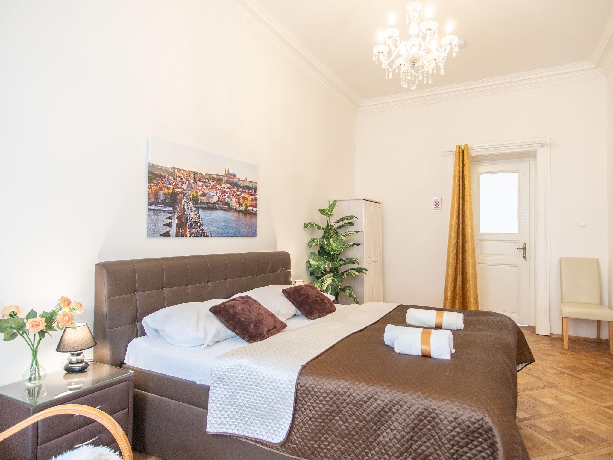 Historical apartment house, built in 1902. In the centre of Praha. Shop 100 m, supermarket 200 m, restaurant, café 100 m, tram "Václavské námestí" 400 m, bus stop "Praha - Florenc" 2 km, railway station "Praha - Hlavní nádraží" 800 m, underground station "Muzeum" 150 m. Nearby attractions: Václavské námestí, Národní muzeum 100 m, Staromestké námestí, Orloj 1 km, Betlémská kaple, Židovské mesto, Karluv most, Kampa 1.5 km, Pražský hrad, Petrín, Vyšehrad. Please note: no lift. Baby equipment on request (included).