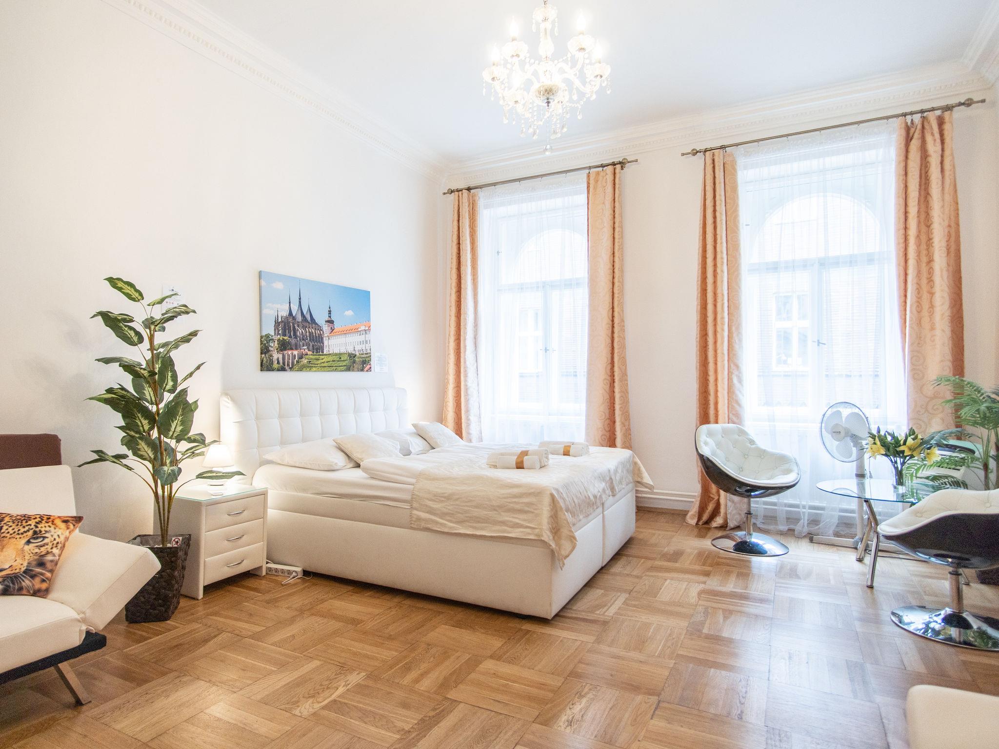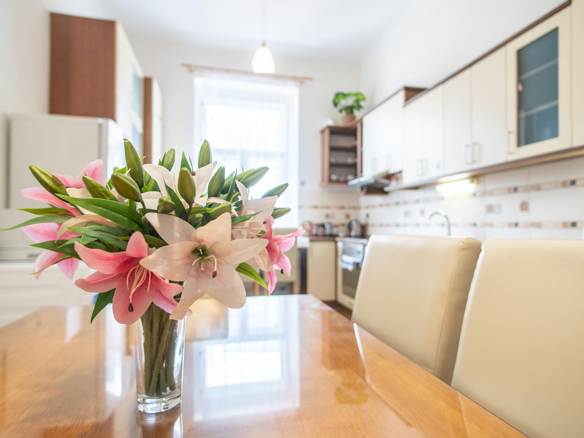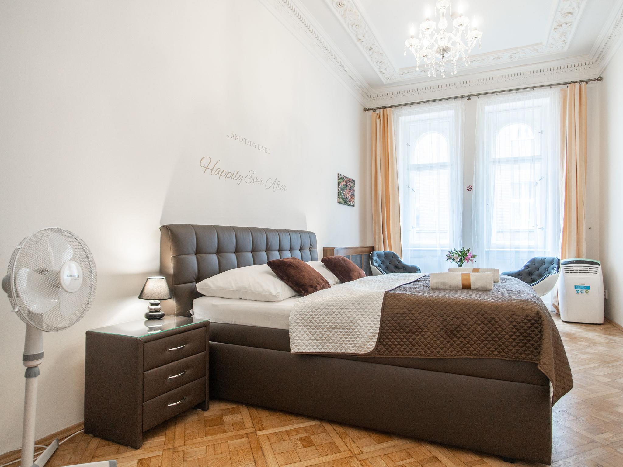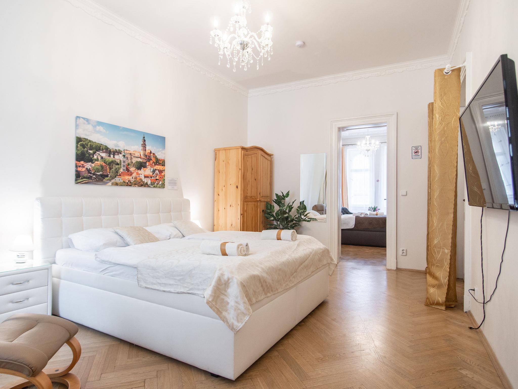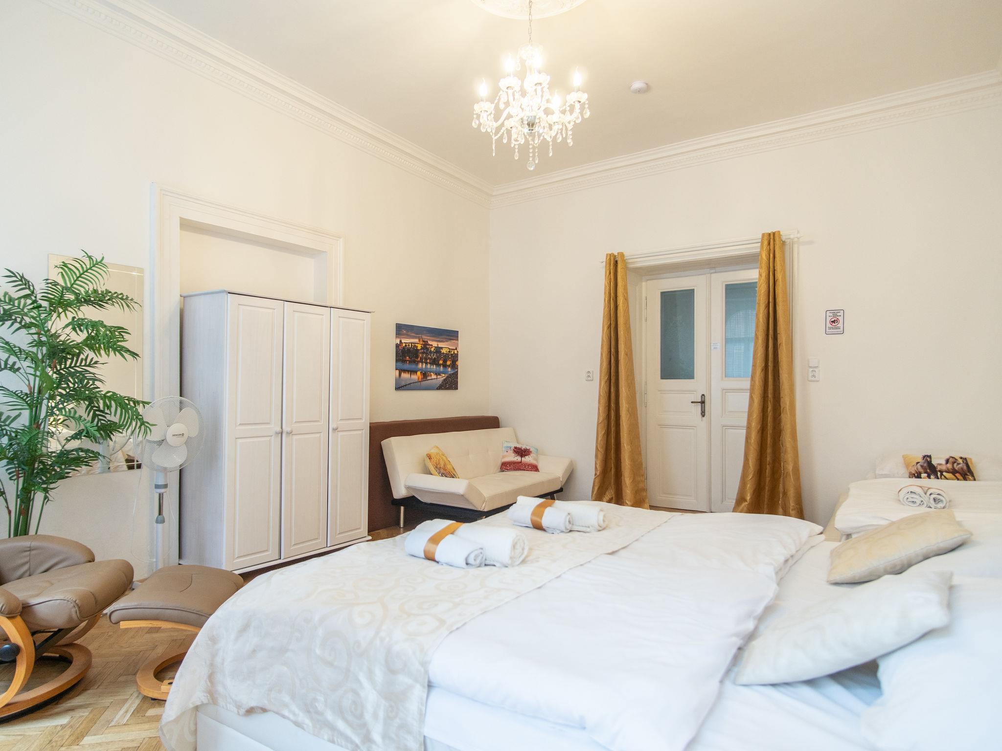 Historical apartment house, built in 1902. In the centre of Praha. Shop 100 m, supermarket 200 m, restaurant, café 100 m, tram "Václavské námestí" 400 m, bus stop "Praha - Florenc" 2 km, railway station "Praha - Hlavní nádraží" 800 m, underground station "Muzeum" 150 m. Nearby attractions: Václavské námestí, Národní muzeum 100 m, Staromestké námestí, Orloj 1 km, Betlémská kaple, Židovské mesto, Karluv most, Kampa 1.5 km, Pražský hrad, Petrín, Vyšehrad. Please note: no lift. Baby equipment on request (included).