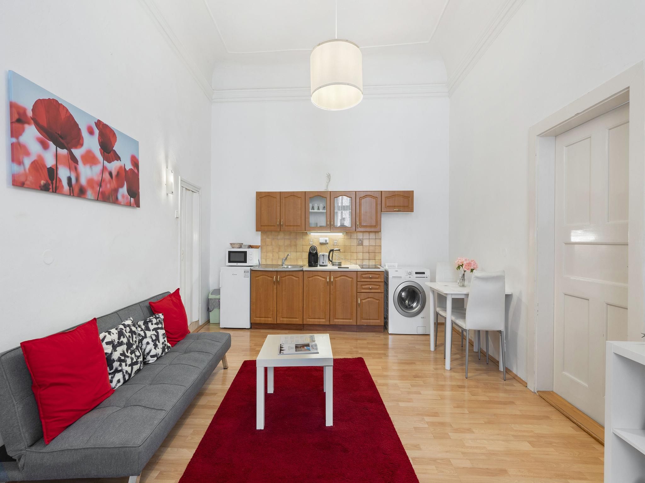 Historical apartment block "Old Town home". In the centre of Praha, in a central position, in the heart of the city, 700 m from the river. In the house: reception, laundry. Airport transfer (extra). Public parking on the road extra. Shop 100 m, grocery 200 m, supermarket 400 m, shopping centre, restaurant 50 m, bar, bakery 150 m, café, pedestrian zone 10 m, pub garden 50 m, tram "Námestí Republiky" 500 m, bus stop "Praha, ÚAN Florenc" 1.5 km, railway station "Praha hlavní nádraží" 1.4 km, underground station "Námestí Republiky, Staromestská" 500 m. Nearby attractions: Staré Mesto/Old Town, Orloj/Astro. Clock 100 m, Karluv most/Charles Bridge 700 m, Pražský hrad/Prague Castle 1.5 km, Josefov/Jewish Town 500 m, Narodní divadlo/National Theatre 1.2 km, Václavské námestí/Wenceslas Square 600 m. Please note: no lift. Reception open 14:00-21:00 hrs. On request: airport transfer to the holiday accommodation. Please note: Loading and unloading of baggage is possible at the holiday house.