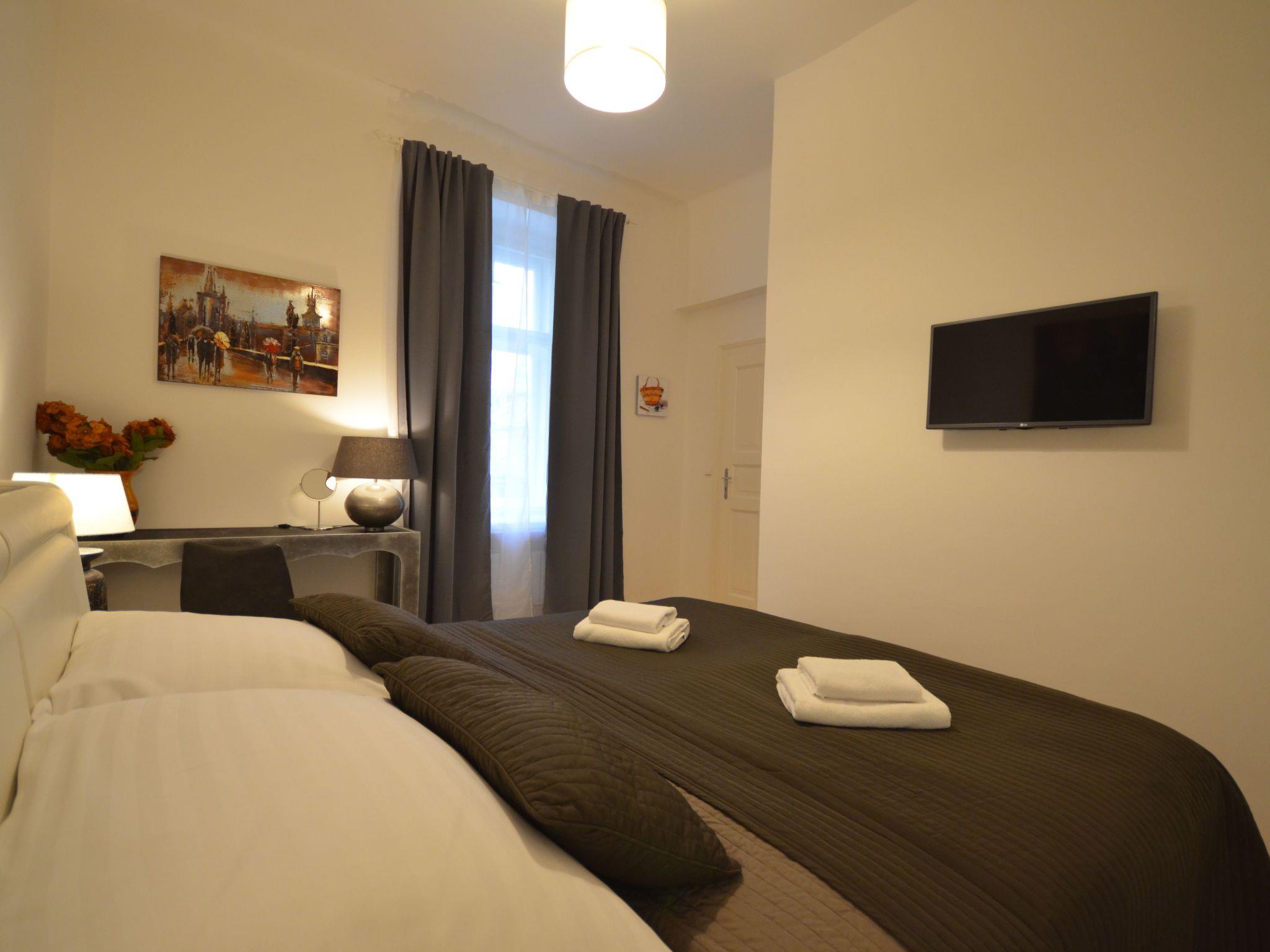 This spacious flat combines contemporary chic at its best with top-of-the-range furnishings. It features elegant decor, warm furnishings and all the modern amenities you need for a comfortable and welcoming stay in the heart of Prague. You can also enjoy breakfast at the charming bakery nearby. The city centre is within easy walking distance, but thanks to its central location, the area is very well served by public transport, allowing you to reach all parts of Prague quickly and easily. Apartment Collection Hastalska is located on the first floor of a building with lift. Flat description: one bedroom, living room, dining area, kitchen, bathroom with walk-in shower, toilet and washbasin. Sleeping accommodation: a king-size bed and a sofa bed (180 cm x 200 cm) in the living room. Highlights: portable air conditioning, free Wi-Fi, large Smart TV, Blu-ray library, Bluetooth speaker for iPod and MP3 players, Italian espresso machine, hairdryer, washing machine, tumble dryer and ironing facilities. Medical and hypoallergenic mattresses, double-sided oval make-up mirrors and in-room TV. Available: coffee beans and toppings, Pickwick teas (black, green and a wide selection of flavoured teas), sugar, salt, pepper, chilli, a selection of premium spices, olive oil, balsamic vinegar, shower gel, soap, washing machine and dishwasher capsules.