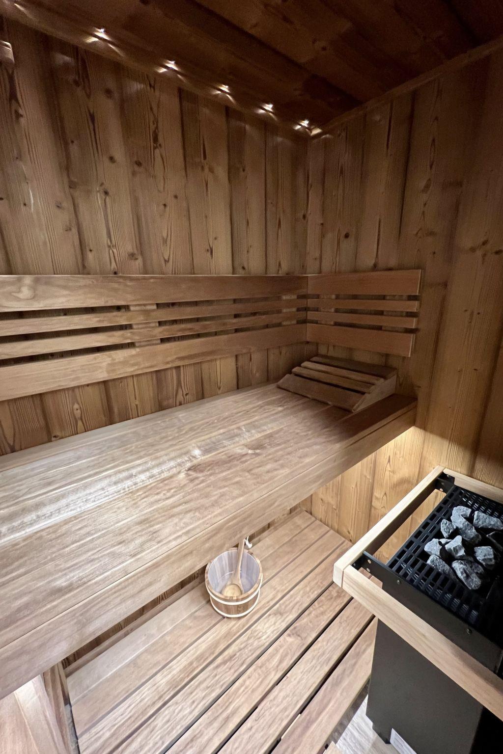 "Rícky E35 & Sauna", 2-room bungalow 66 m2. Object suitable for 2 adults + 2 children. Luxurious furnishings: living room with TV (flat screen). Exit to the garden, to the terrace. 1 room with 1 x 2 bunk beds, 1 double bed. Kitchenette (oven, dishwasher, 2 ceramic glass hob hotplates, microwave, electric coffee machine) with dining table. Shower, sep. WC. Terrace. Terrace furniture. View of the countryside. Facilities: sauna. Internet (WiFi, free). Please note: suitable for families. Non-smokers only. Smart TV with Czech programs available, including access to YouTube and the option to log in to NETFLIX.