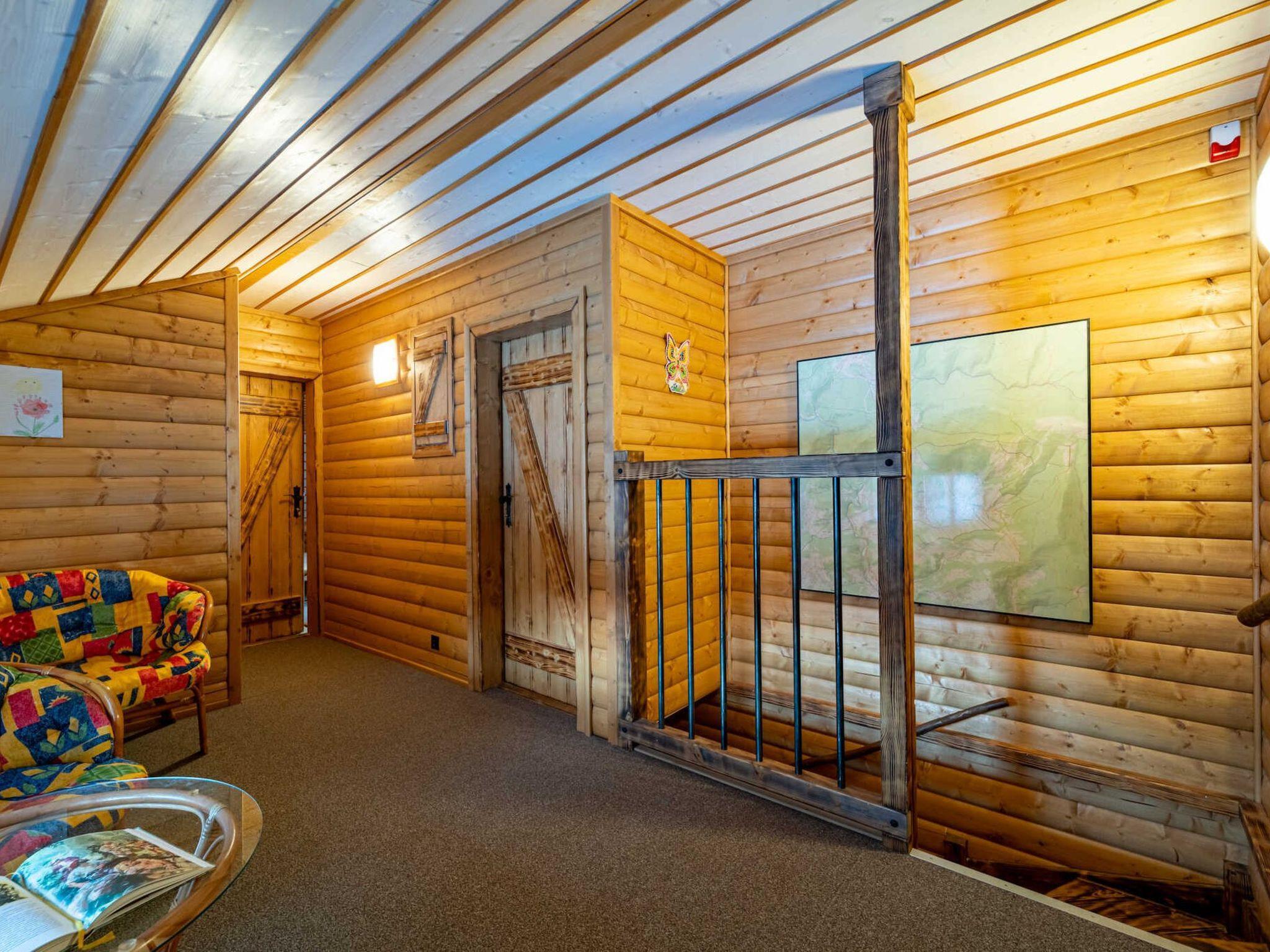 8-room chalet on 2 levels. Very beautiful and luxurious furnishings: 2 rooms, each room with 2 x 2 bunk beds, 1 double bed, shower/WC and TV. Playroom. Kitchen-/living room (dishwasher, 4 ceramic glass hob hotplates, kettle, microwave) with dining table and TV. Sauna. Upper floor: 3 rooms, each room with 4 beds, dining table, kitchen corner, shower/WC and TV. Large living room with TV. Large garden. Barbecue, sitting area. Beautiful view of the countryside. Facilities: children's high chair, baby cot. Internet (WiFi, free). Please note: non-smoking house. Maximum 1 pet/ dog allowed. Fire extinguisher. Beer tap available. 55