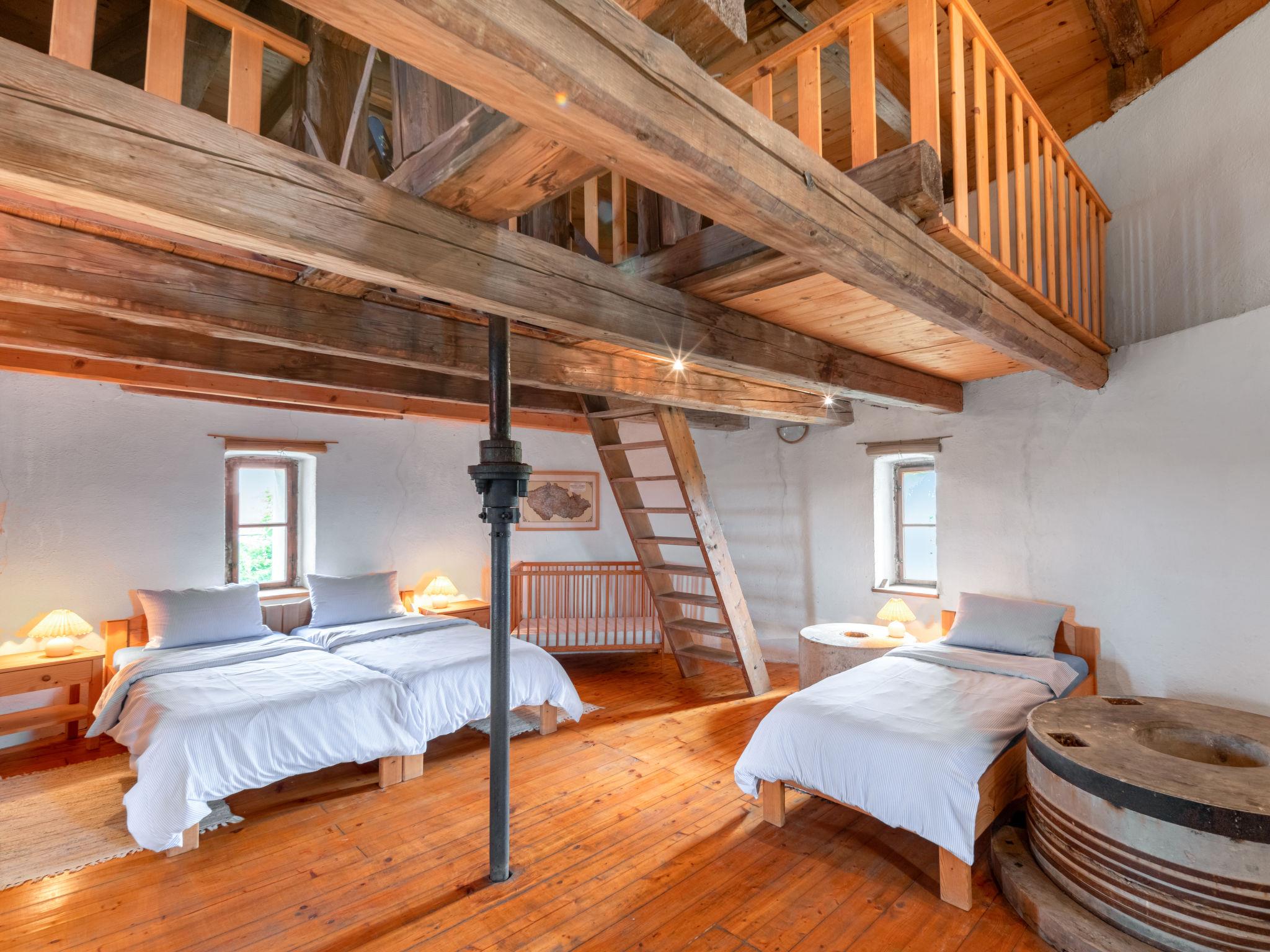 Unique windmill located in the heart of the Drahanska hills. Windmill "Ruprechtovský mlýn", built in 1873, renovated in 1994, surrounded by meadows and fields. On the outskirts, in a secluded, quiet, sunny position on top of a hill, 300 m from the edge of the forest, in the countryside. Private: garden 500 m2 with lawn, meadow 7'990 m2. Patio, barbecue. In the house: WiFi. Motor access to the house. Parking on the premises. Grocery 400 m, restaurant 500 m, bus stop 300 m, railway station 16 km, outdoor swimming pool 900 m, indoor swimming pool 16 km. Tennis 16 km. Nearby attractions: Pumptrack Ruprechtov 700 m, Jedovnice u Olšovce 9 km, Rudice 12 km, Lom Šošuvka, Hanácký statek/Vyškov 15 km, Aquapark Vyškov 15 km, Zoopark Vyškov, Dinopark Vyškov 15 km.