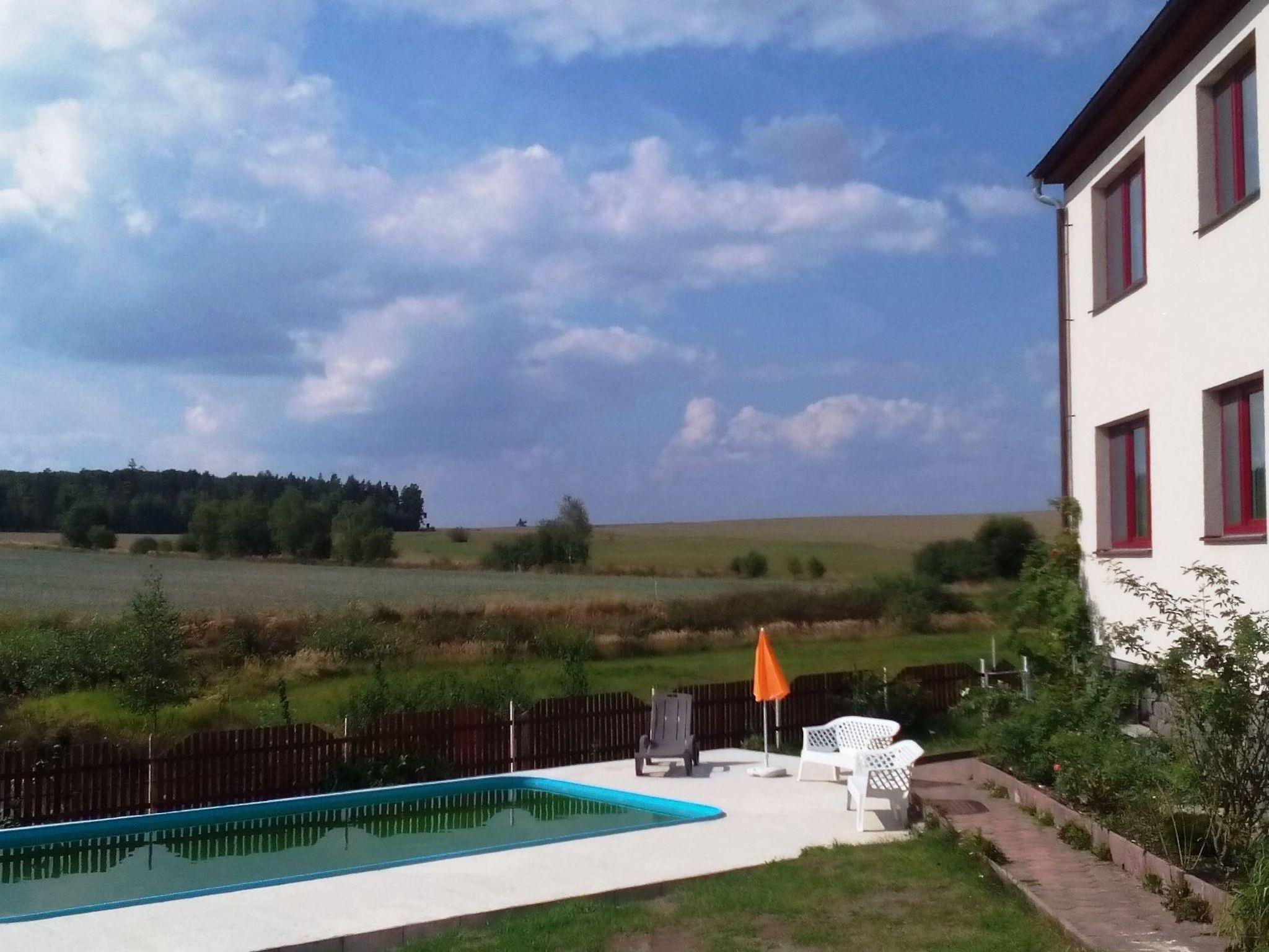 Cosy villa "Filip", 2 storeys, detached, built in 1990. On the outskirts Dudov, 1.5 km from the centre of Skrýchov u Malšic, in a quiet, sunny position, 500 m from the edge of the forest. Private: property (fenced), garden, swimming pool (8 x 4 m, seasonal availability: 01.Jun. - 30.Sep.) with salt water. Garden furniture, barbecue, fireplace. In the complex: table tennis, central heating system. Parking (for 6 cars) on the premises. Shop 5 km, shopping centre 12 km, restaurant 5 km, bus stop "Skrýchov u Malšic, Dudov" 300 m, railway station "Trebelice" 2 km, outdoor swimming pool 15 km, public bathing area 1 km. Golf course (18 hole) 3 km, riding stable 5 km. Nearby attractions: Cernická obora 4 km, Zámek Cernice 6 km, Hrad Dobronice 8 km, Bechyne 14 km, Tábor, Borkovická blata, Židova strouha 15 km, Chýnovská jeskyne, Zámek Cervená Lhota 30 km, Zámek/ZOO Hluboká nad Vltavou 40 km.