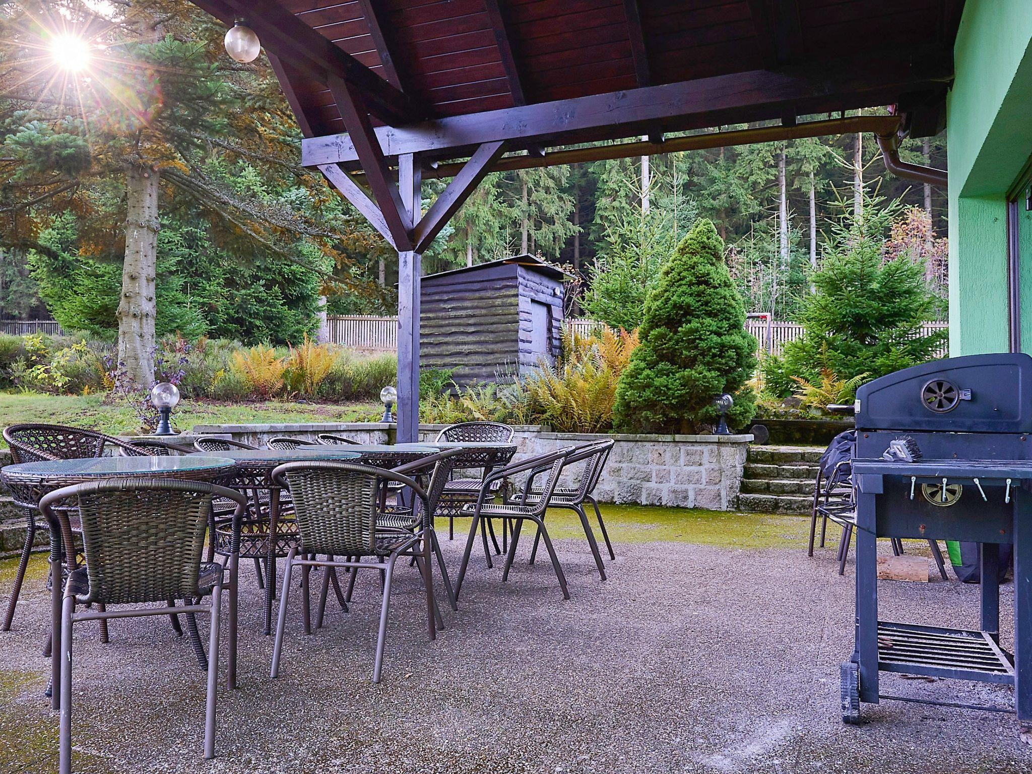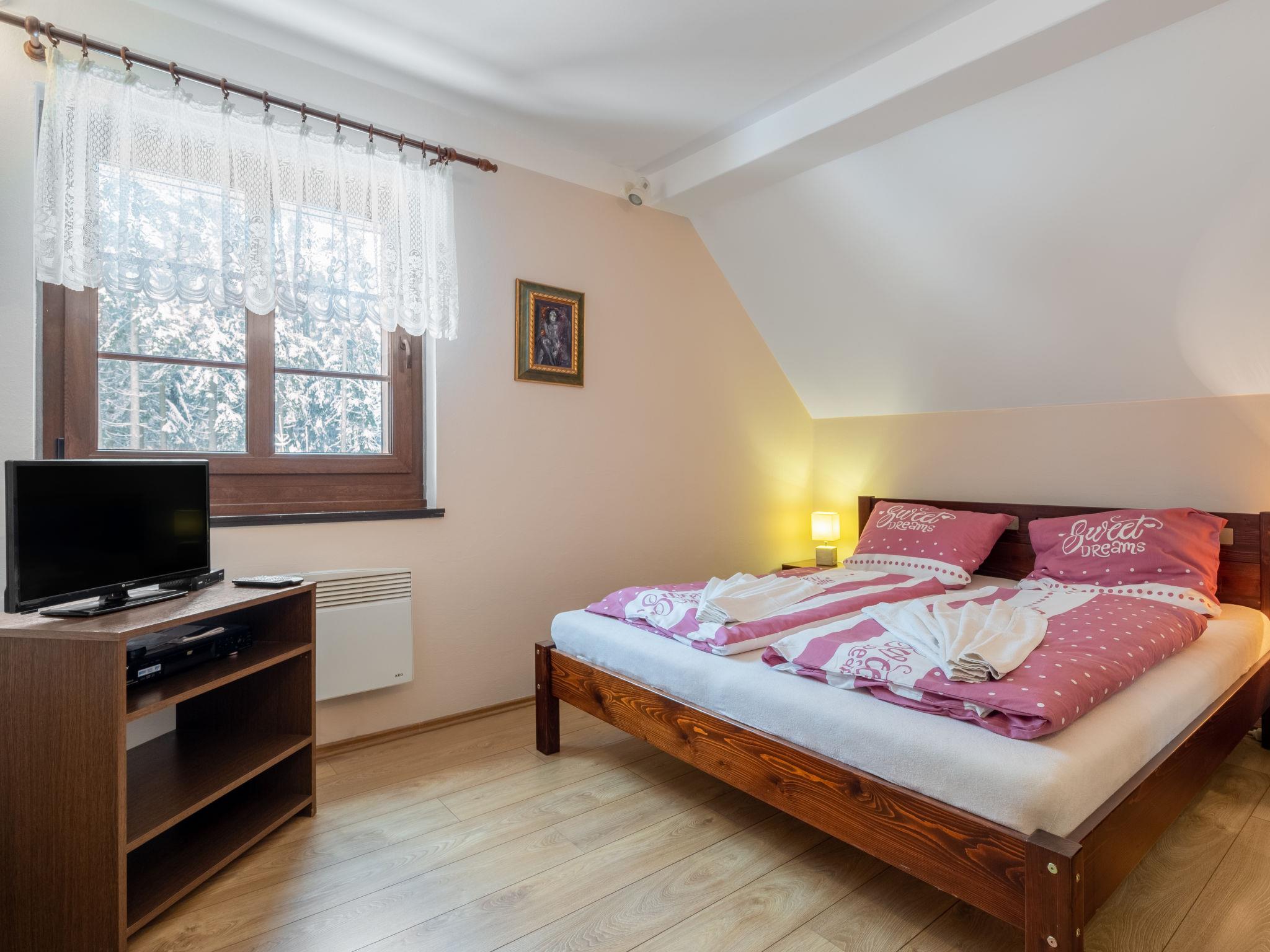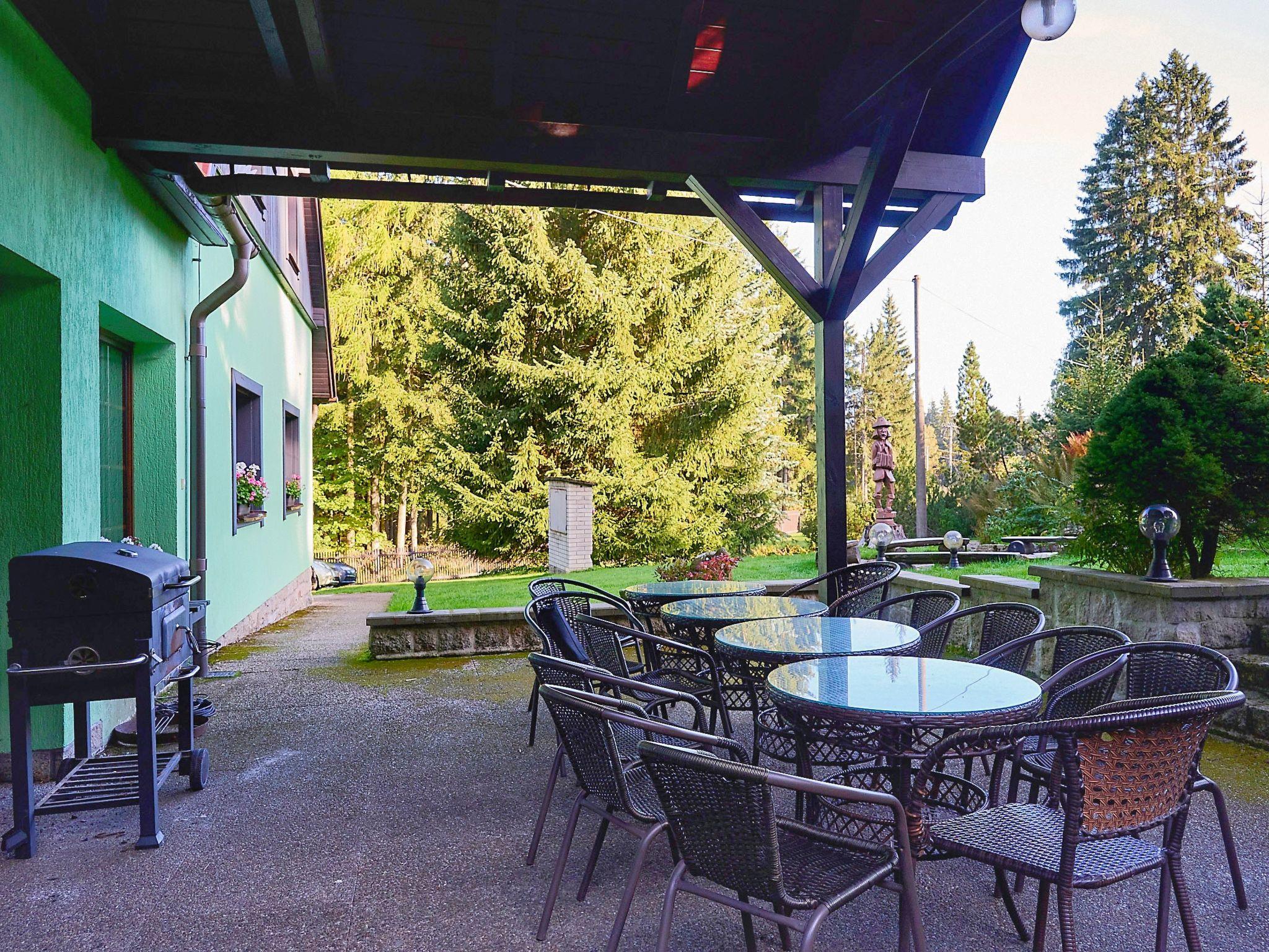 Very beautiful single-family house "Jelení kout", 2 storeys, detached, built in 1994, renovated in 2000, surrounded by trees. Outside the resort, traffic calmed area, along the wooded area, 1.5 km from the skiing area, in a cul-de-sac. Private: property 2'500 m2 (fenced), garden, indoor pool heated, with privacy (4 x 7 m, seasonal availability: 01.Jan. - 31.Dec.). Terrace, garden furniture, barbecue, fireplace, children's playground (swing, sandbox). In the house: WiFi, sauna (extra). Trampoline, washing machine. In Winter: please take snow chains. Parking (for 6 cars) on the premises. Shop 2.5 km, grocery 2.5 km, shopping centre 20 km, restaurant 2.5 km, café 3 km, bus stop "Smržovka, sánkarská dráha" 1.5 km, railway station "Smržovka stred" 2 km, outdoor swimming pool 7 km, indoor swimming pool 20 km. Golf course (18 hole) 17 km, tennis 4 km, riding stable 2 km, cycle lane 100 m, ski lift 2 km, slopes 2 km, ski rental 2 km, ski school 2 km, sled run 300 m, cross country ski track, children's playground 3 km. Nearby attractions: Rozhledna Cerná Studnice 2 km, Muzeum obrnené techniky Smržovka 2 km, Kittelovo muzeum v Krásné 5 km, Vodopády v Jedlové 17 km, Zoo Liberec, Aquapark Babylon 20 km, Bozkovské jeskyne 24 km. Well-known ski regions can easily be reached: Filip Smržovka 2 km, Tanvaldský Špicák 8 km, Ski areál Severák, Bedrichov, Harrachov. Hiking paths: Hrebenovka. Please note: baby equipment. Sauna and pool heating to be paid on the spot (according to electricity use).