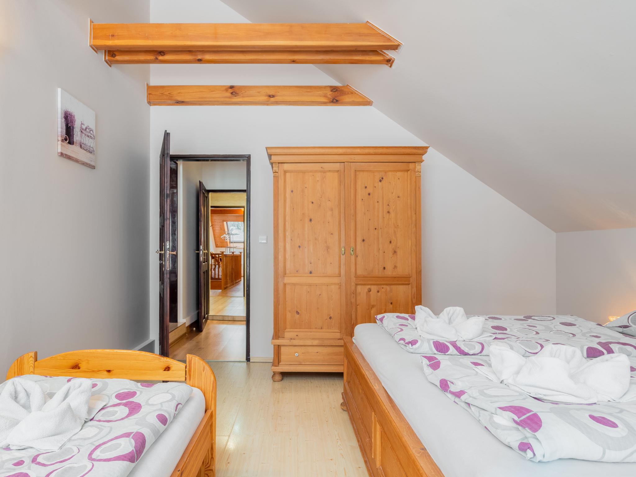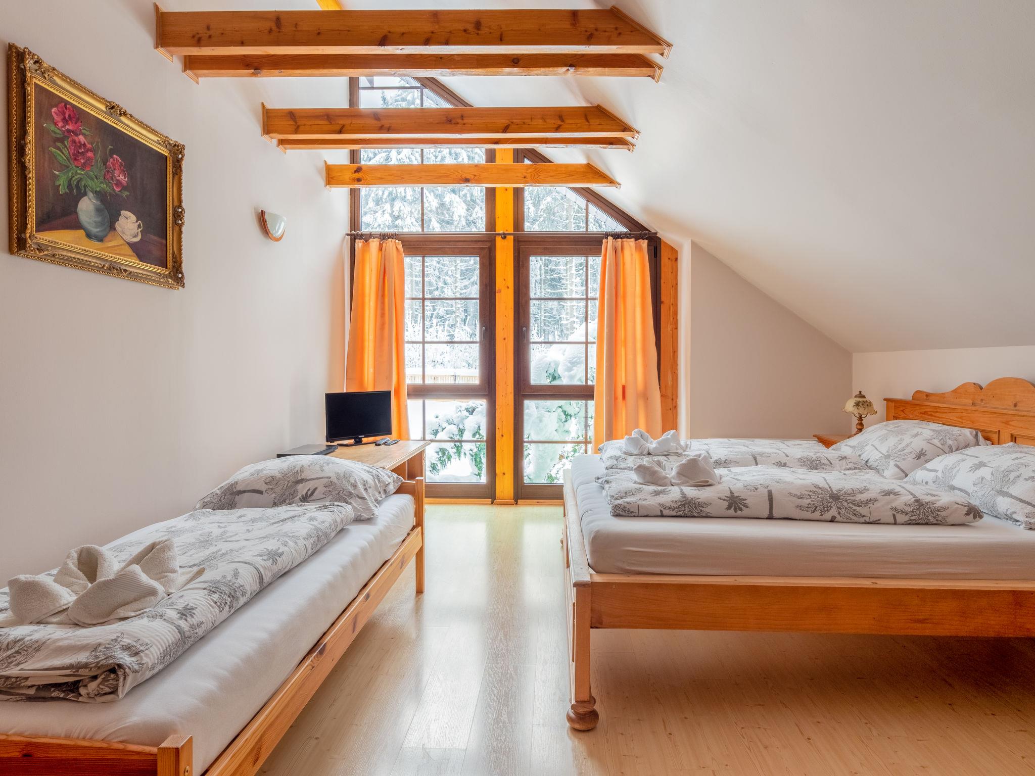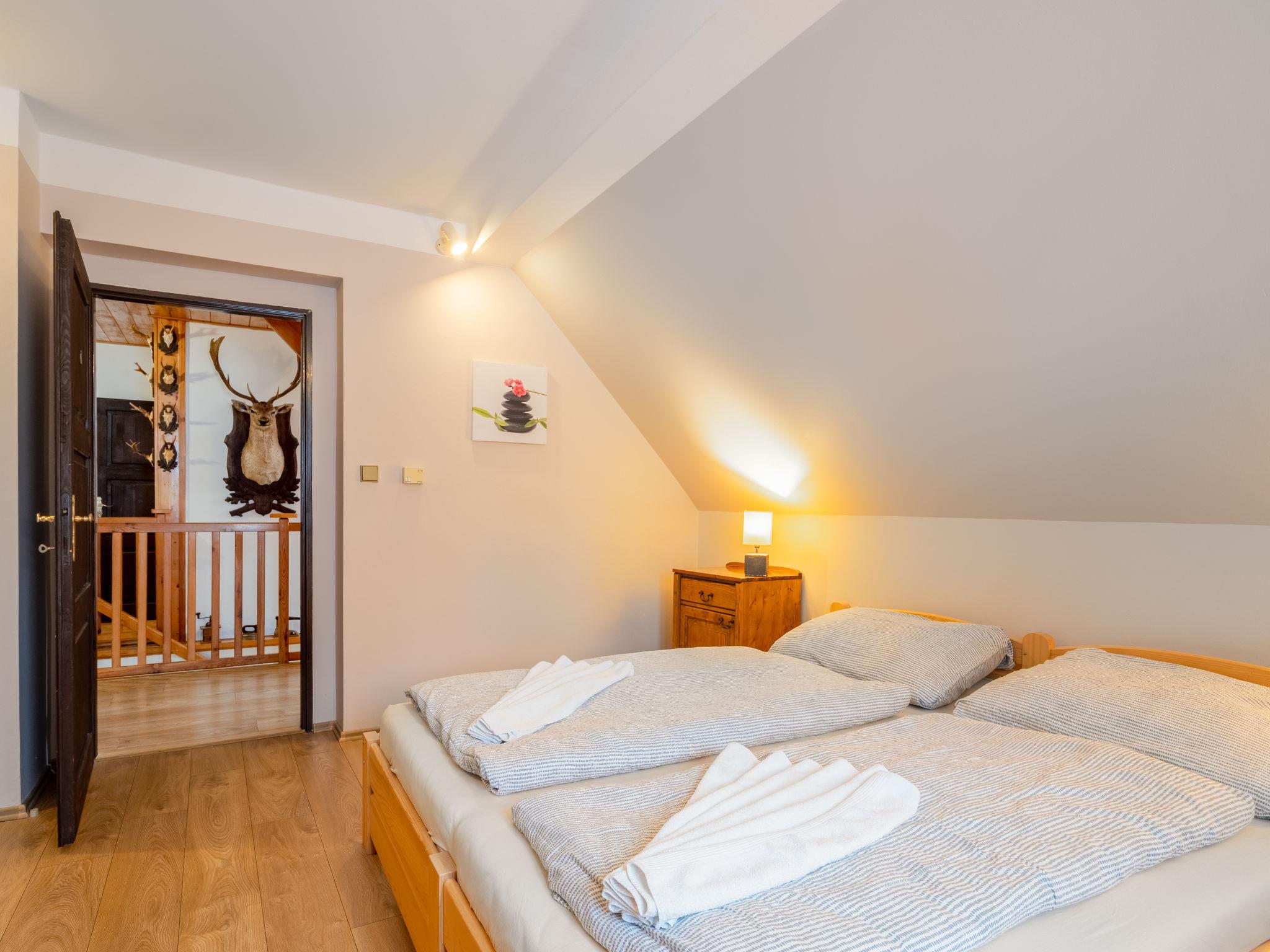 Very beautiful single-family house "Jelení kout", 2 storeys, detached, built in 1994, renovated in 2000, surrounded by trees. Outside the resort, traffic calmed area, along the wooded area, 1.5 km from the skiing area, in a cul-de-sac. Private: property 2'500 m2 (fenced), garden, indoor pool heated, with privacy (4 x 7 m, seasonal availability: 01.Jan. - 31.Dec.). Terrace, garden furniture, barbecue, fireplace, children's playground (swing, sandbox). In the house: WiFi, sauna (extra). Trampoline, washing machine. In Winter: please take snow chains. Parking (for 6 cars) on the premises. Shop 2.5 km, grocery 2.5 km, shopping centre 20 km, restaurant 2.5 km, café 3 km, bus stop "Smržovka, sánkarská dráha" 1.5 km, railway station "Smržovka stred" 2 km, outdoor swimming pool 7 km, indoor swimming pool 20 km. Golf course (18 hole) 17 km, tennis 4 km, riding stable 2 km, cycle lane 100 m, ski lift 2 km, slopes 2 km, ski rental 2 km, ski school 2 km, sled run 300 m, cross country ski track, children's playground 3 km. Nearby attractions: Rozhledna Cerná Studnice 2 km, Muzeum obrnené techniky Smržovka 2 km, Kittelovo muzeum v Krásné 5 km, Vodopády v Jedlové 17 km, Zoo Liberec, Aquapark Babylon 20 km, Bozkovské jeskyne 24 km. Well-known ski regions can easily be reached: Filip Smržovka 2 km, Tanvaldský Špicák 8 km, Ski areál Severák, Bedrichov, Harrachov. Hiking paths: Hrebenovka. Please note: baby equipment. Sauna and pool heating to be paid on the spot (according to electricity use).