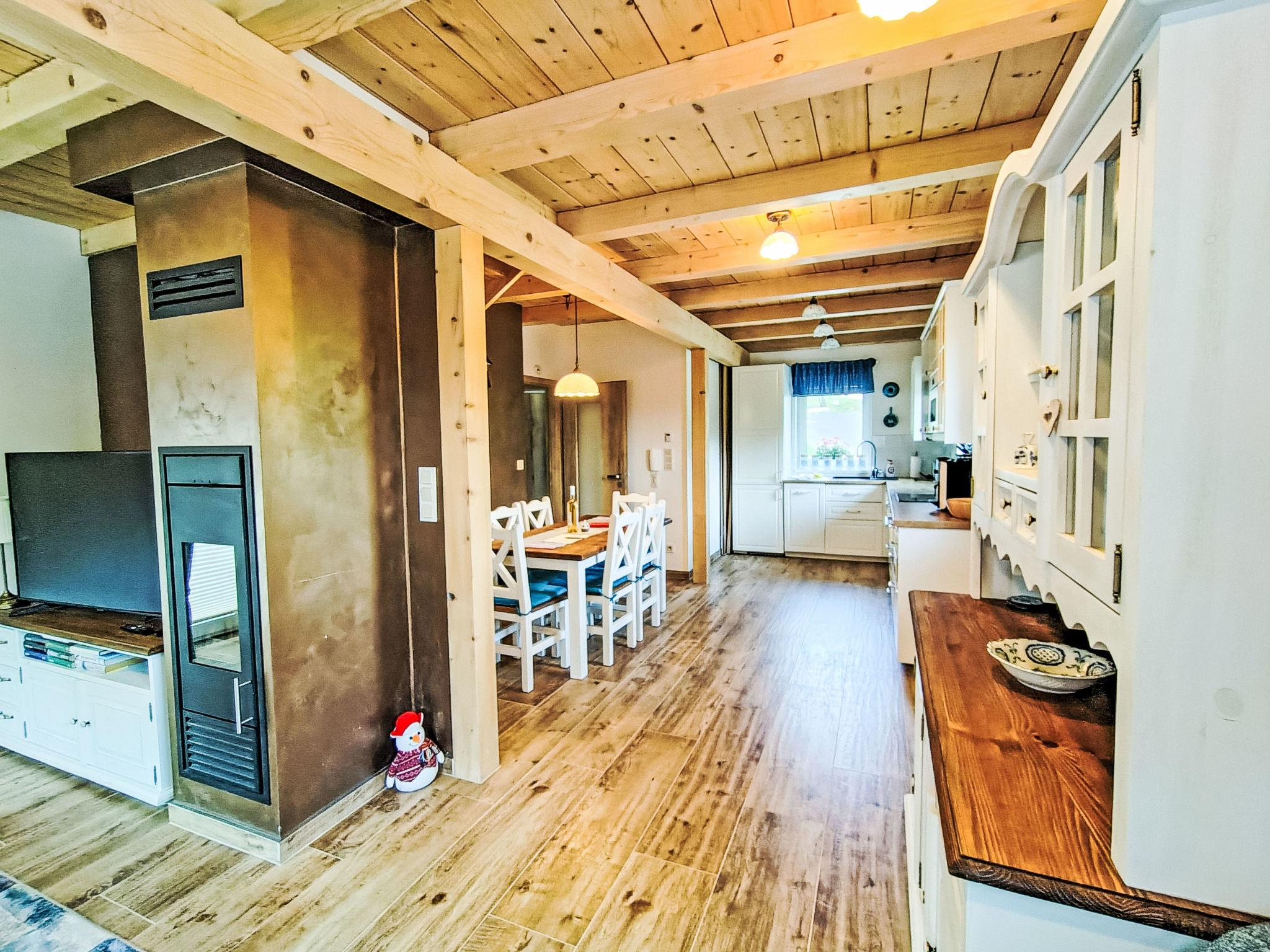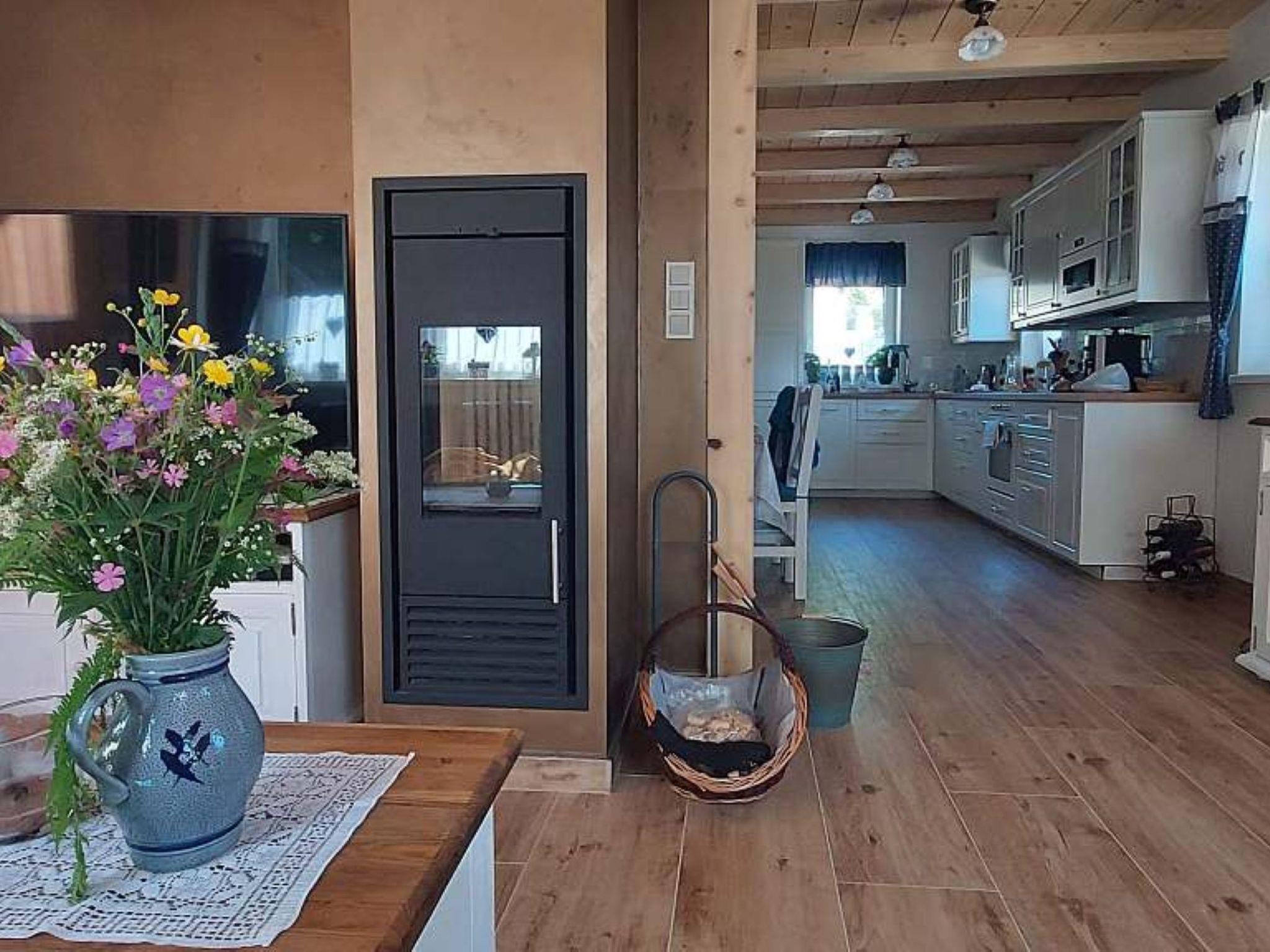 3-room cottage. Large living room with Scandinavian wood stove and dining table. Exit to the terrace. Kitchenette (dishwasher, 4 induction hot plates, toaster, kettle, microwave, freezer, electric coffee machine, Capsules for coffee machine (Krups)). Shower/WC. Upper floor: 1 room with 1 bed and 1 double bed (160 cm). 1 room with 1 double bed (160 cm), 1 pull-out bed (2 pers.). Sep. WC. Electric heating, wood heating, floor heating. Terrace. Terrace furniture. Facilities: washing machine. Internet (WiFi, free). Please note: suitable for families. Non-smoking house.