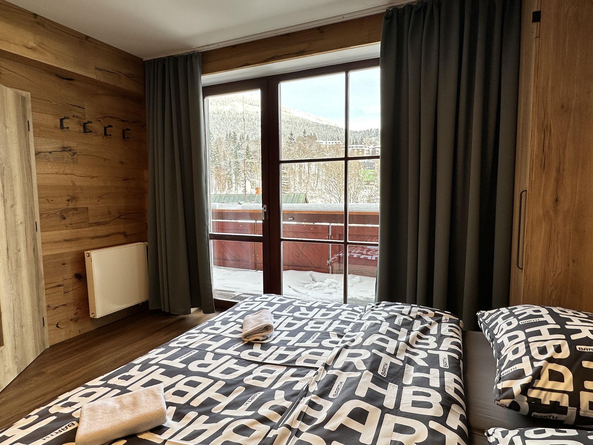 Modern apartment block, 5 storeys. In the centre of Špindleruv Mlýn, 1 km from the skiing area. In the house: storage room for bicycles, storage room for skis, central heating system. Parking at the house, communal covered parking. Shop 700 m, restaurant 50 m, bar 100 m, bus stop "Špindleruv mlýn, Bedrichov" 650 m. Walking paths from the house, cycle lane 100 m, ski lift 1 km, chair lift 1 km, slopes 1 km, ski rental 1 km. Nearby attractions: Adventure park 500 m, Bobová dráha 1 km, Aquapark Špindleruv Mlýn, 1 km, Mohyla Hance a Vrbaty, Zlaté návrší 6 m, Labská bouda 8 km, Pancavský vodopád 7 km, Pramen Labe 9 km. Well-known ski regions can easily be reached: Medvedín 1 km, Hromovka 2 km, Herlákovice, Vrchlabí, Vítkovice, Horní Mísecky, Rokytnice nad Jizerou. Well-known lakes can easily be reached: Labská prehrada 1.5 km.